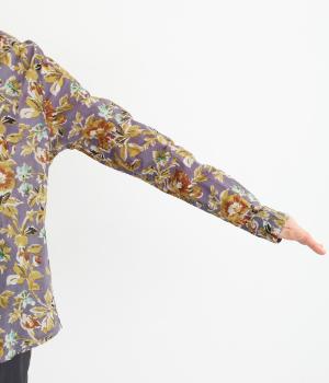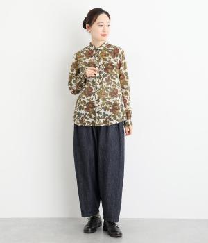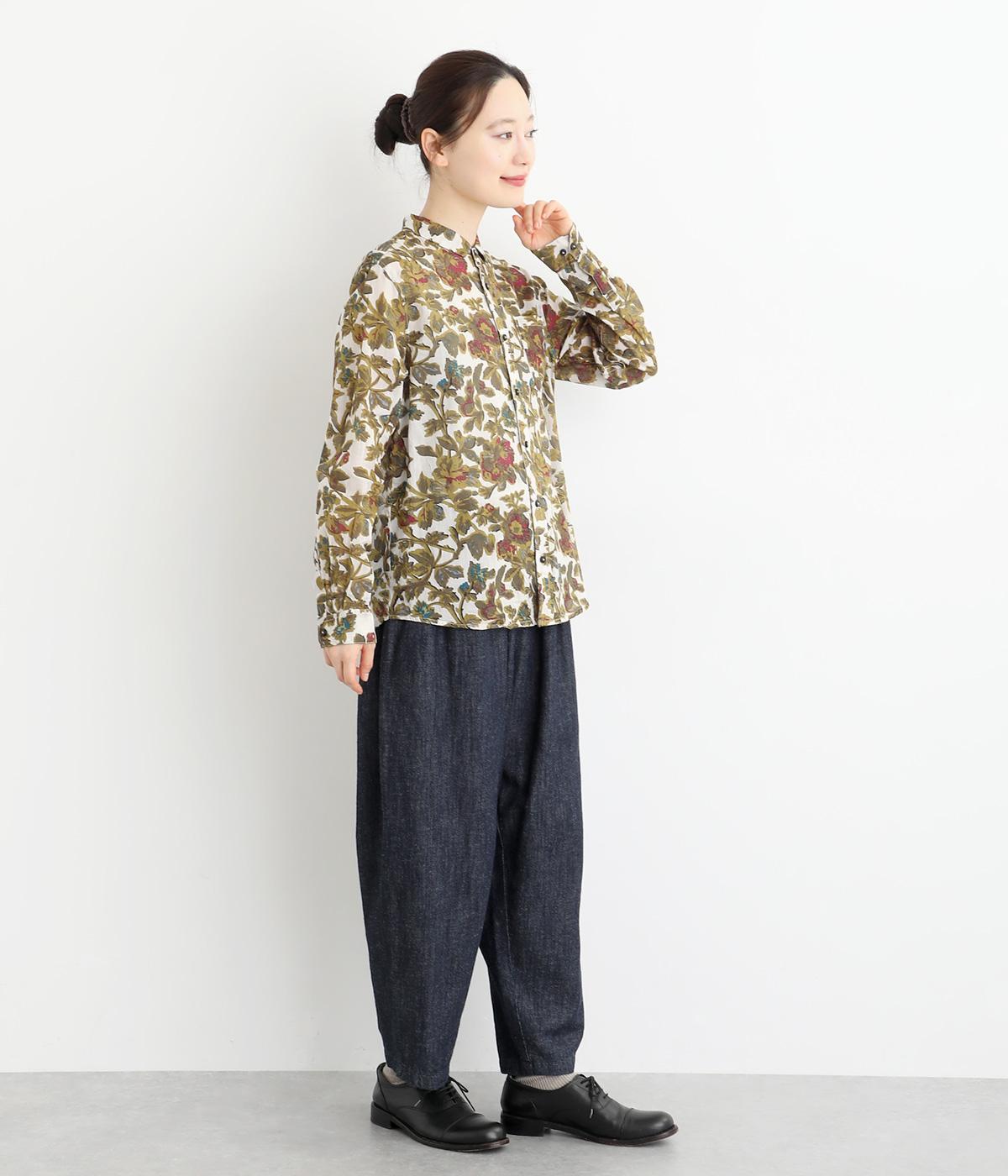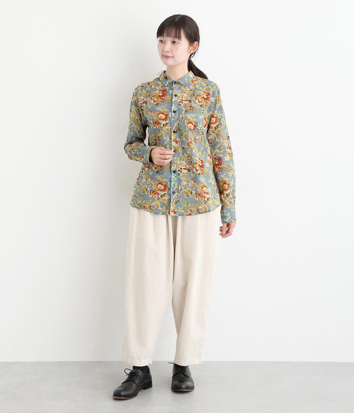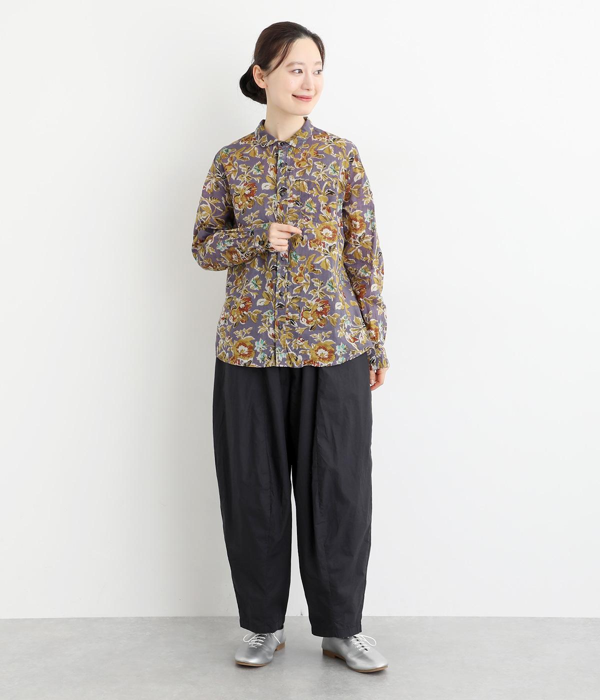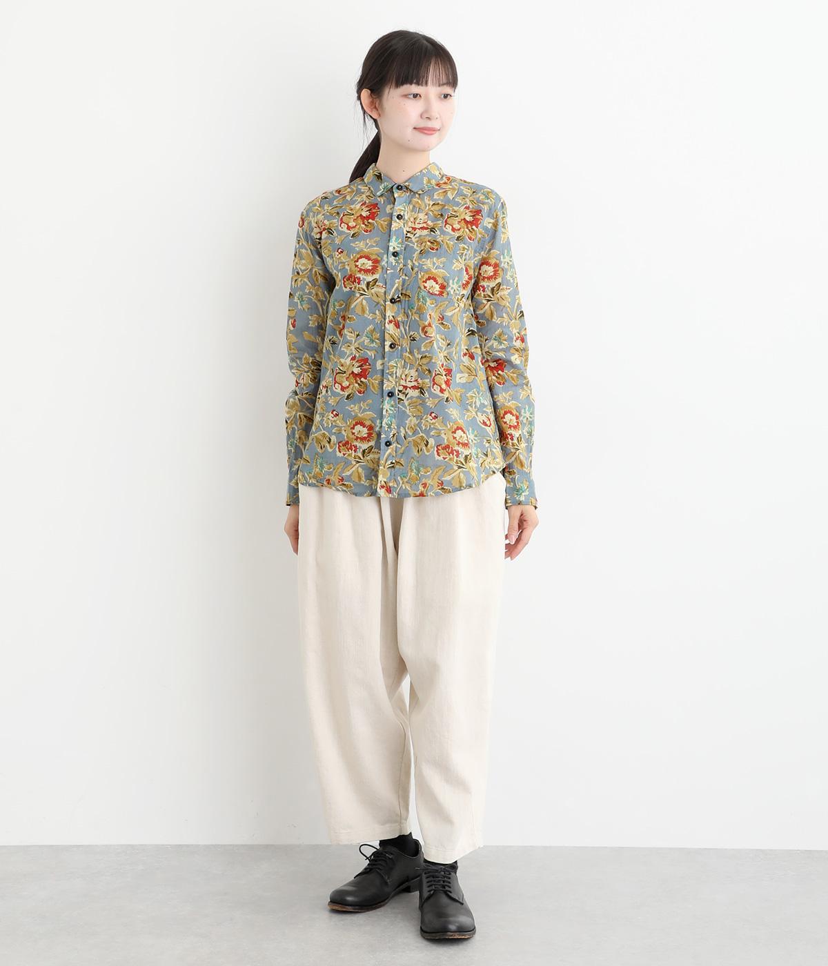 定番のレギュラーシャツにクラシカルな花柄をほどこしました。味わいのある柄ながらタイムレスな型でデイリーになじみます。うしろをすこし長くしたラウンドヘムがかわいらしさを添えながら体型カバーも叶えます。
