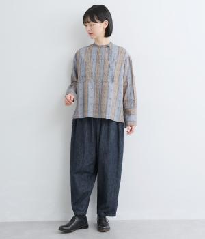 インドの職人さんの手仕事ならではの味わい深いコットンモダール生地を使用しました。ひとつひとつ異なる表情が魅力です。さらりと肌ばなれよく快適な着心地です。