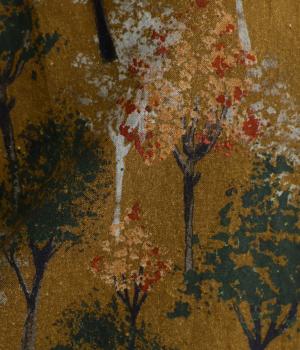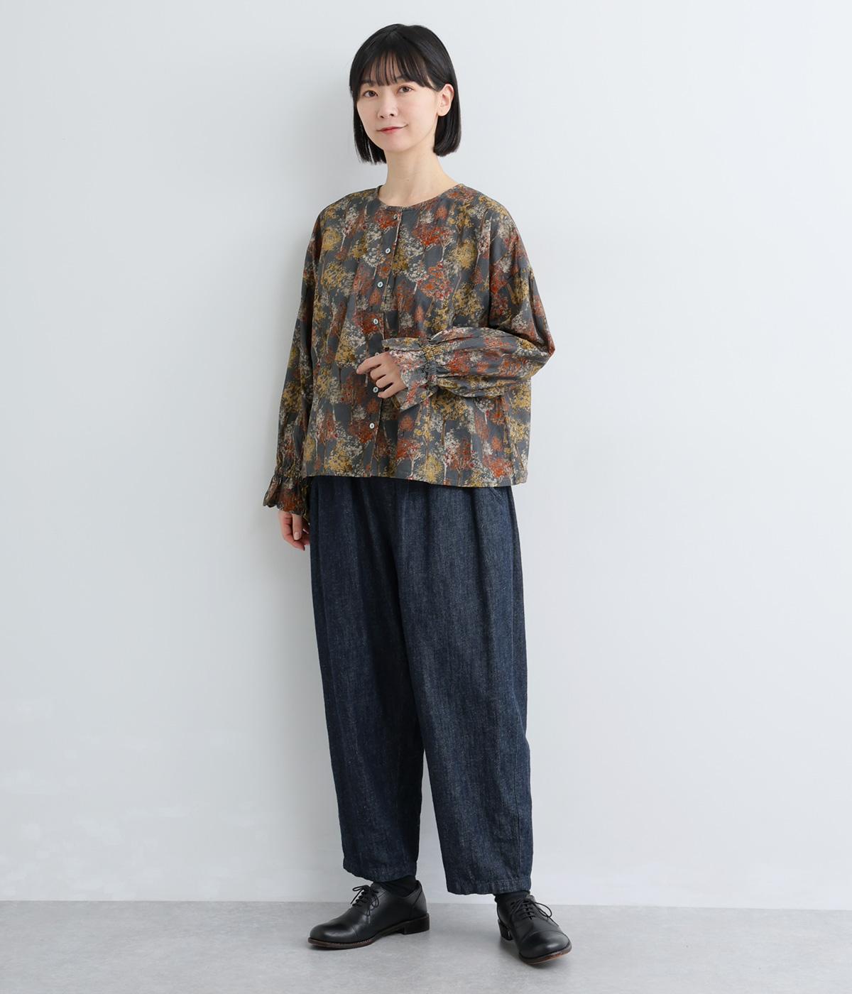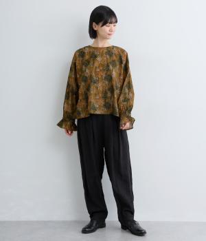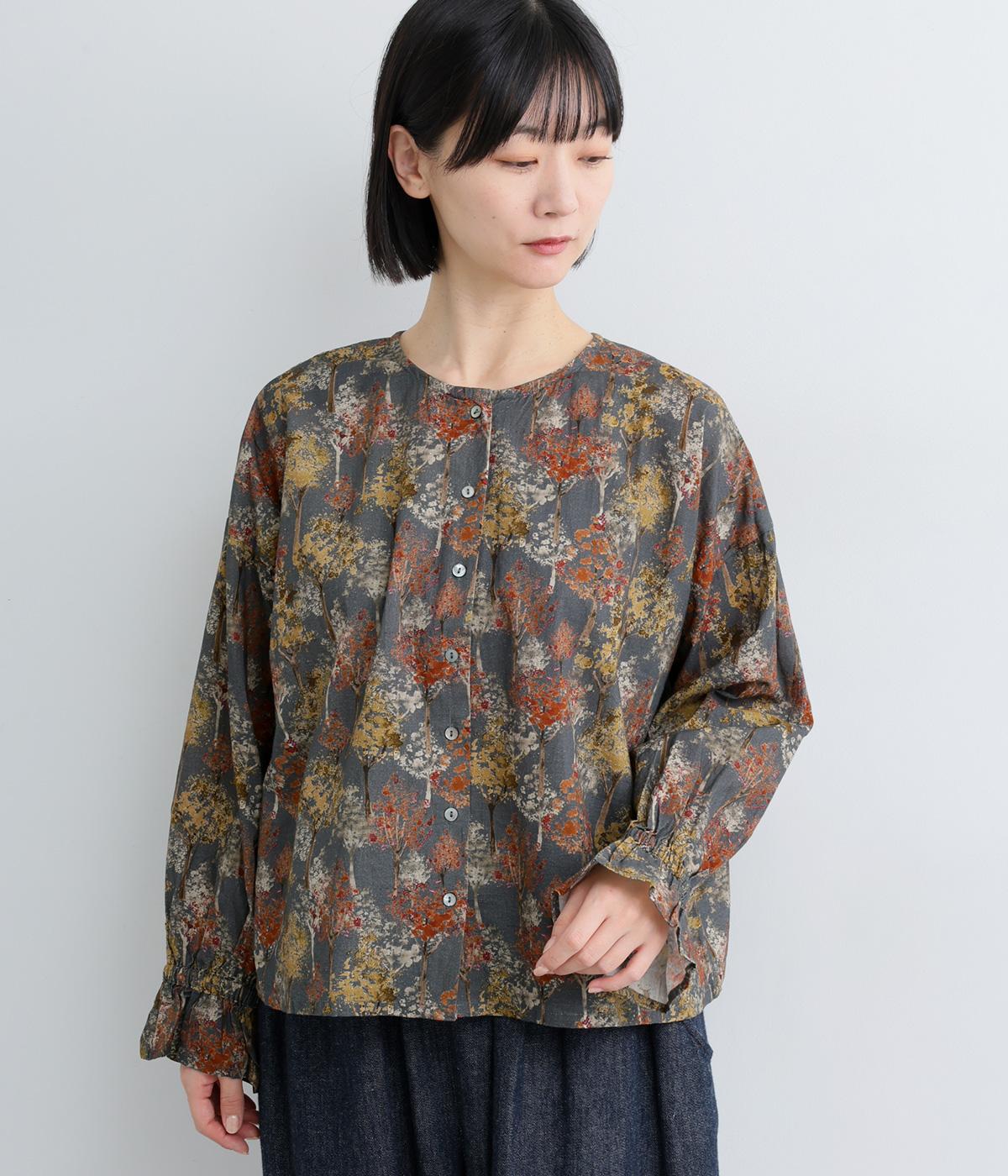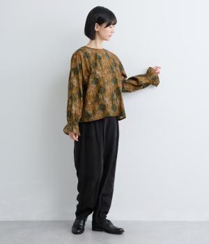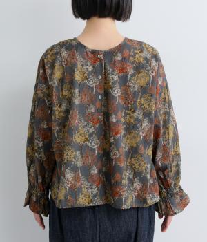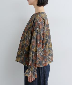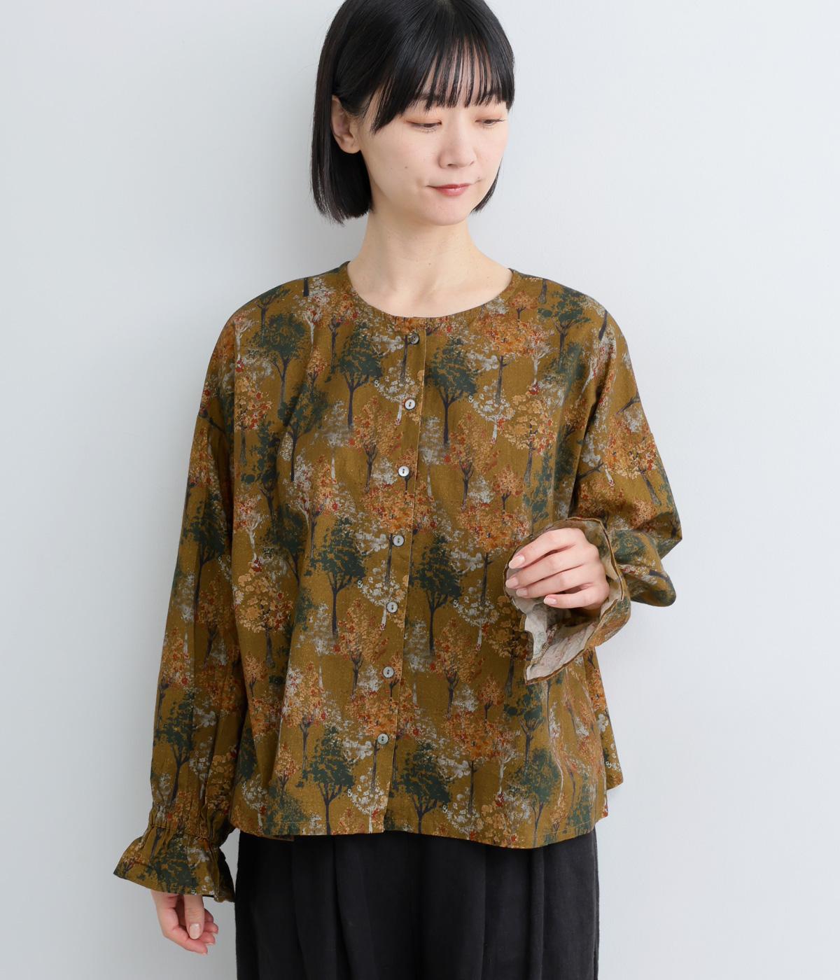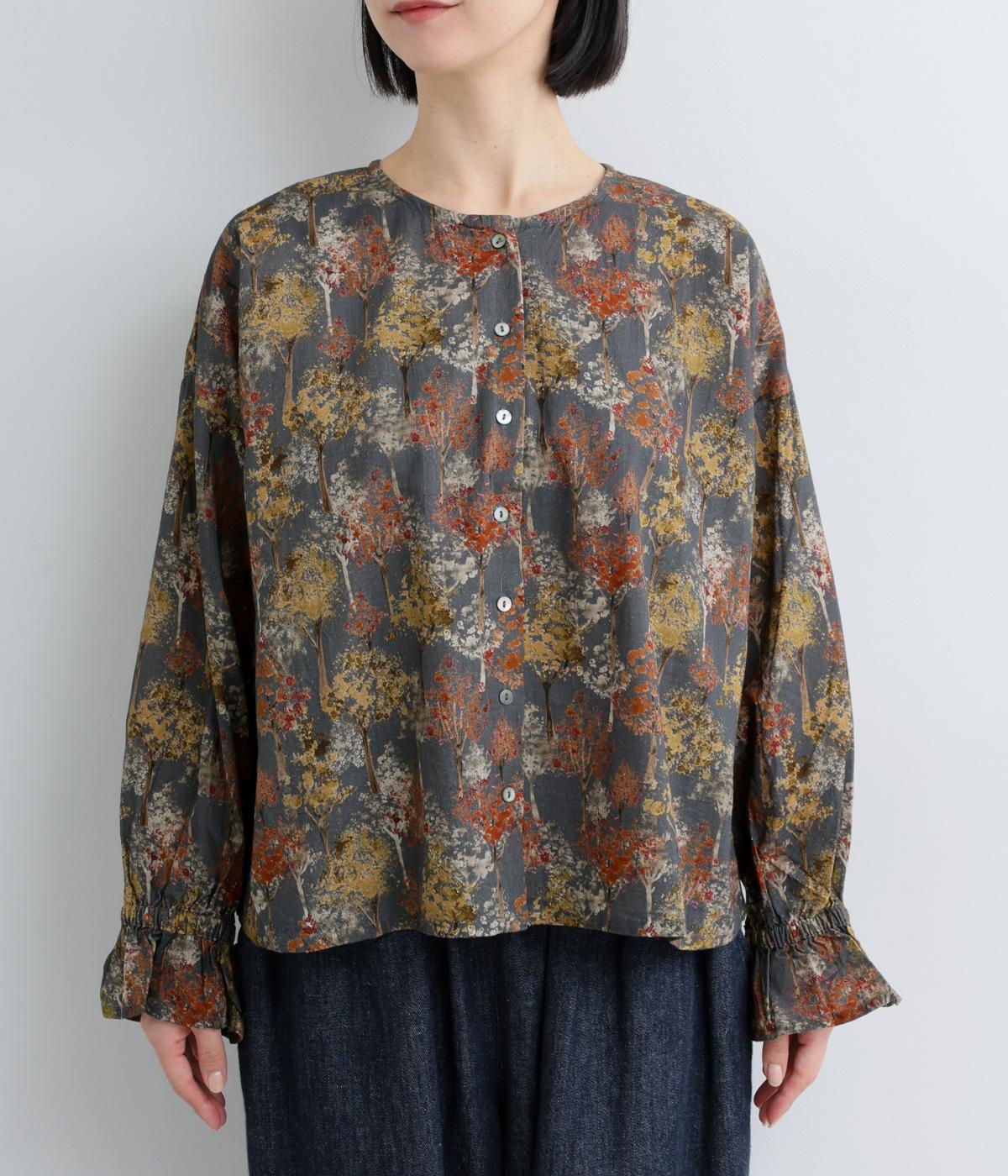 絵の具を重ねたようなタッチの木のプリントが個性的な雰囲気を醸します。袖口にゴムを配し優雅に広がるフレアシルエットが華やかさをプラス。前後でそれぞれの表情を楽しめる2way仕様で、シンプルなスタイリングにニュアンスを添えるアイテムです。