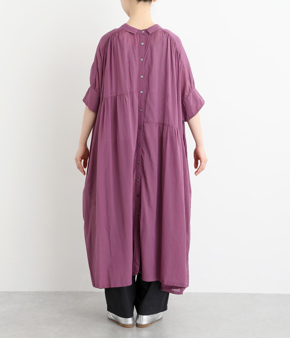 軽やかでさらりと纏えるレーヨンとコットンのミックス素材です。ほどよい透け感のある薄手の生地で、肌ばなれのよい着心地と自然な風合いが魅力です。