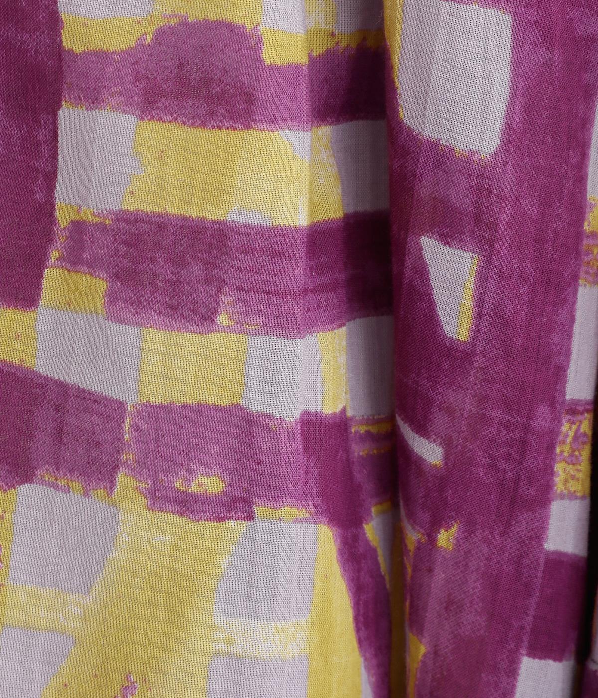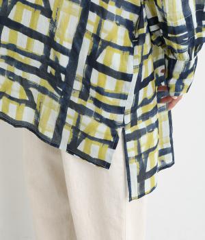 強い撚りをかけた糸を使用したライトボイル生地。透け感があり通気性がよく、軽やかな着心地です。一色ずつ手作業で染料を刷り込んだ、自然で味わいのある風合いが魅力です。