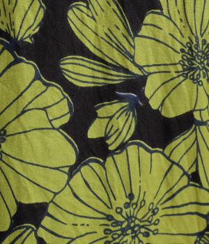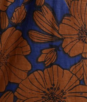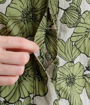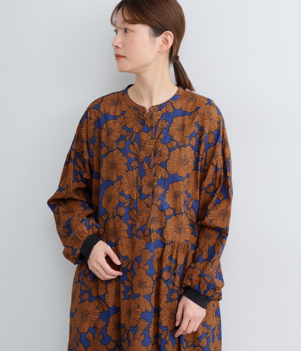 インドの職人さんが手仕事でプリントした手捺染コットンを使用しています。ひとつひとつ異なる味わいが魅力です。風合いを出すためにあまく織り上げた軽やかな着心地です。