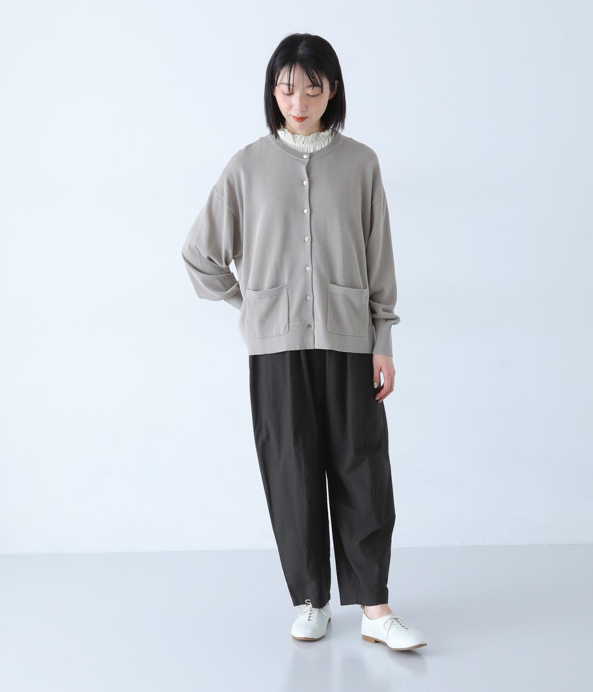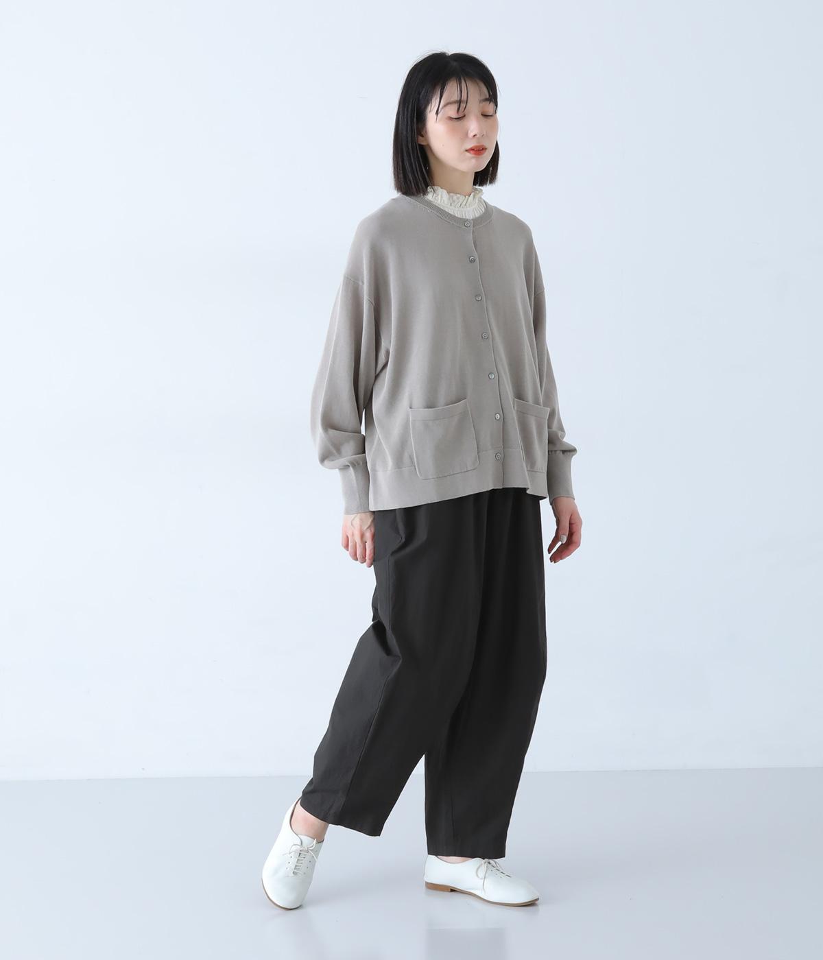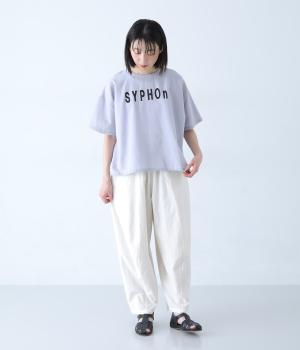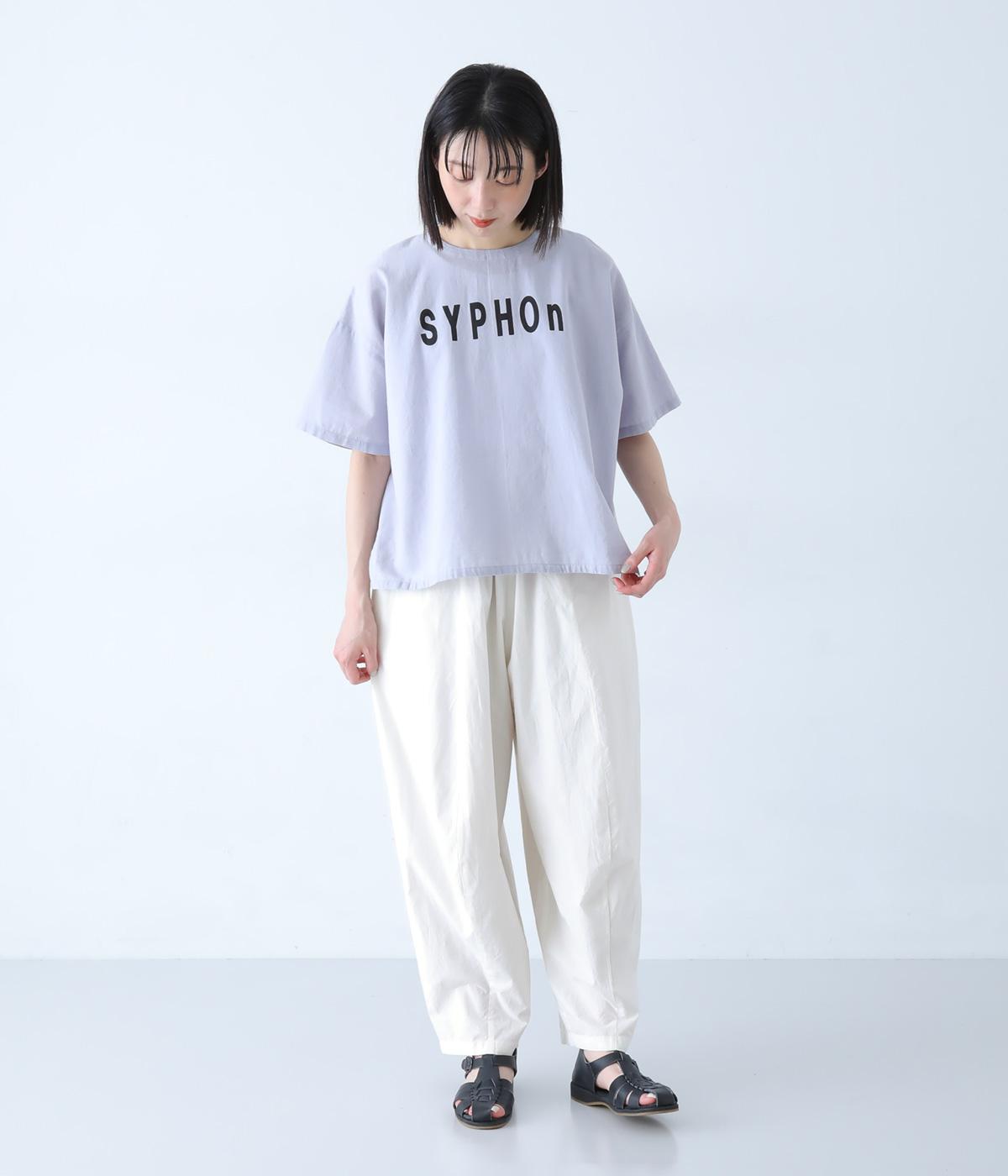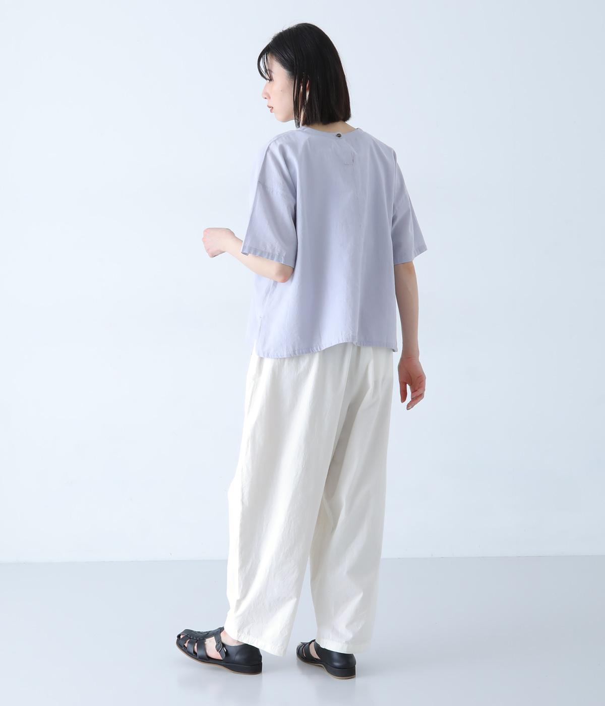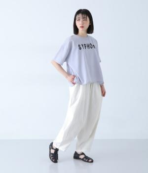 コットンリネン ロゴプリント ワイドTブラウス(グレー)