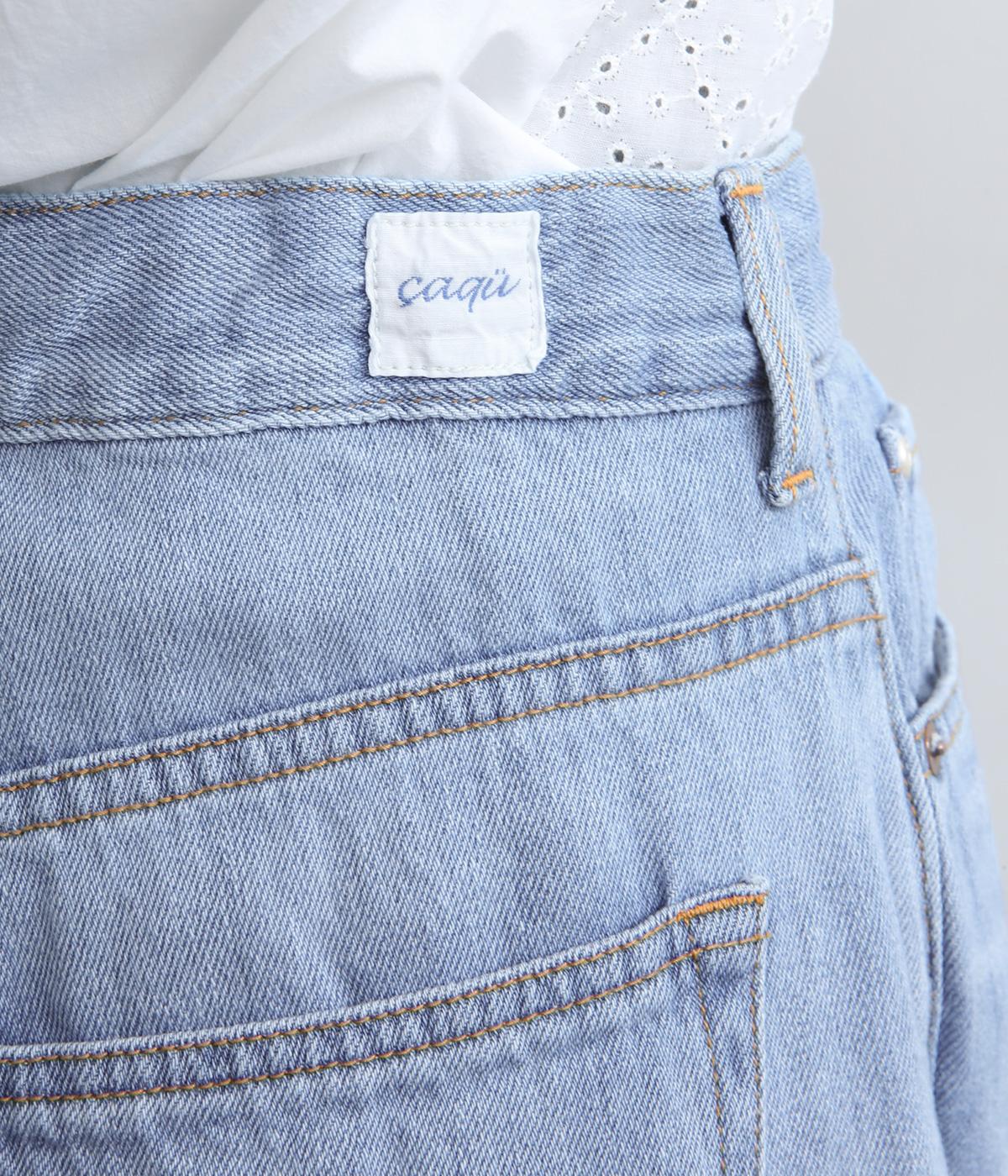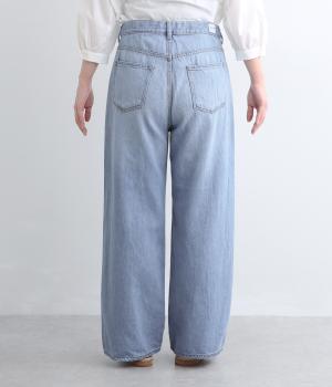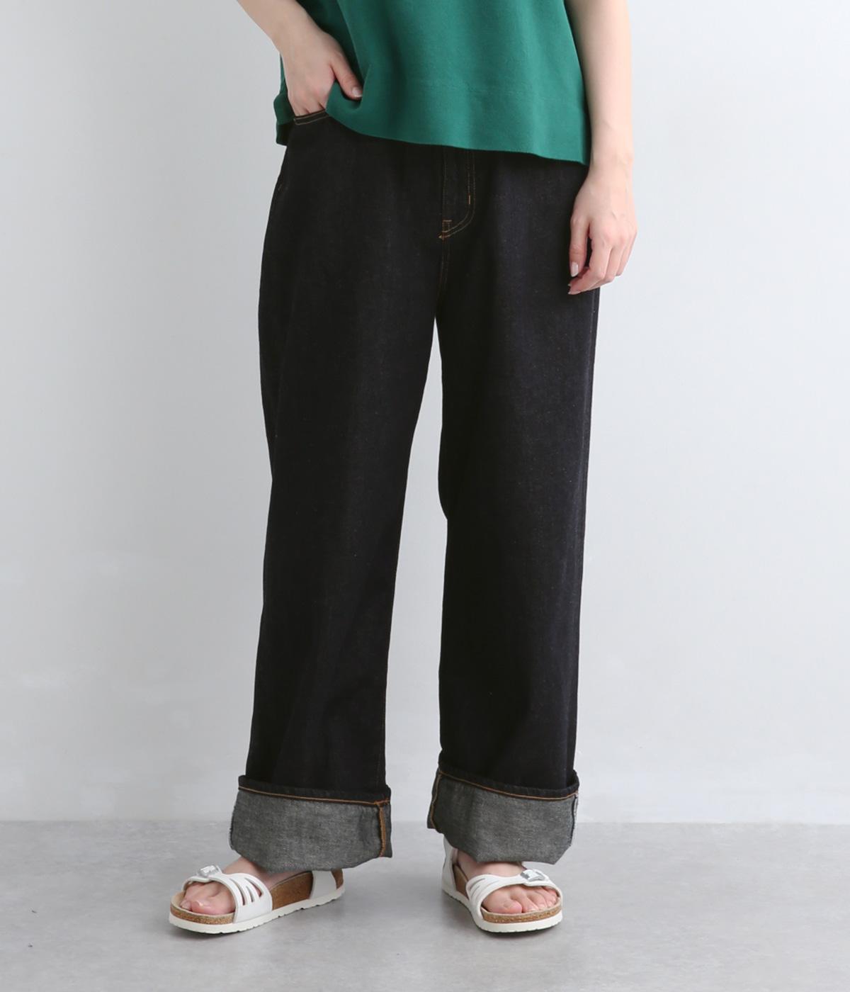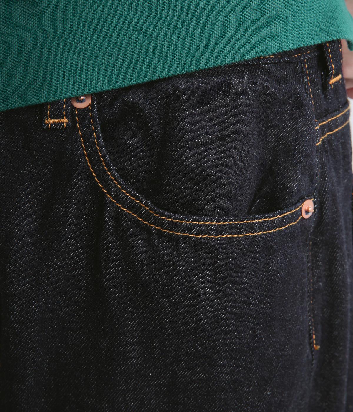 サギング(腰穿き)できる大きめウエストが特徴のワイドデニム。ウエスト内側に調節可能なボタンホールゴムを採用。ジャストサイズでも着用でき、ハイライズ特有の締めつけ感もすくなく、腰が浮かない美しいラインが叶います。