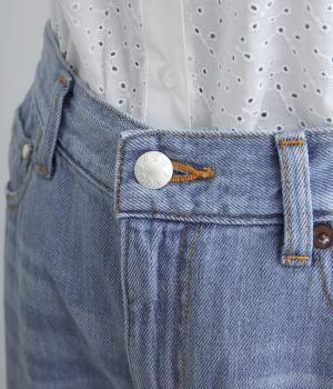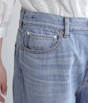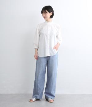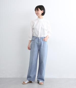やや軽めのデニムは、コットンをメインに、リネンも加えることでさらりとした肌触りになっています。ライトオンスながら薄すぎないのでロングシーズン活躍。