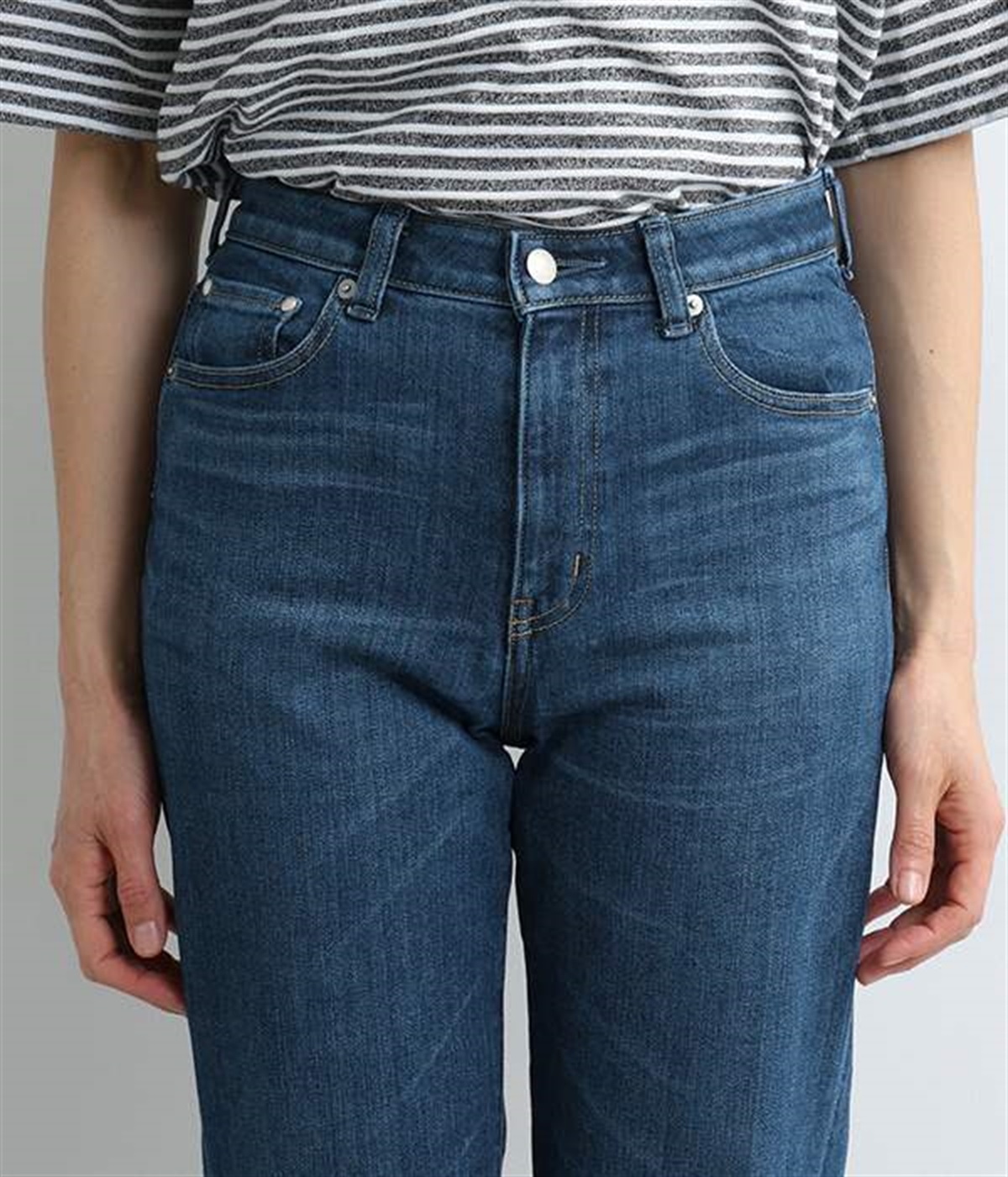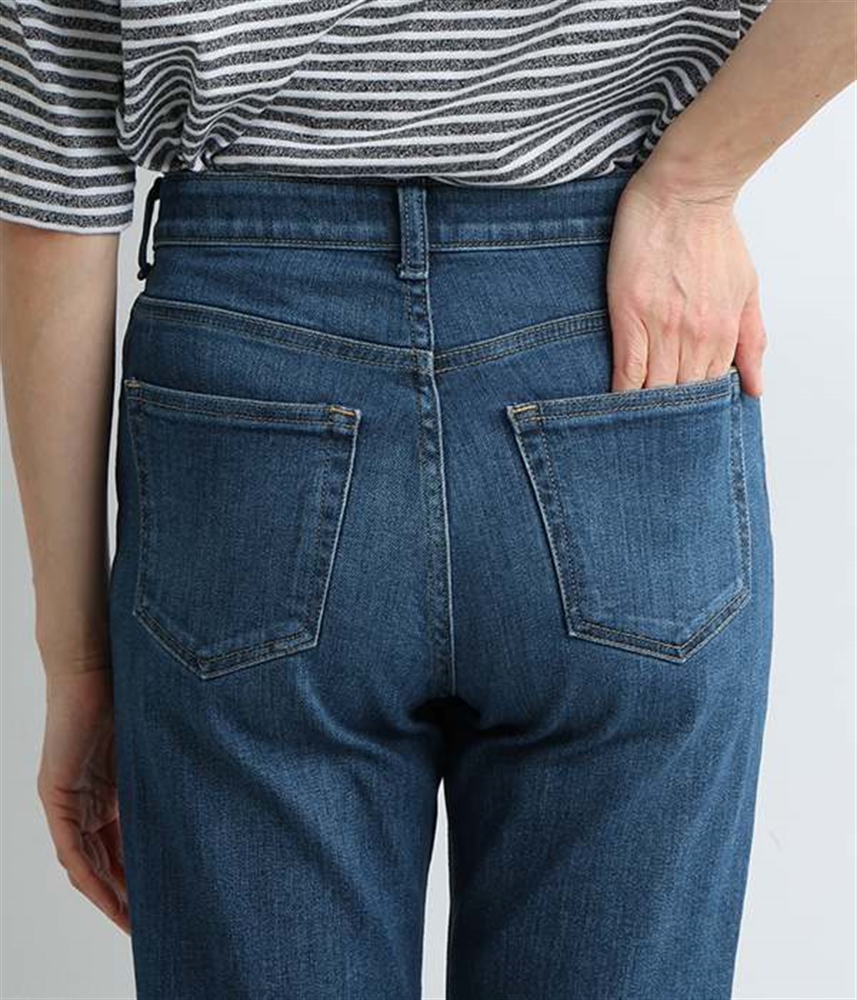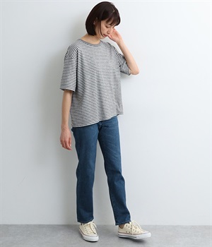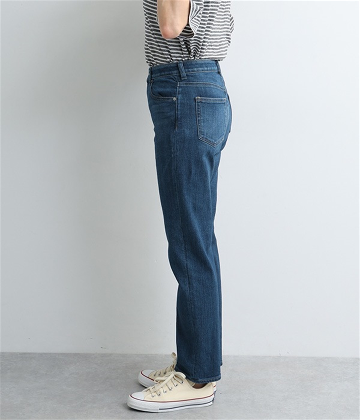 ベーシックで着まわしやすいボーイフレンドデニムパンツ。季節やトレンドに左右されにくく、さまざまなアイテムと相性の良い汎用性の高い一本です。伸縮性に優れたハイストレッチデニム生地を採用しており、ストレートシルエットのすっきりとした見た目ながらはき心地は快適。ウエスト位置がやや高く、腰まわりにホールド感があるのも特徴です。