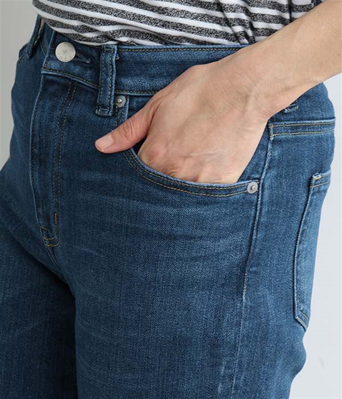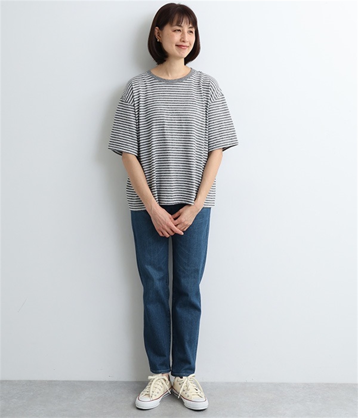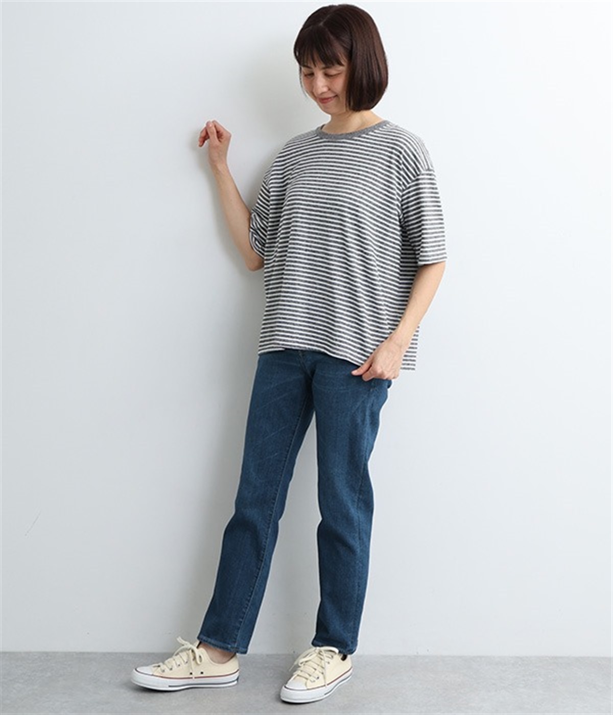 ベーシックで着まわしやすいボーイフレンドデニムパンツ。季節やトレンドに左右されにくく、さまざまなアイテムと相性の良い汎用性の高い一本です。伸縮性に優れたハイストレッチデニム生地を採用しており、ストレートシルエットのすっきりとした見た目ながらはき心地は快適。ウエスト位置がやや高く、腰まわりにホールド感があるのも特徴です。