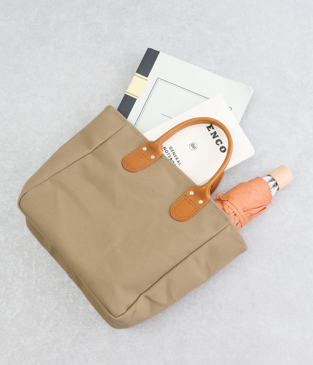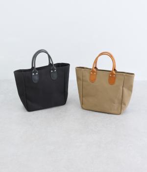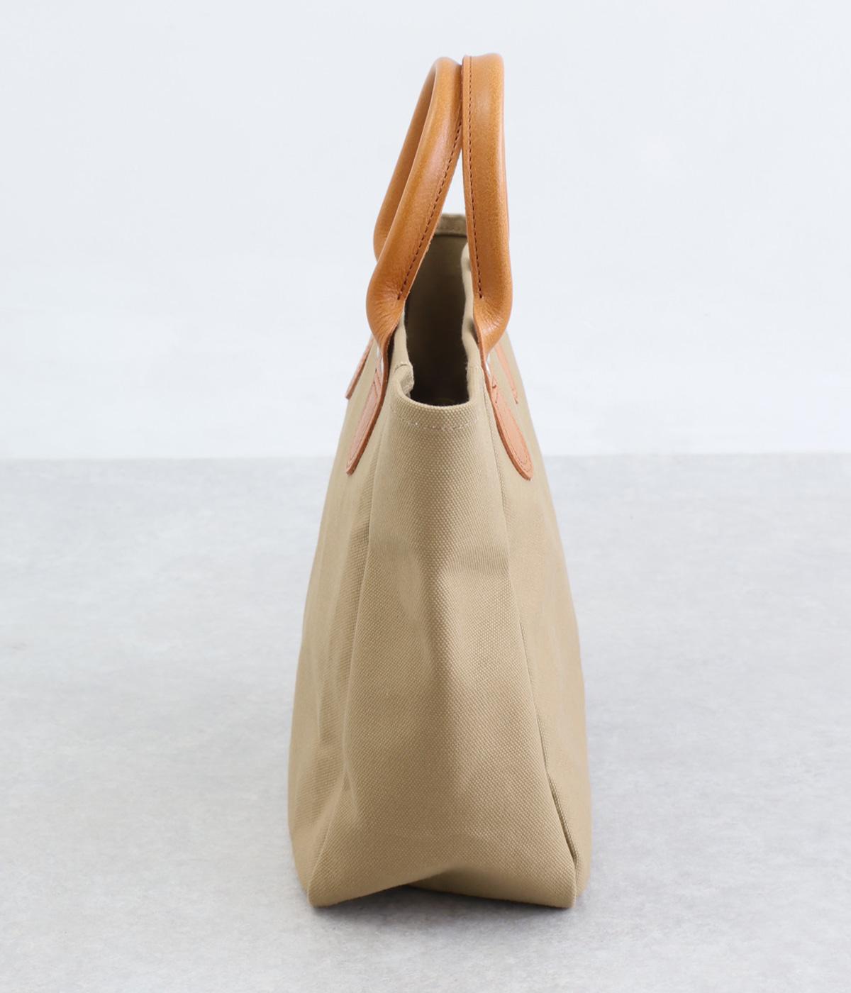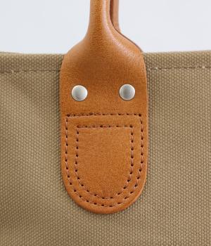 岡山県倉敷市の老舗帆布工場で、昔ながらの織機を用いて密度高く織り上げられたコットン生地です。生地の表面に加工をほどこし、撥水性とほどよいハリを持たせました。素材本来の風合いを際立たせた、使うほどに味わいが増す質感が魅力です。