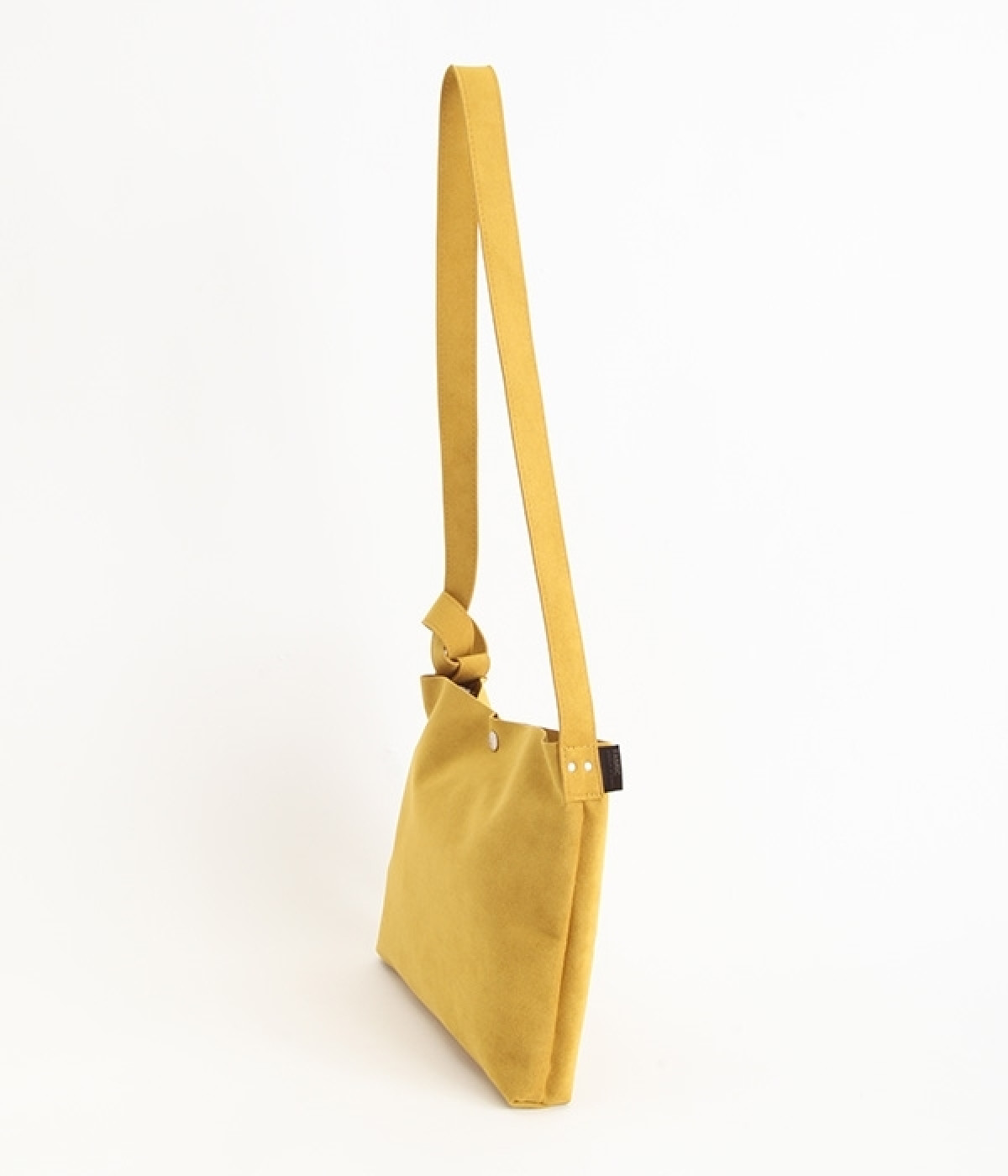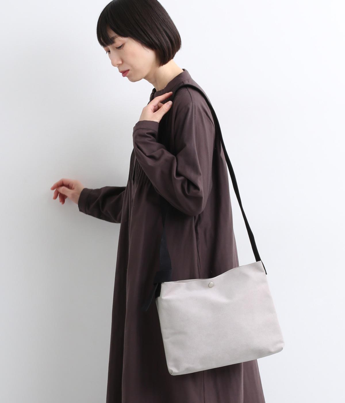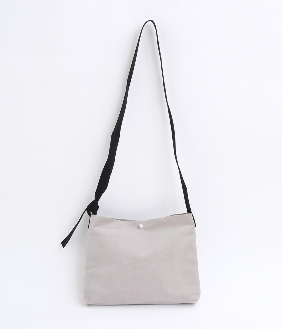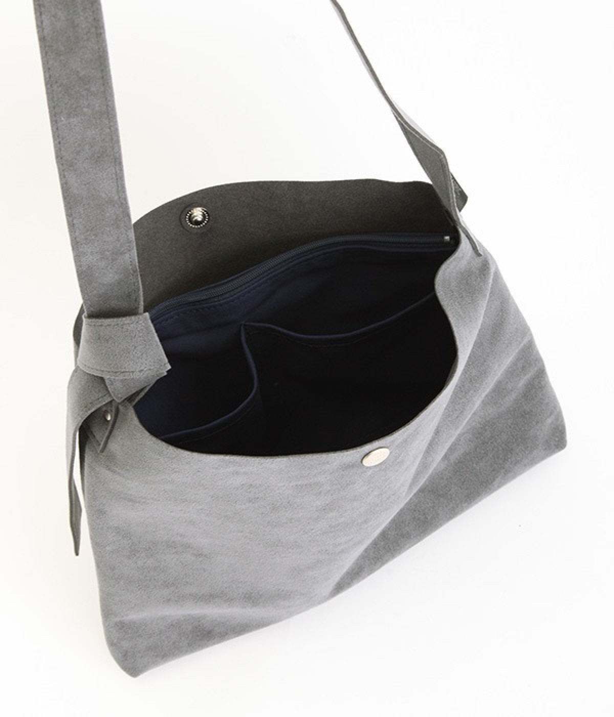 高級感のある雰囲気のフェイクスエードショルダーバッグです。おでかけにちょうどよいサイズ感で、ファスナー付きのファスナーポケットで収納力も抜群です。ショルダーの紐は結んで長さを調節できます。