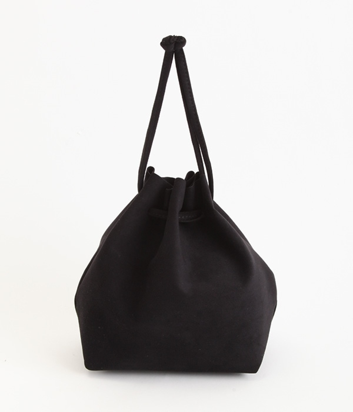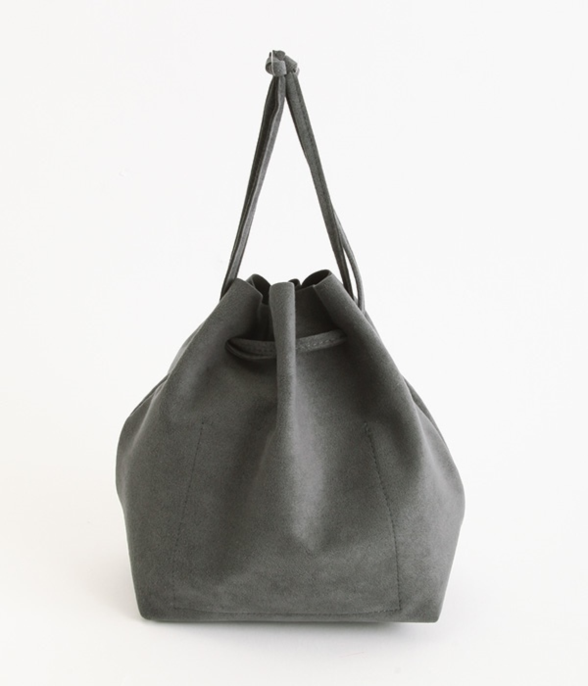 軽くて持ち運びしやすいフェイクスエード製の巾着バッグ。電車の座席シートにも採用されるほどの強度の高さが魅力で、色落ちしにくく長く愛用できます。マチをしっかりと設け、長財布や500mlのペットボトルもすっぽりと入ります。迷子になりがちな小物を分けておけるオープンポケット付き。シンプルなデザインで合わせやすく、デイリーに活躍します。