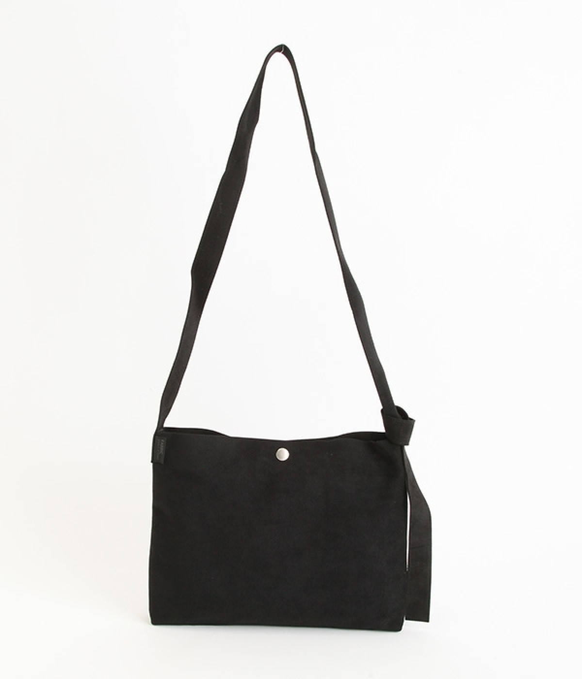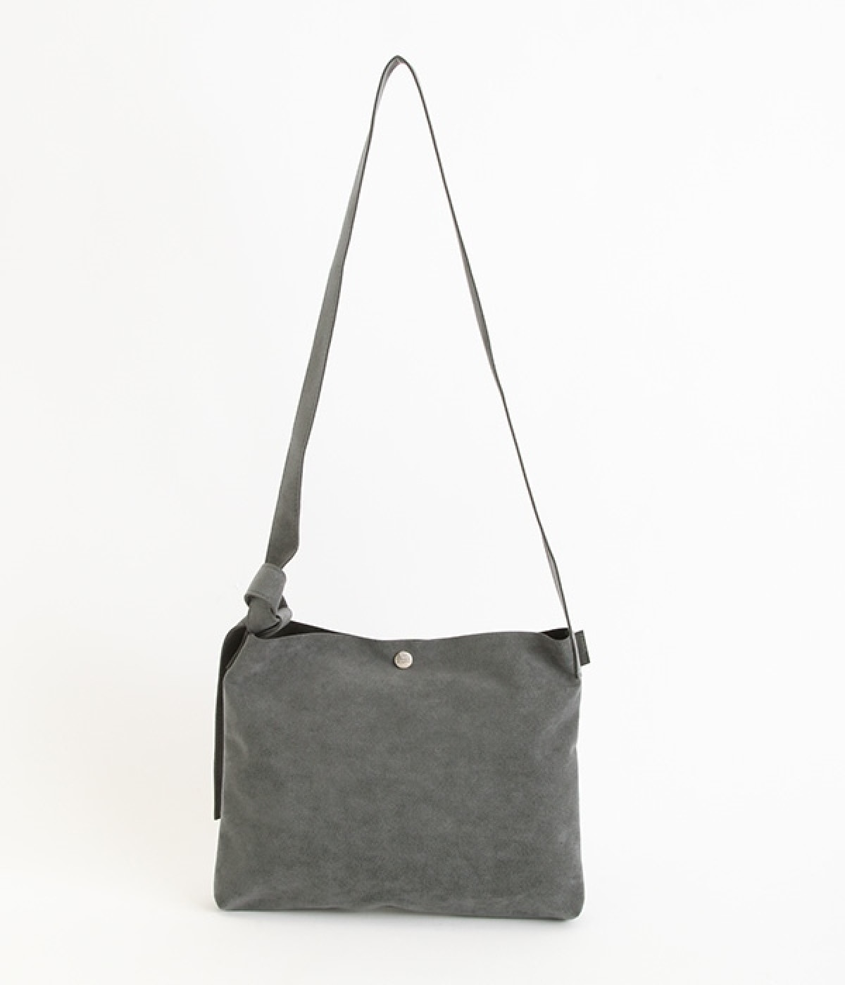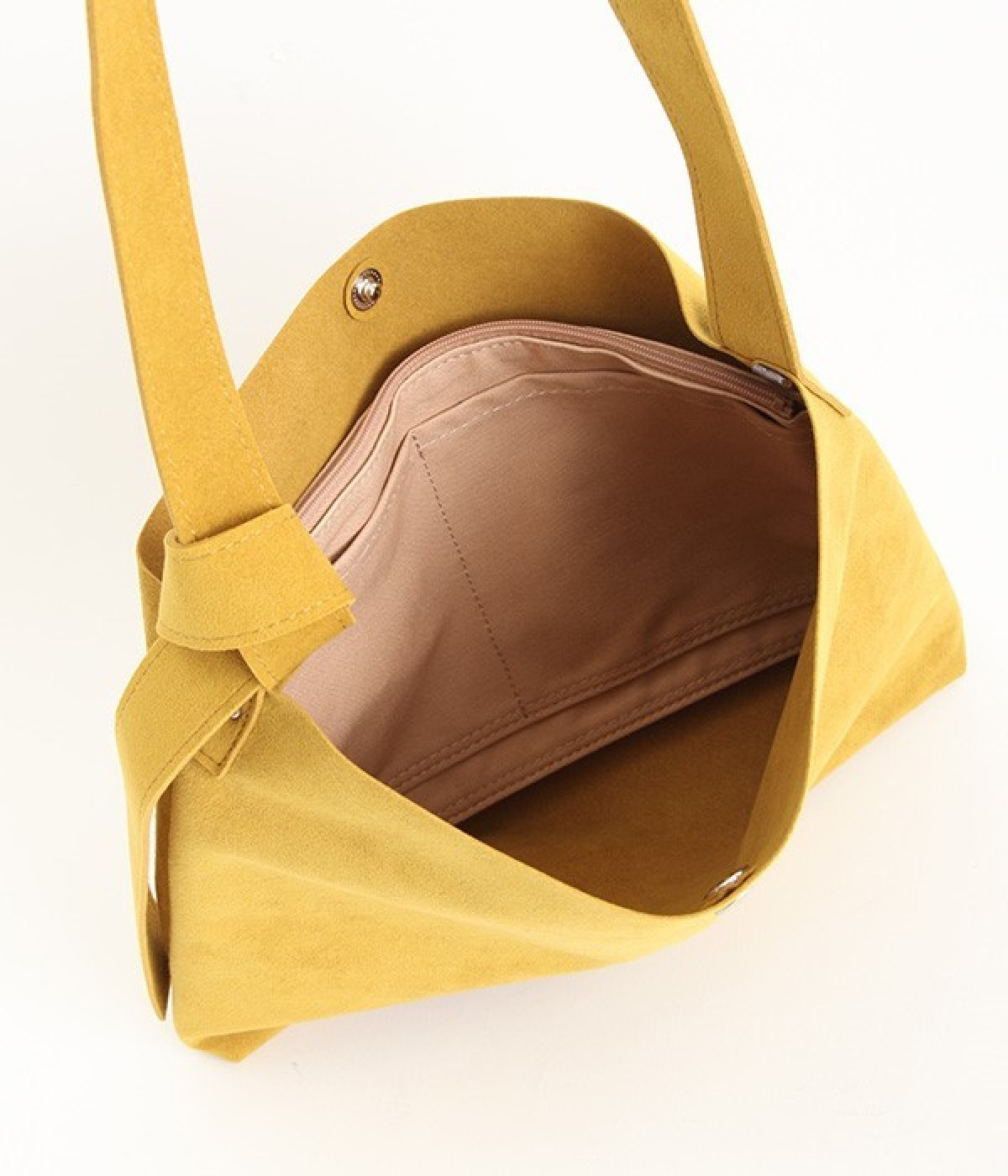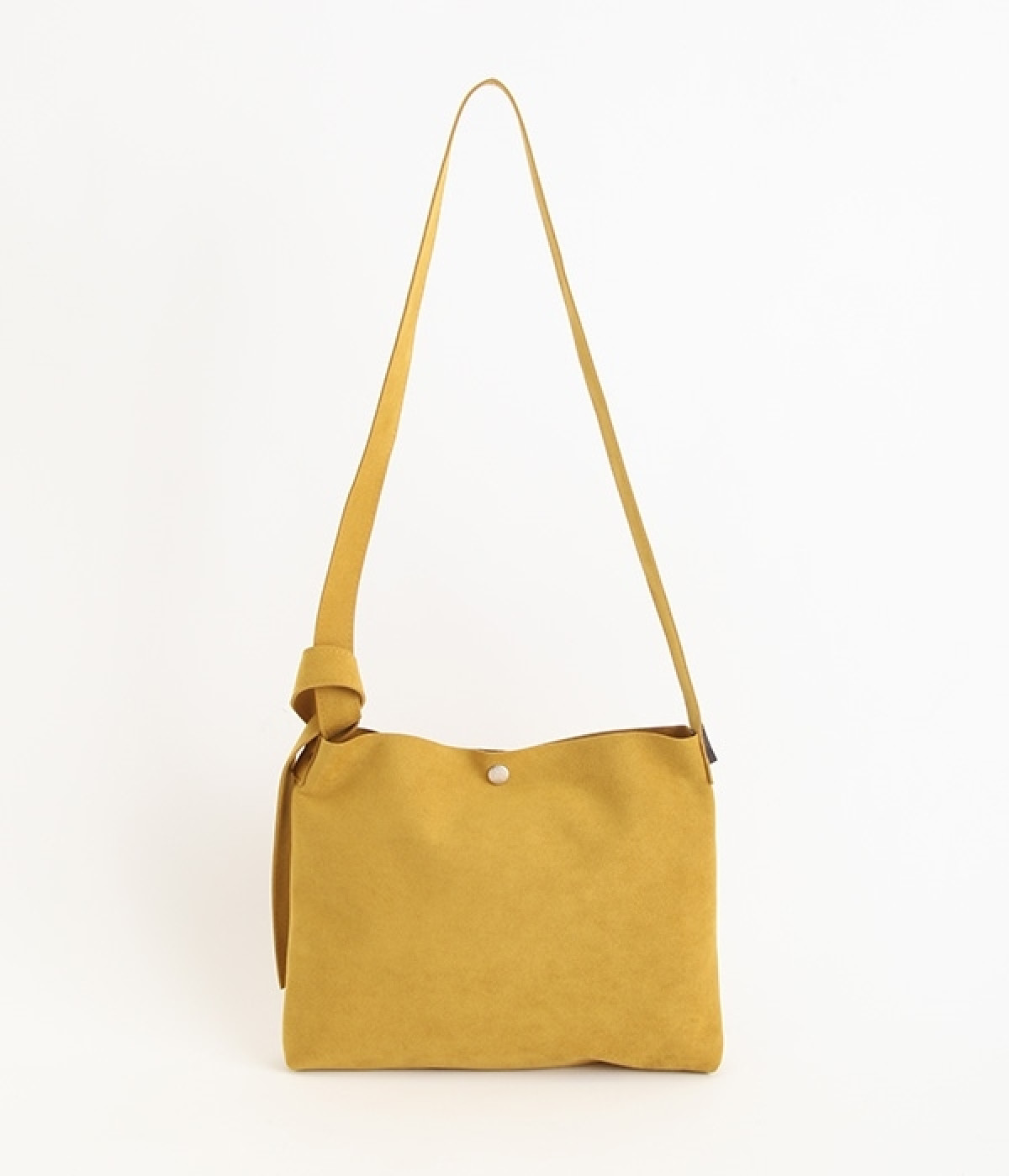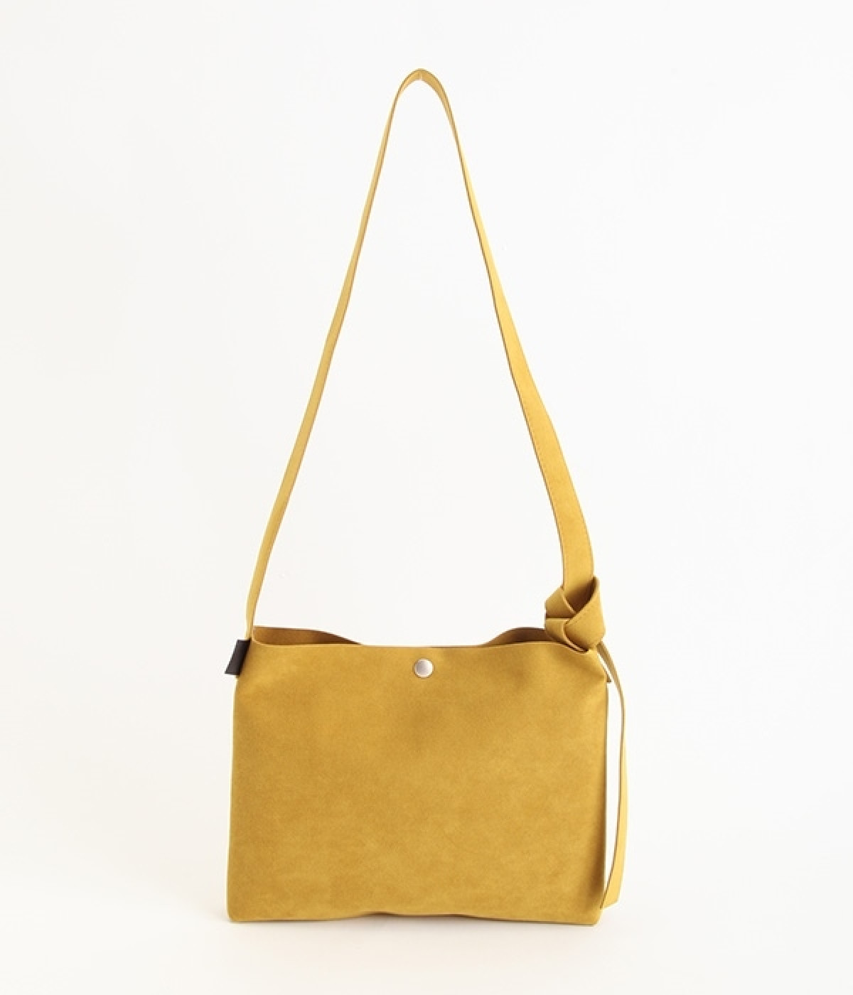 高級感のある雰囲気のフェイクスエードショルダーバッグです。おでかけにちょうどよいサイズ感で、ファスナー付きのファスナーポケットで収納力も抜群です。ショルダーの紐は結んで長さを調節できます。