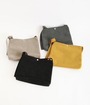 マイクロファイバーで構成されたスエード調の人口皮革を使用しました。発色よく色落ちしづらく、やわらかく滑らかな手ざわりが魅力です。天然皮革に比べて軽量でお手入れが簡単なのも嬉しいポイントです。