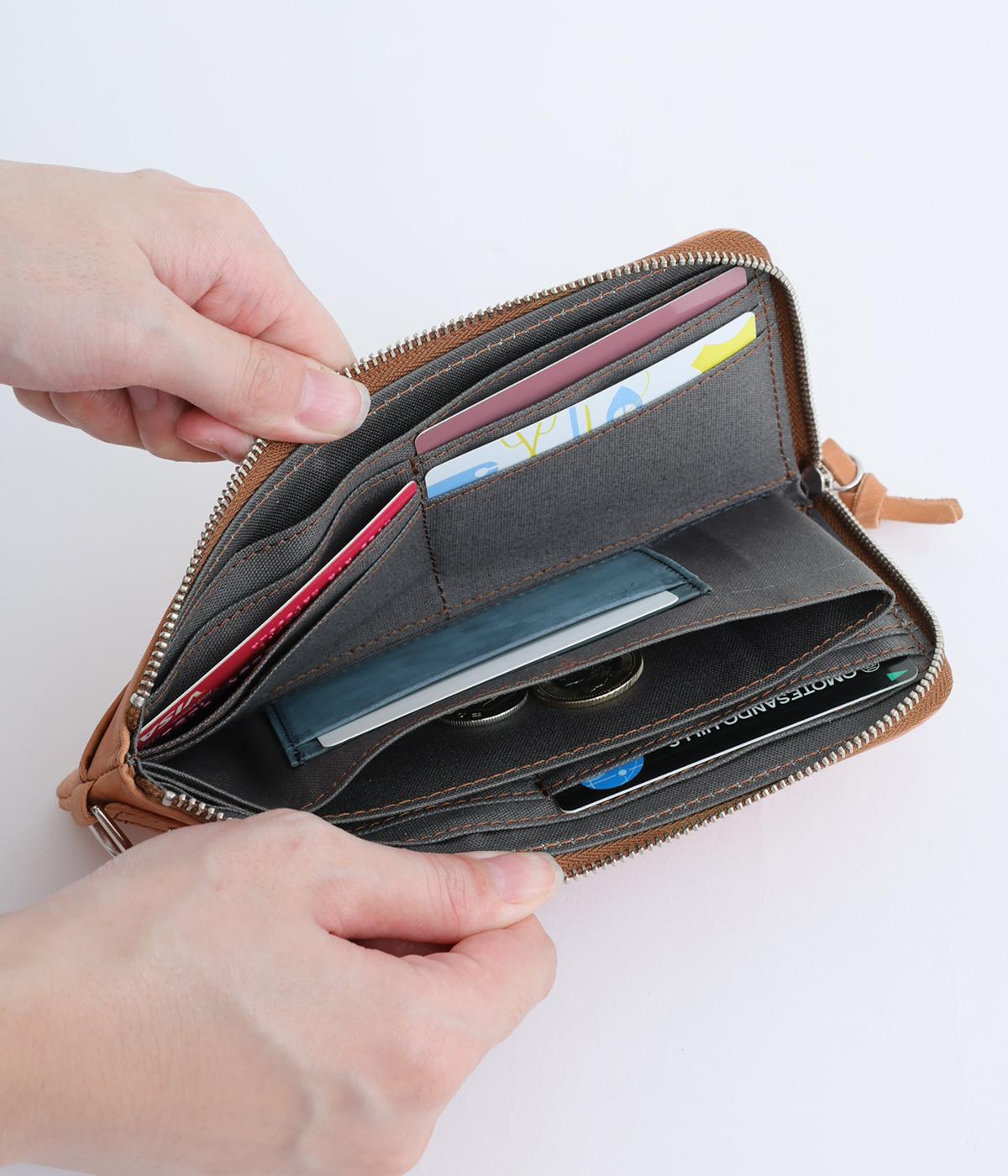 札入れやカード入れはもちろん、オープンな小銭ポケットの側面にもポケットを配した抜群の収納力。背面にもポケットをほどこし、ICカードなど使用頻度の高いカード収納にぴったりです。使うほどに愛着がわく、長く愛せるアイテムです。