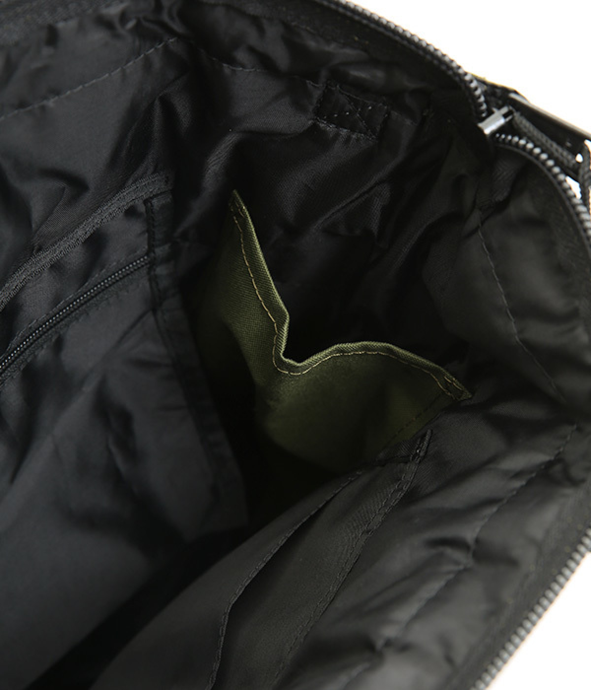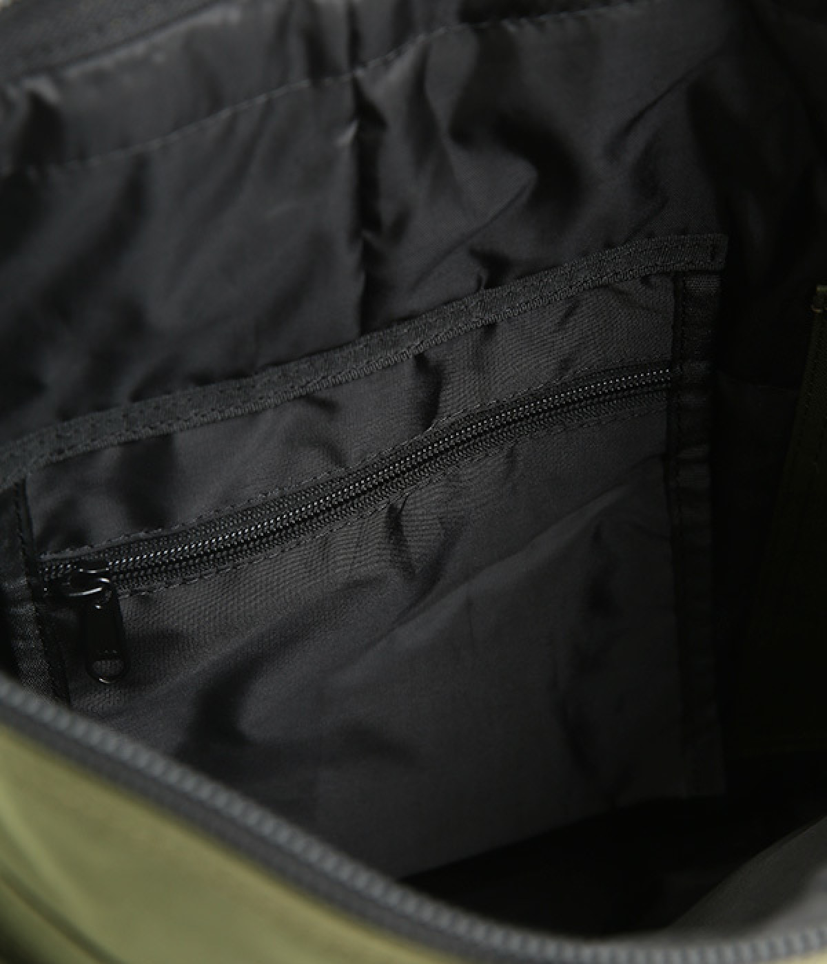 背面ファスナーポケットには長財布サイズも収納可能