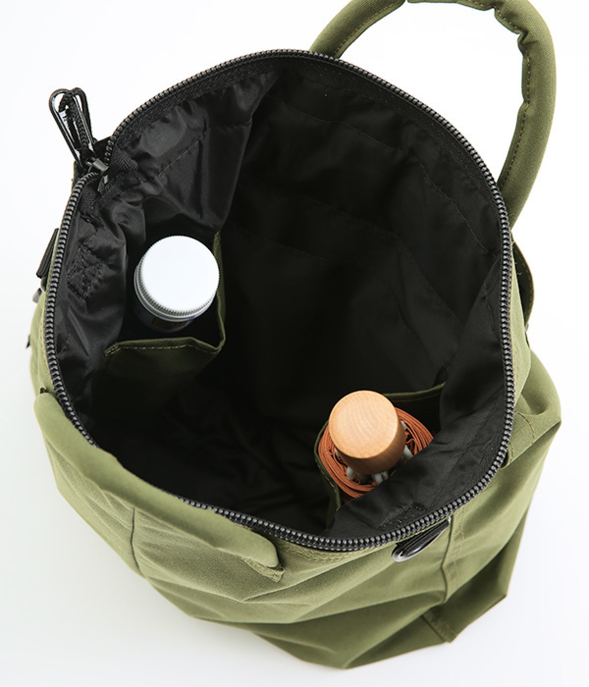 内側には折りたたみ傘やペットボトル入れに便利なポケットつき