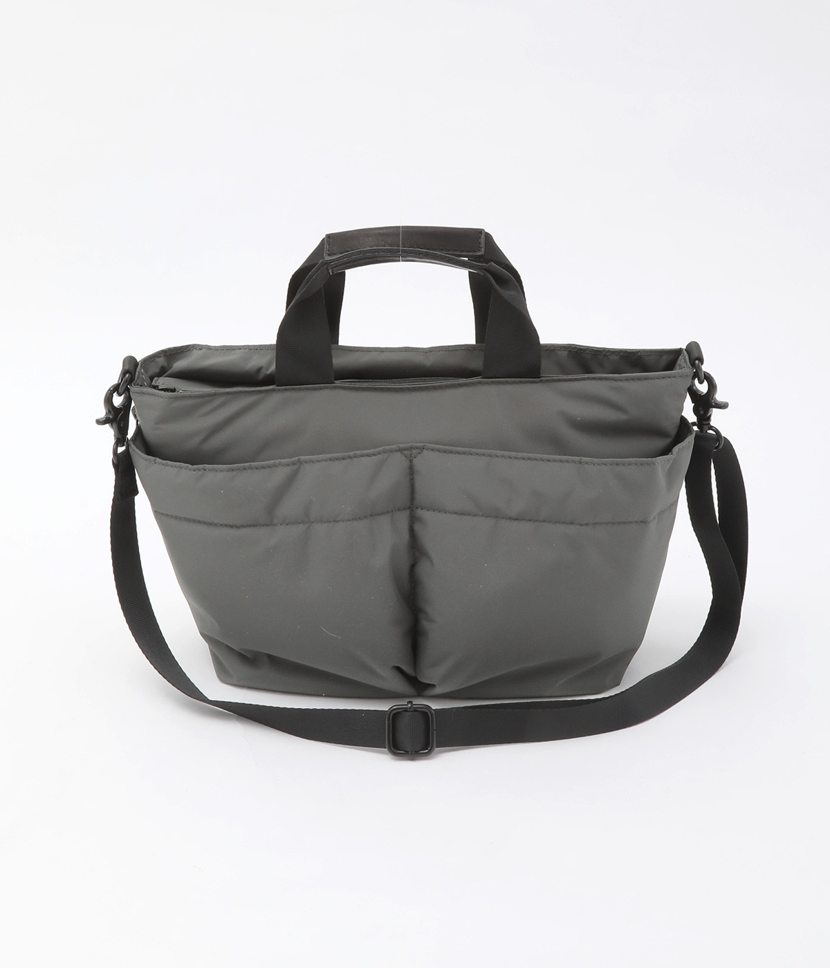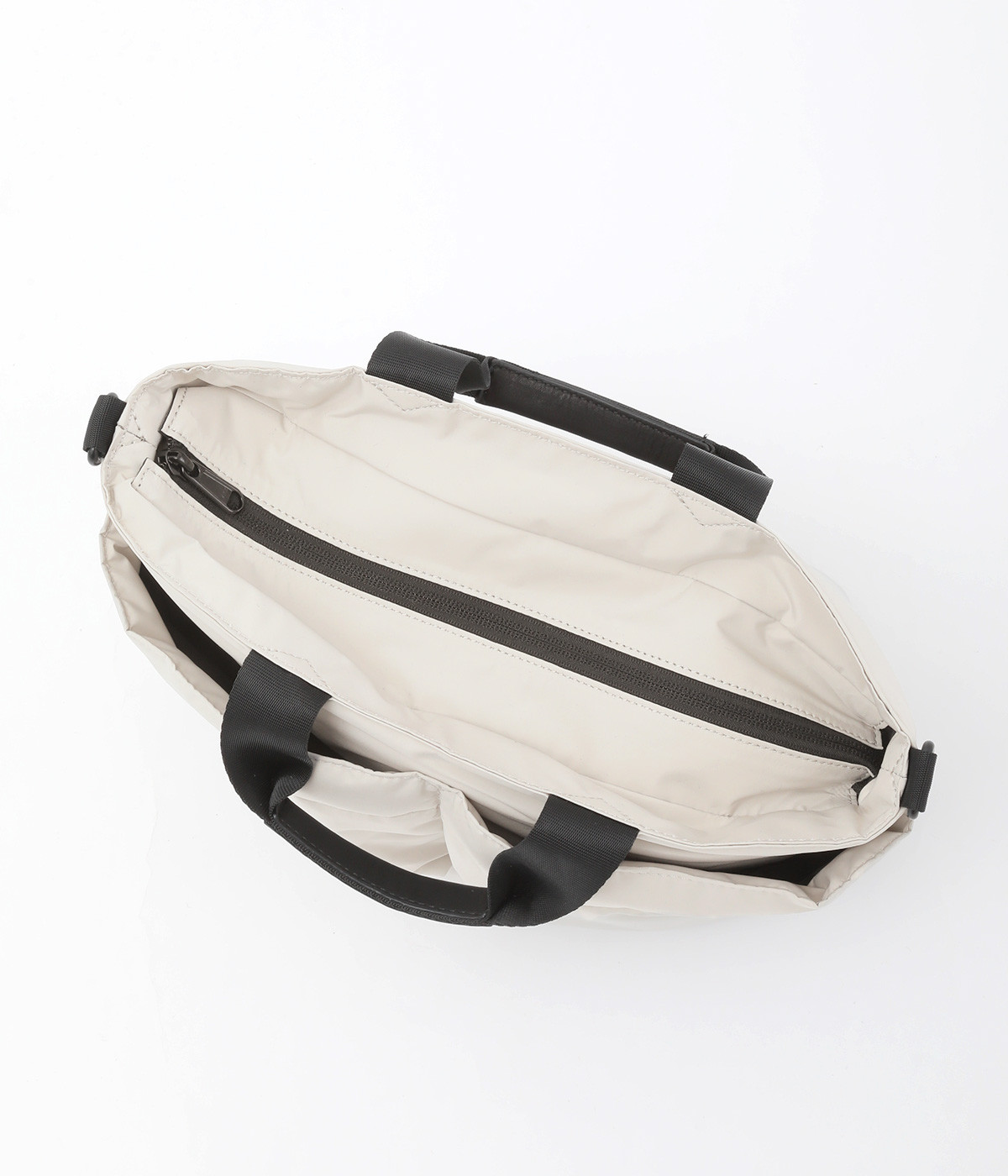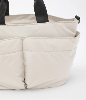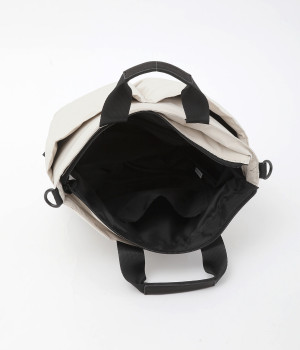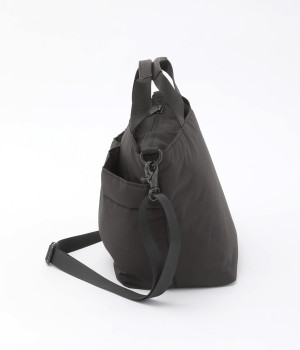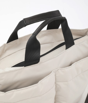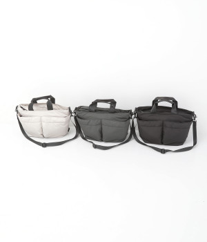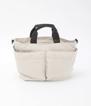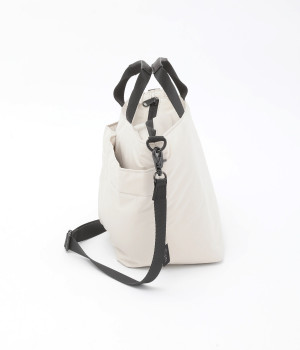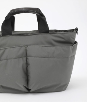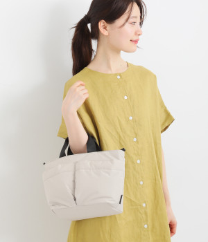 軽量で撥水性の高いポリエステル生地の裏面にコーティングをほどこして、適度なハリ感と防水性能を高めました。光沢をおさえたやわらかな生地が上品な印象を与えます。表面には防汚、防油加工を行い、長くきれいな状態を保てる素材です。