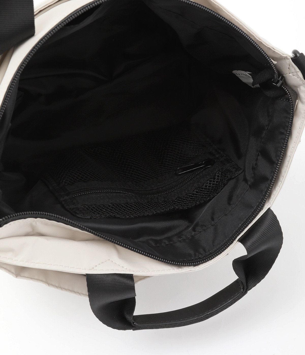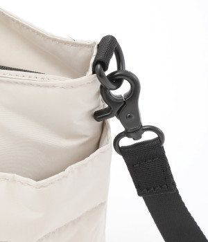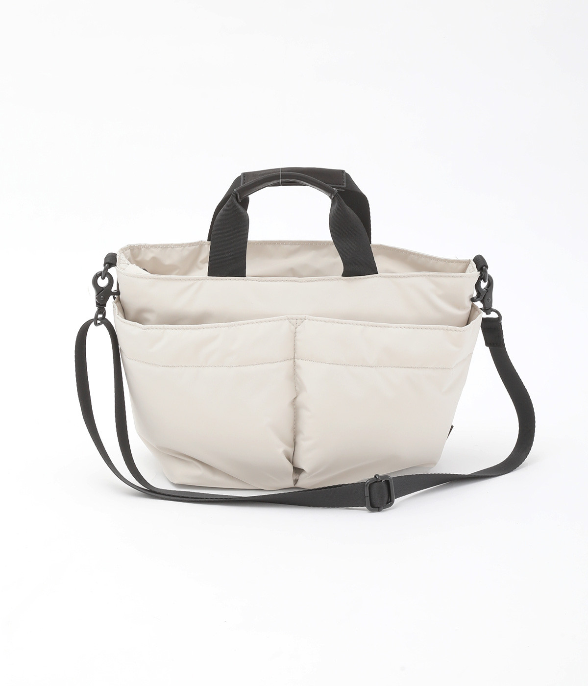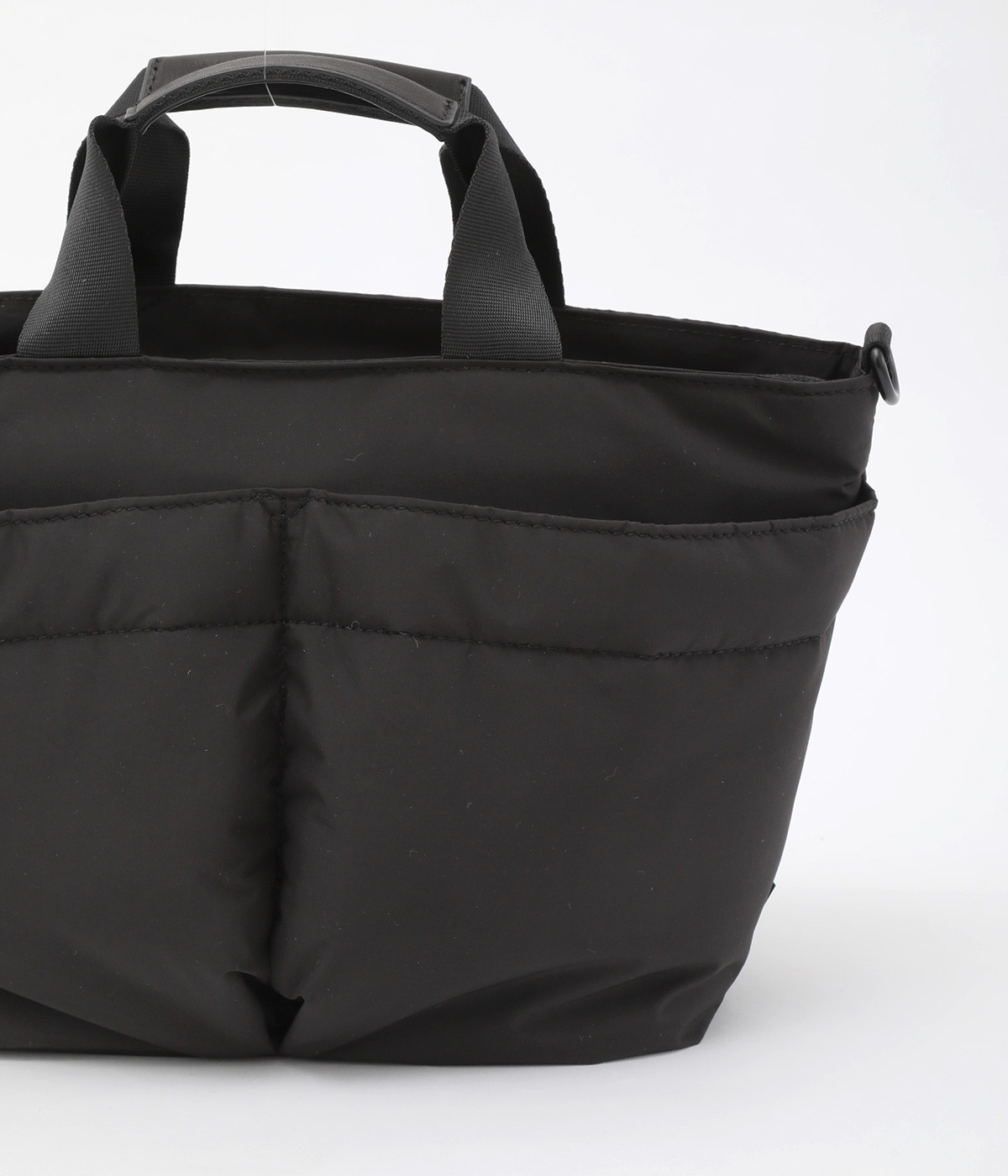軽量で撥水性の高いポリエステル生地の裏面にコーティングをほどこして、適度なハリ感と防水性能を高めました。光沢をおさえたやわらかな生地が上品な印象を与えます。表面には防汚、防油加工を行い、長くきれいな状態を保てる素材です。