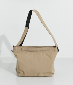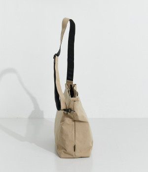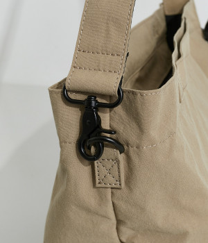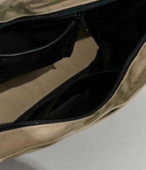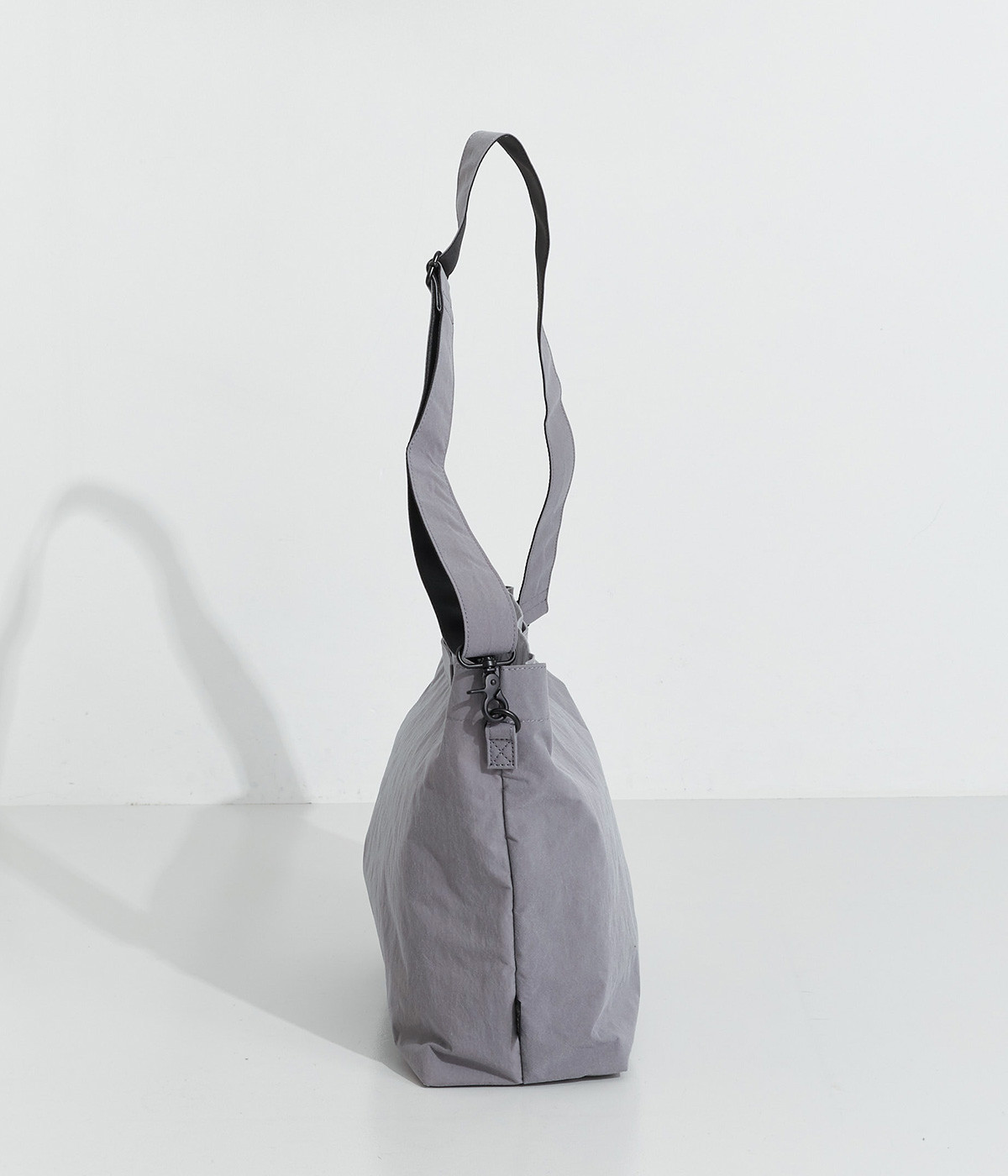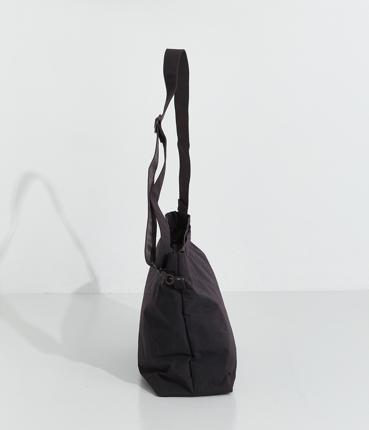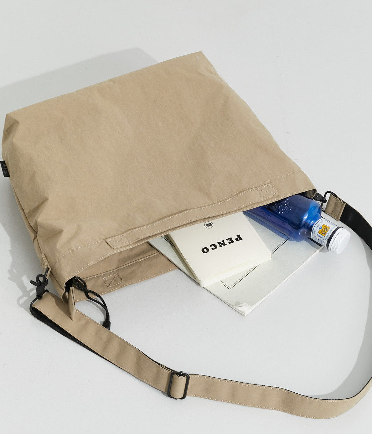 たっぷり大容量なショルダーバッグです。マチがついているので厚みのあるお弁当箱などもすっきり収まります。ショルダーベルトは取り外し可能で、手提げにするとハンサムでスマートな印象にチェンジ。