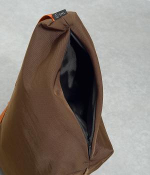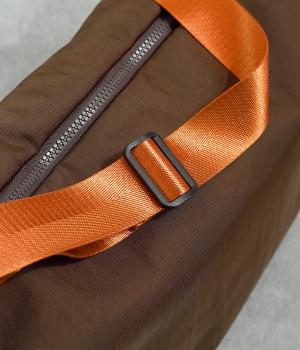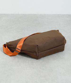 強度と耐久性に優れたナイロン素材。厚みのあるナイロンツイルに染めとシワ加工を同時に行うことにより、やわらかなツヤと自然な立体感が出る仕上がりになっています。とても軽く、心地よく使用できます。