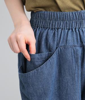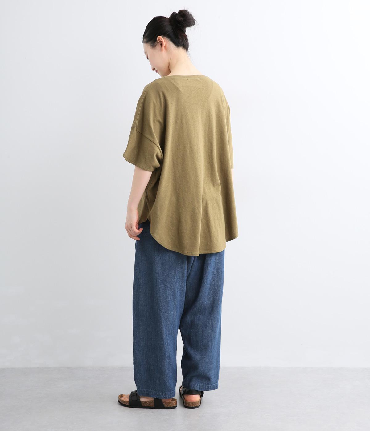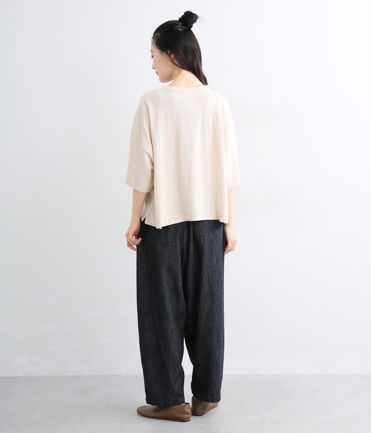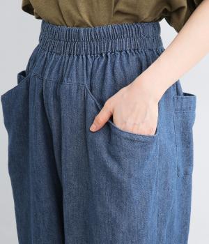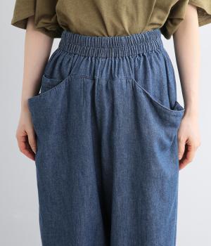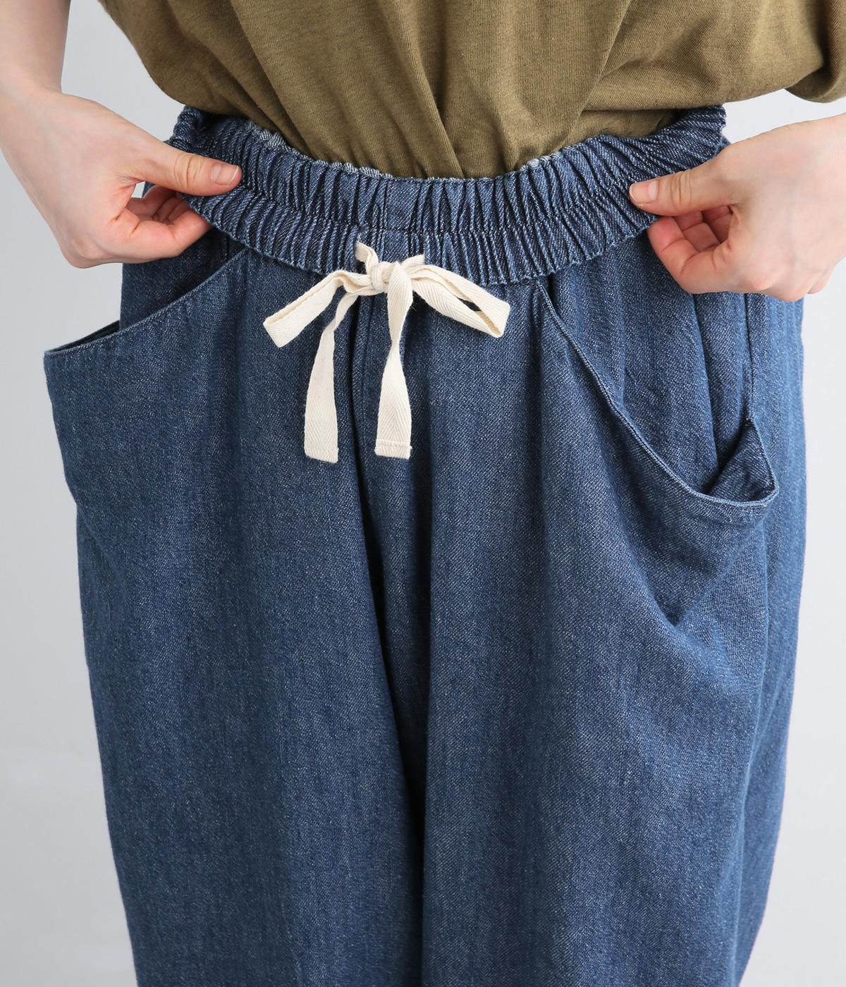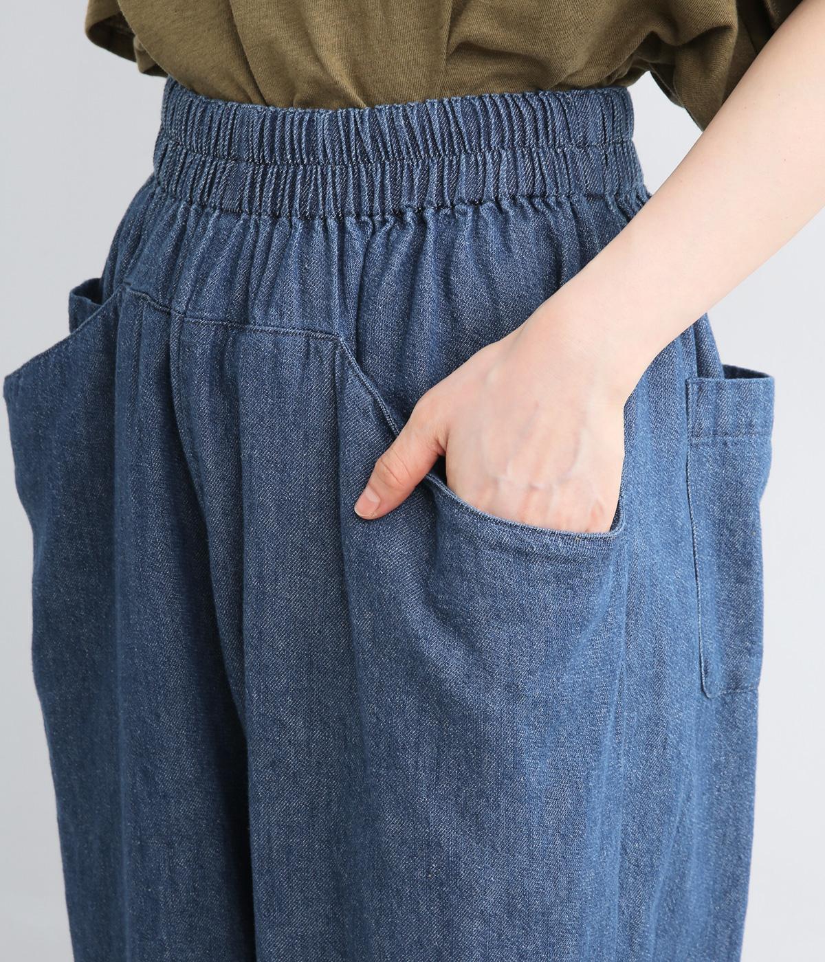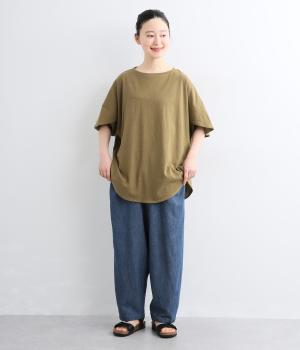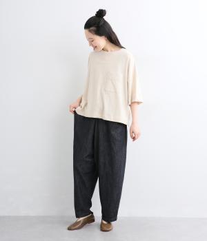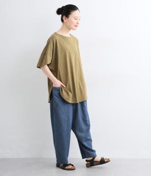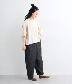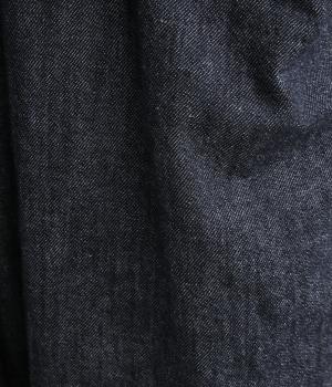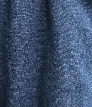 糸の撚りを弱くすることによりふくらみができた糸を、甘くゆっくりと織り上げたソフトデニム生地です。コットンリネンのナチュラルな風合いとタフさのバランスが絶妙でデイリーに活躍。