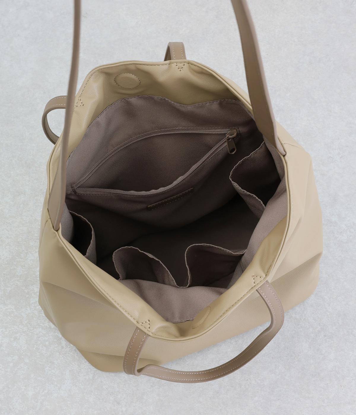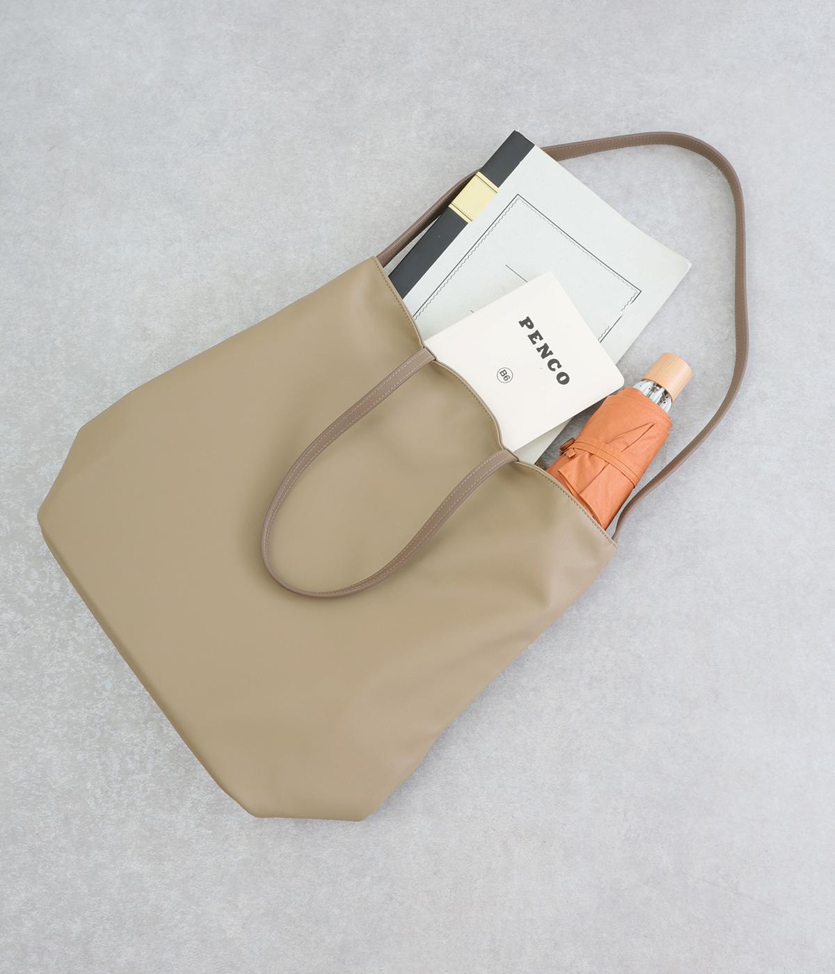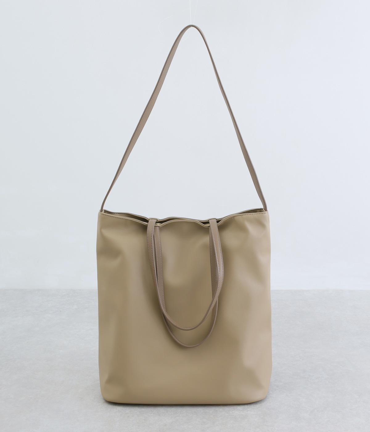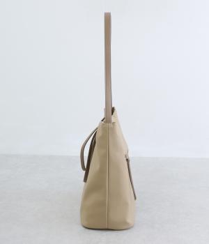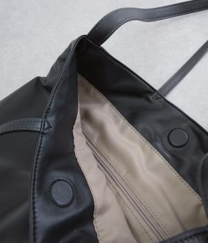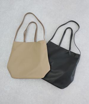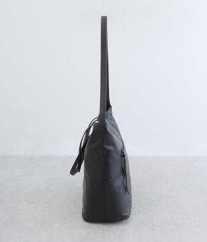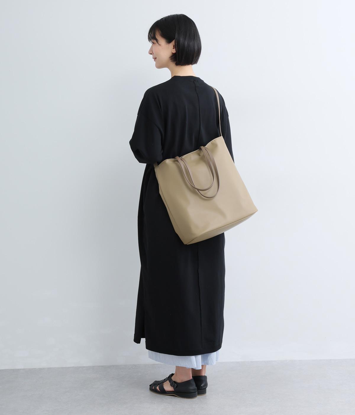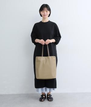 手持ちと肩掛けの使い分けができる2way仕様のトートバッグ。広いマチと、ボトルや折り畳み傘もすっきりと収まる深めのポケットを内側に配し、整理整頓のしやすさに配慮しました。柔らかなドレープが装いに優しくなじむ上品な仕上がりです。