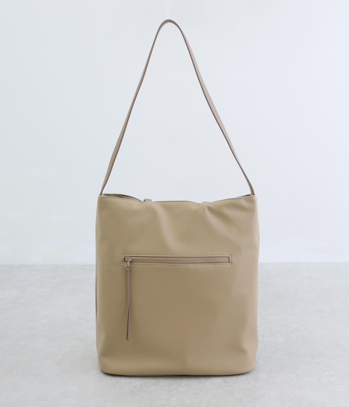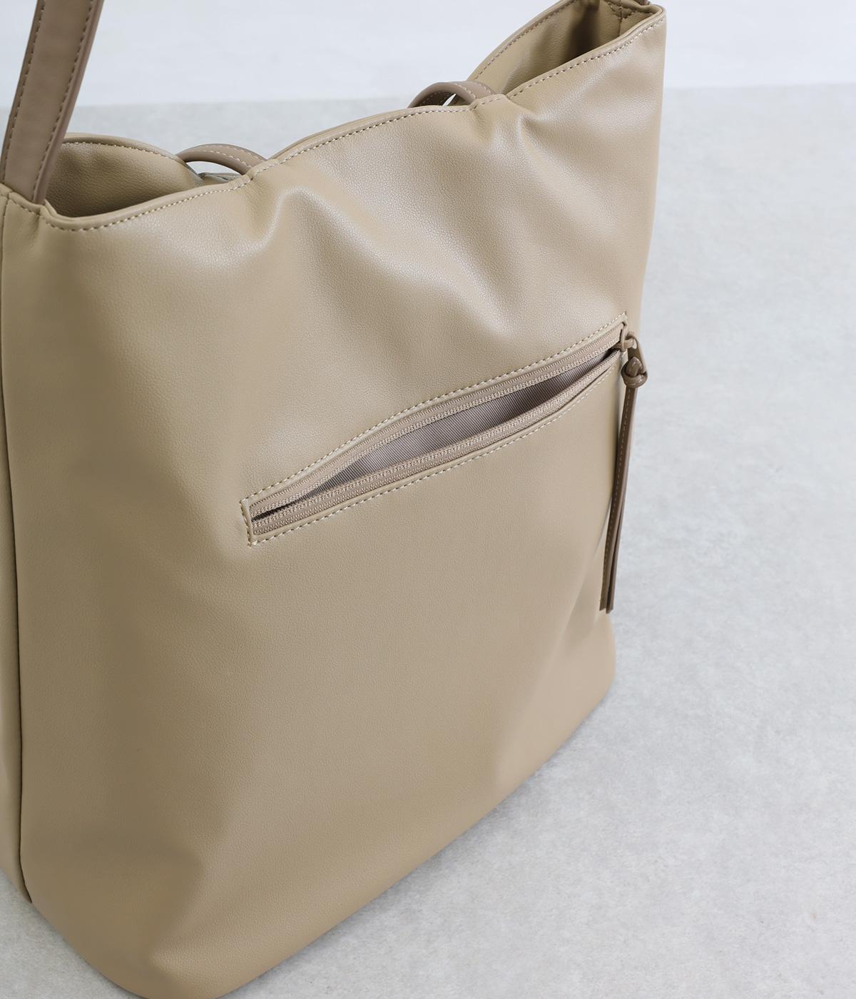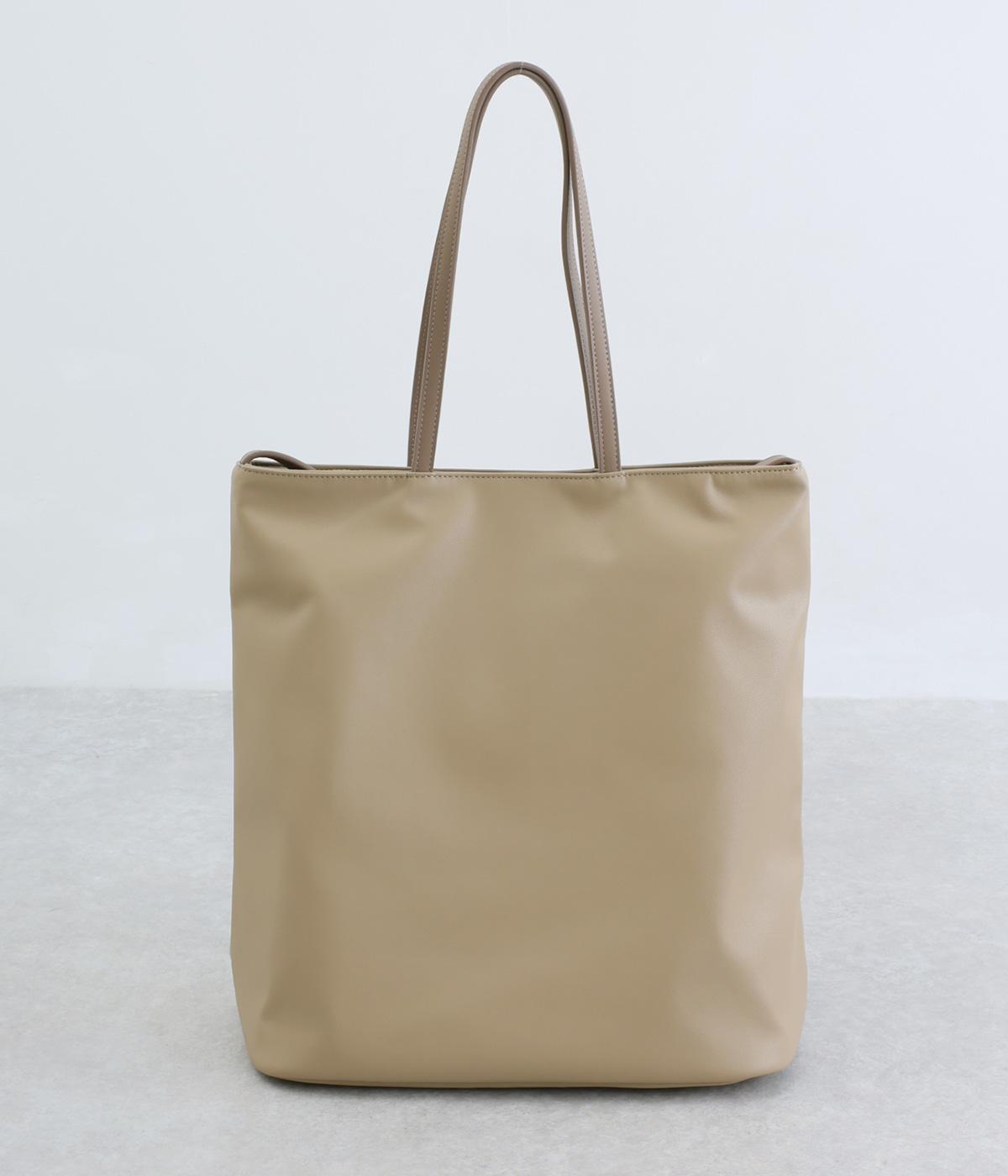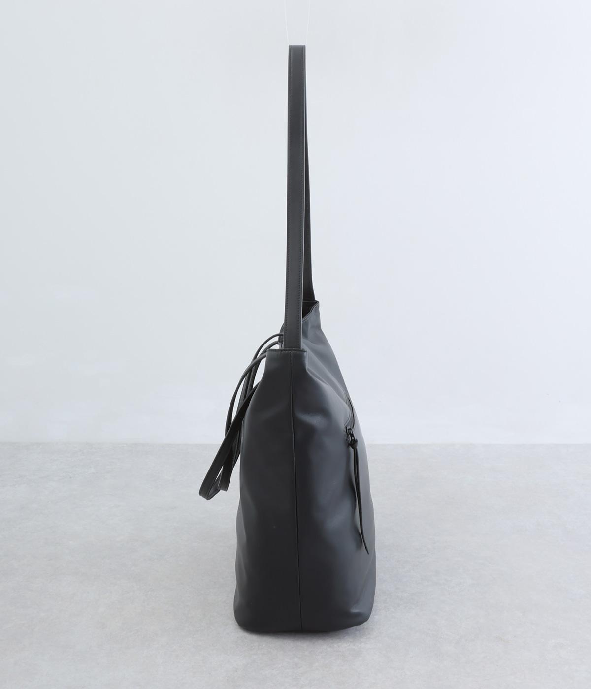 手持ちと肩掛けの使い分けができる2way仕様のトートバッグ。広いマチと、ボトルや折り畳み傘もすっきりと収まる深めのポケットを内側に配し、整理整頓のしやすさに配慮しました。柔らかなドレープが装いに優しくなじむ上品な仕上がりです。
