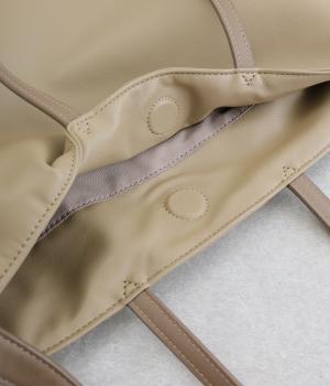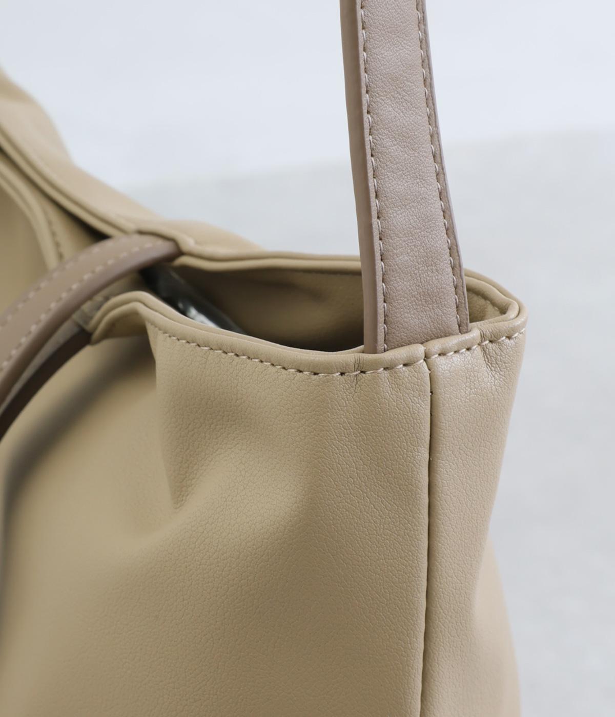 本革のような風合いの合成皮革に、さらりとした質感の合成スエードを組み合わせました。軽量でお手入れもしやすく、日々の装いに気兼ねなく取り入れられます。ハンドルには本革を使用し、耐久性にもこだわりました。