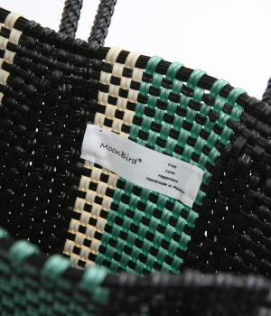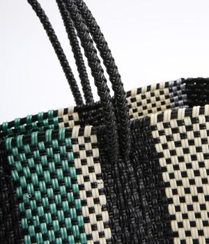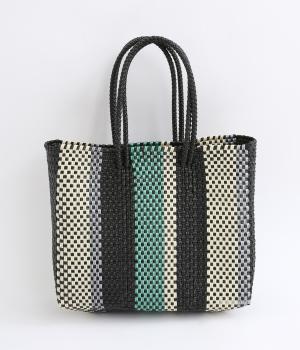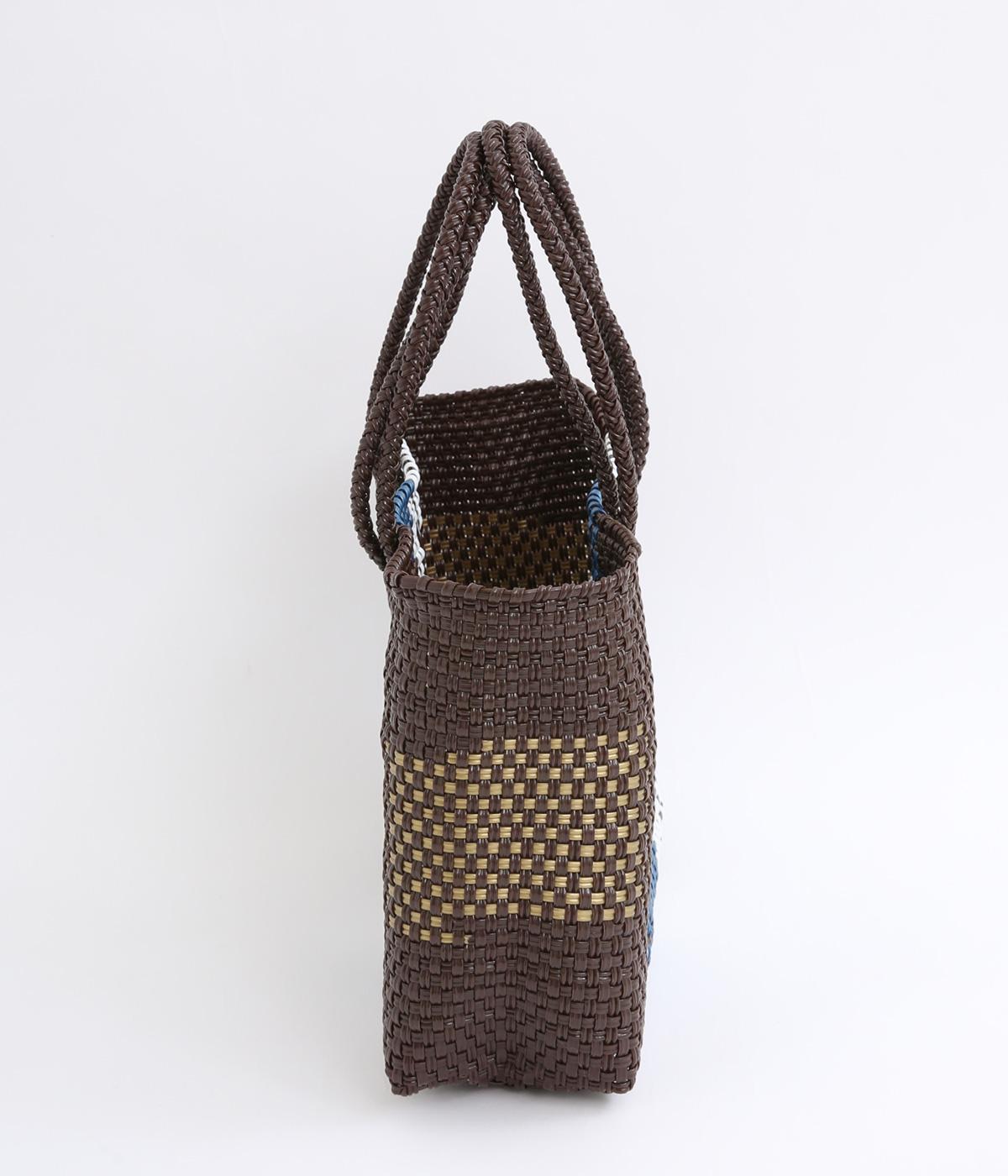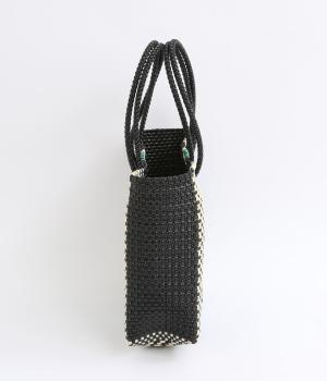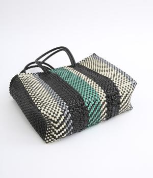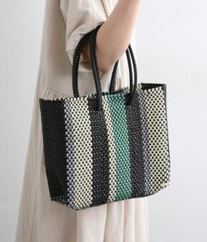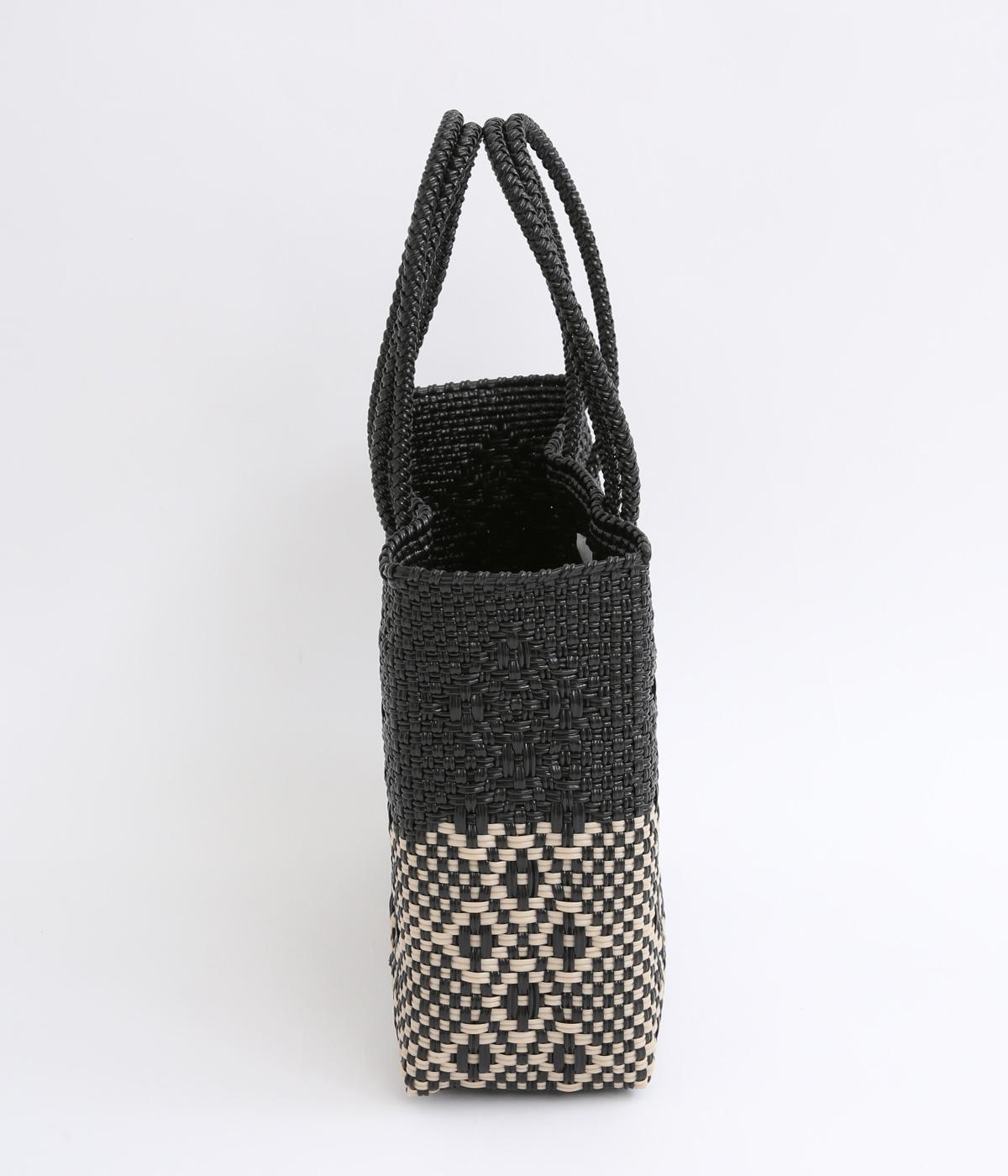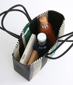 プラスチック製のカジュアル感と、モダンな色使いのMIX感が魅力のトートバッグ。しっかりと自立する作りが特徴で、500mlボトルや折り畳み傘もすっぽり収まるサイズ感が◎。ハンドルを二重にすることで機能性だけでなくデザイン性もアップ。