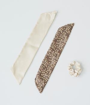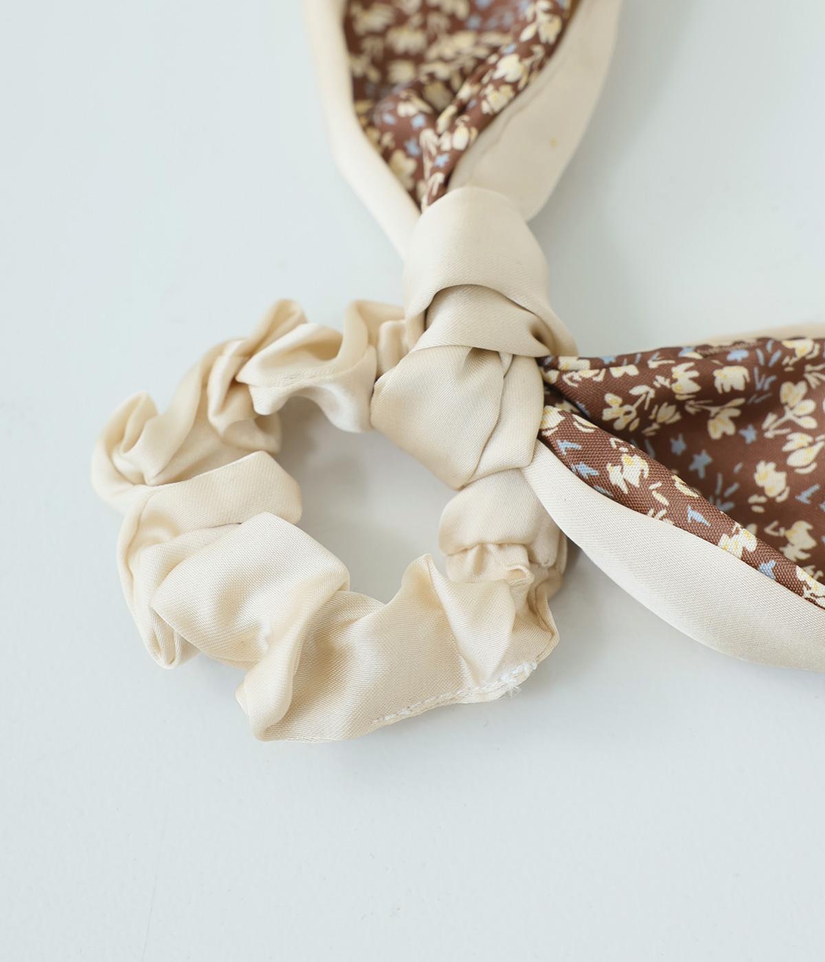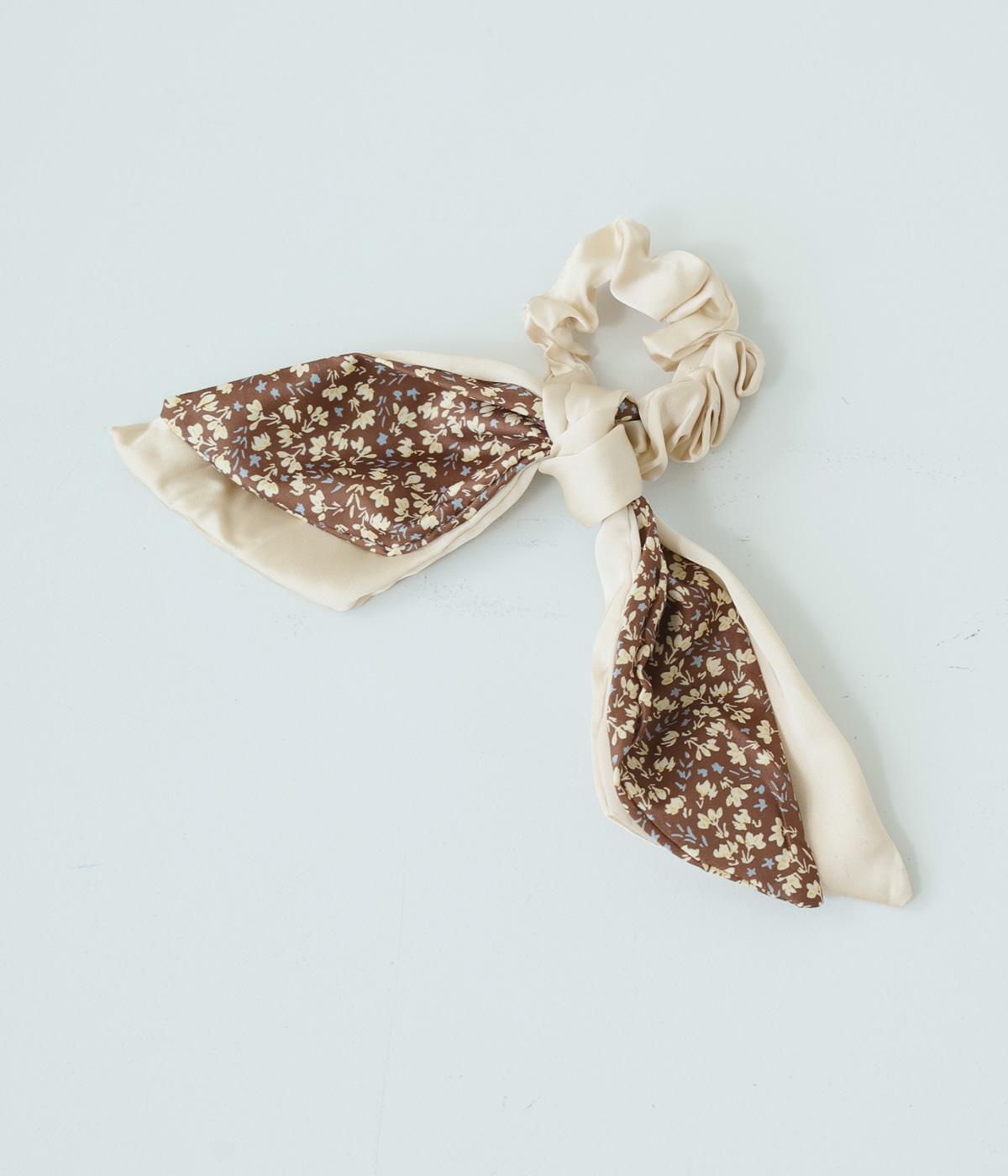 ミニフラワーリボン シュシュ(ベージュ-F)