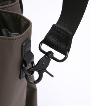 タフで扱いやすいポリエステル生地をツヤ感を抑えてマットに仕上げました。撥水加工をほどこして、雨や雪でも頼れる素材感です。軽量でしなやかな手ざわりも魅力です。
