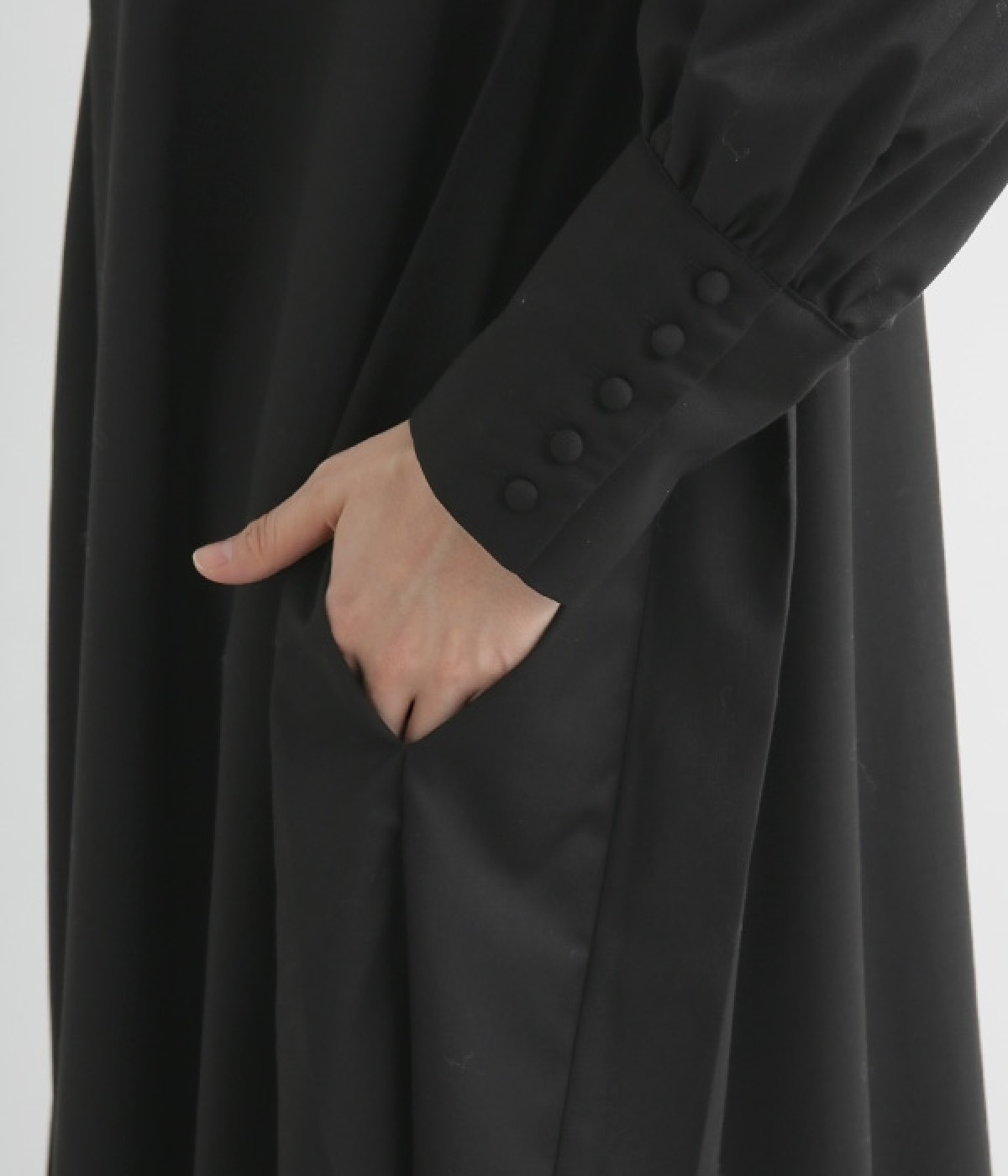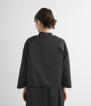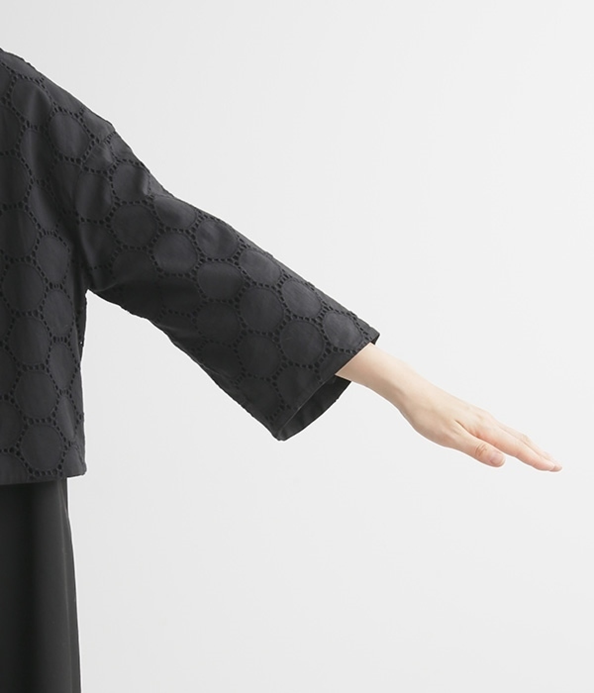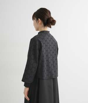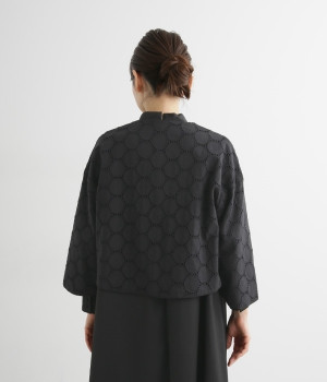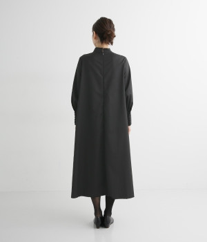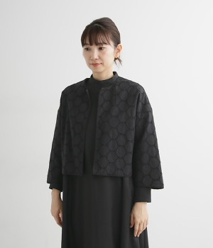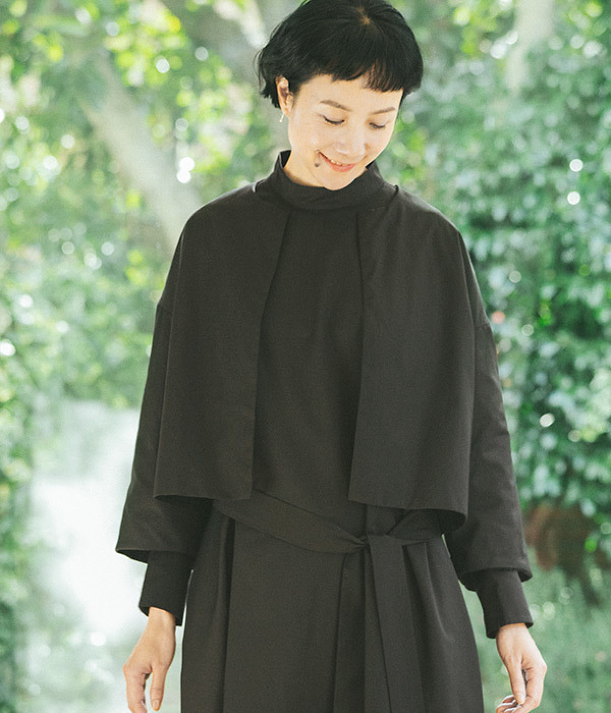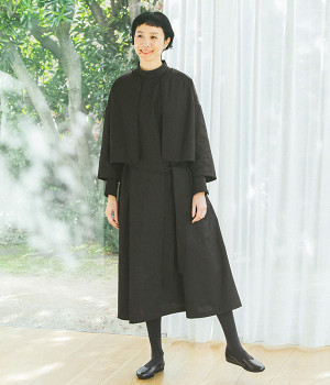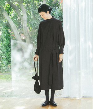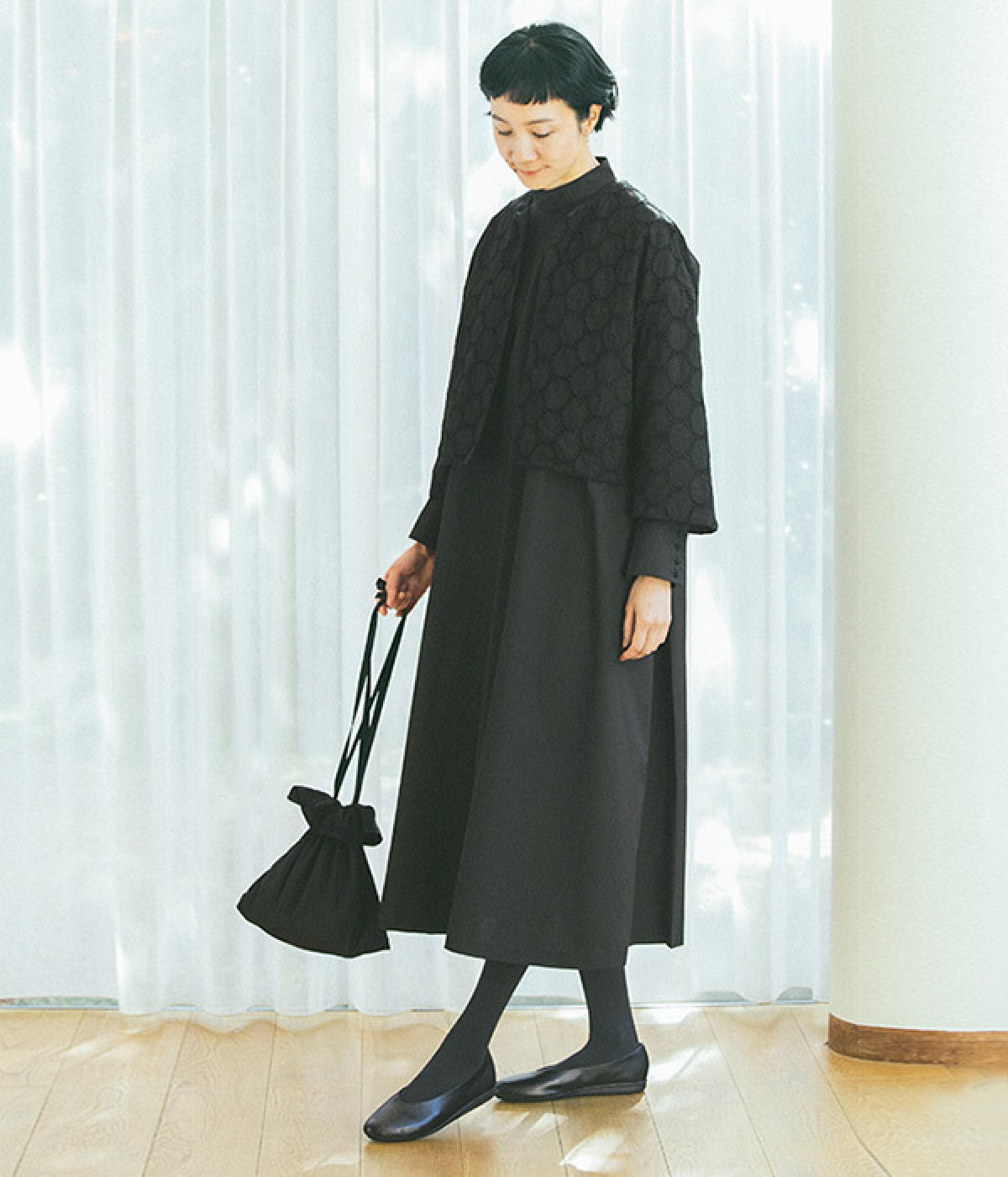 無地とレース生地のリバーシブルになったジャケットと、長めのカフスがポイントになったワンピースのアンサンブルです。ワンピースは脇下にタックを施した裾に向かって広がるキレイなシルエットで、付属の太めのベルトでウエストマークするのもおすすめ。アンサンブルではもちろん、それぞれ単品でも使えて持っていると重宝するセットです。ワンピースのみ、両サイドにポケット付き。(※ジャケットは無地部分が表の場合、洗濯ネームが見える仕様になりますので、取り外してのご着用となります。)