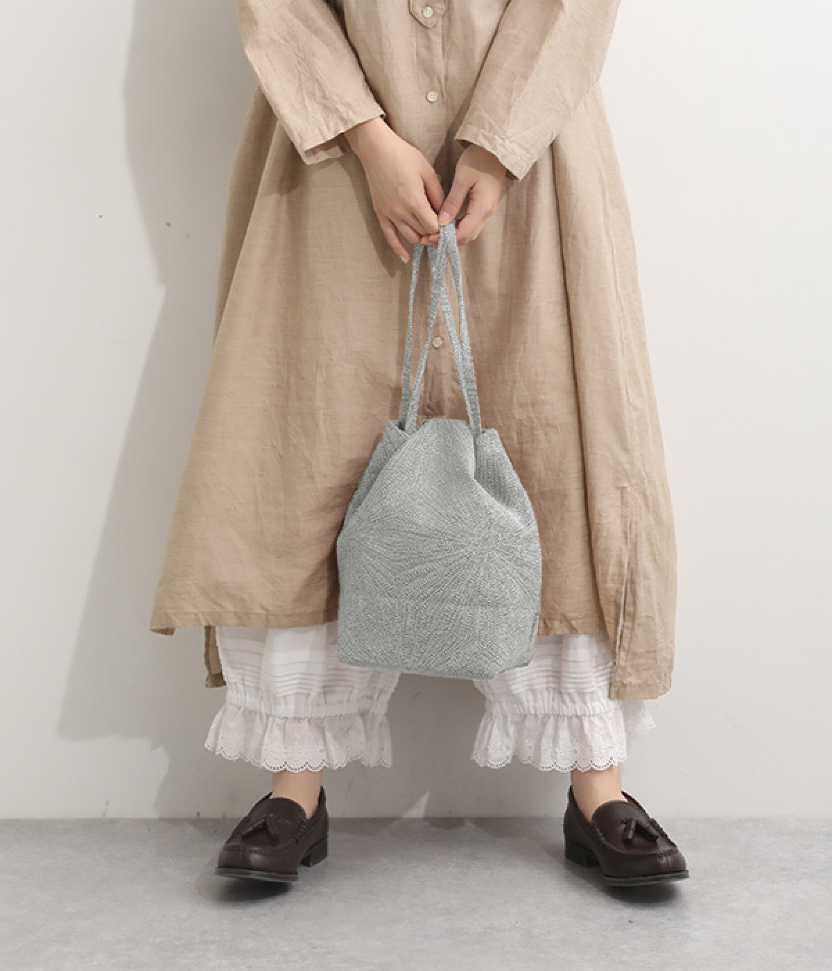 ジャカード生地にタンポポのモチーフを描き出した繊細な作りが特徴的なトートバッグです。ショルダーひもの取り出し方によって巾着型にしたり、肩掛けにしたり、手持ちにもできる仕様。しっかりとしたマチ幅があるので必需品がすっきりと収まります。とても軽量の仕上がりで手洗いもできる取り扱いやすさも、デイリーに活躍するポイントです。
