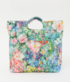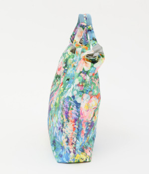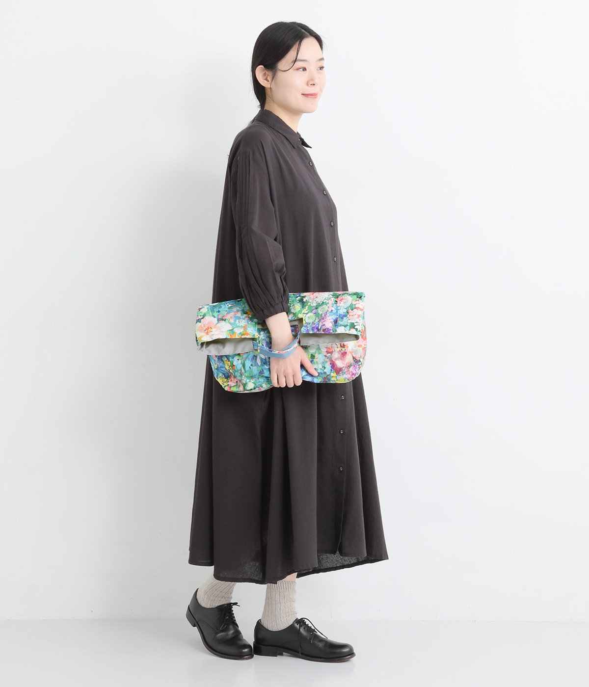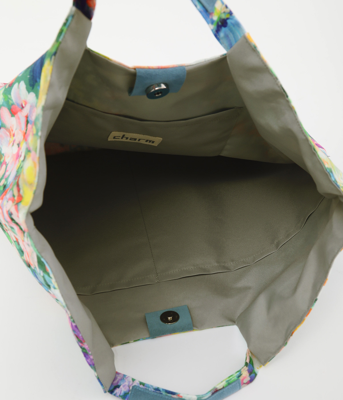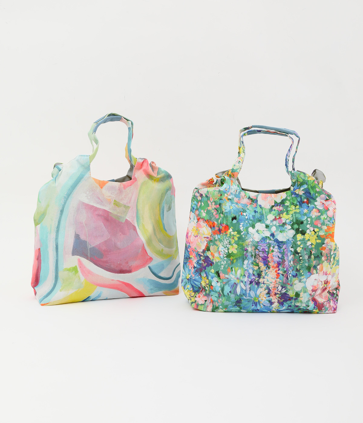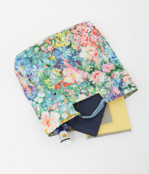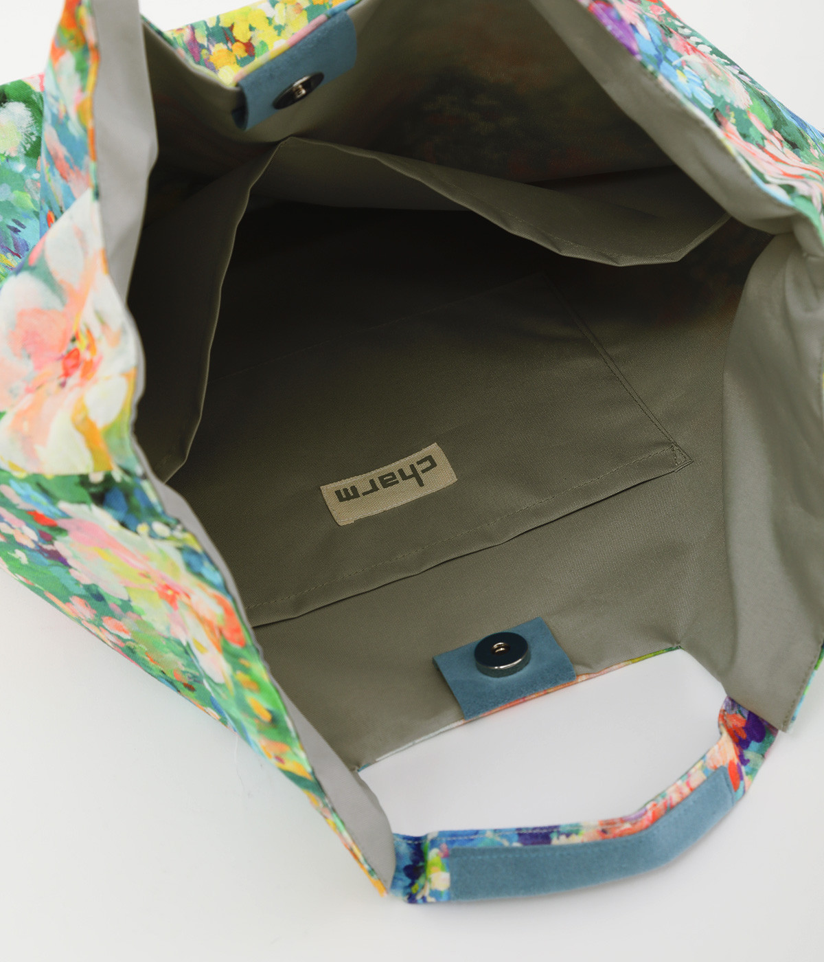 フランスの小さな村ジヴェルニーをモチーフにした油絵のような柄が特徴的なフランスのプリント生地を用い用いました。コットン素材で気兼ねなく合わせられ、軽量なのもポイント高め。A4が入るサイズも◎。