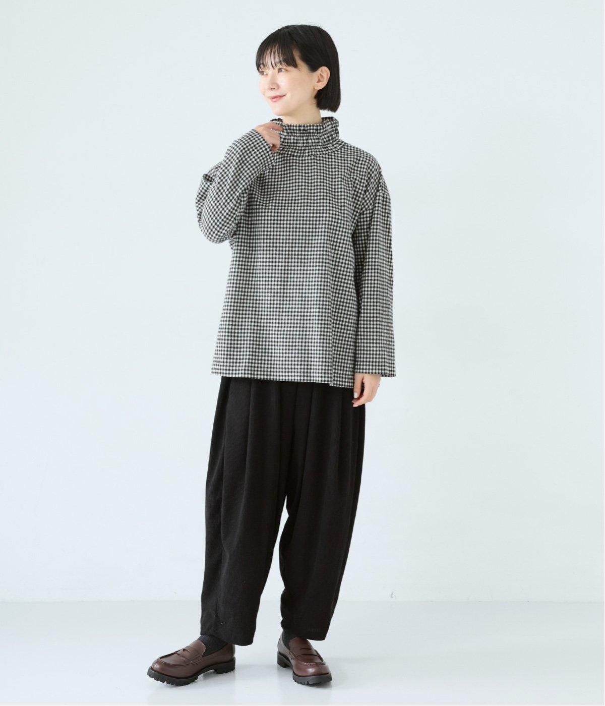 起毛miniギンガムチェックダブルネックプルオーバー(ブラック-F)