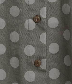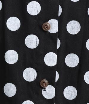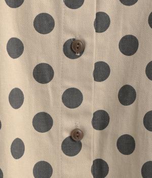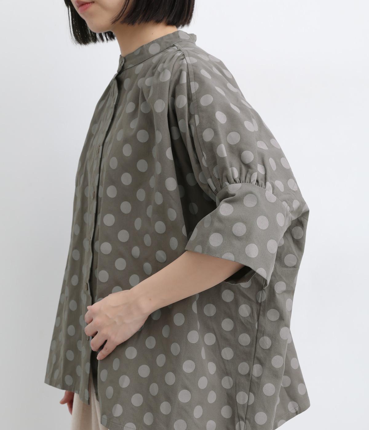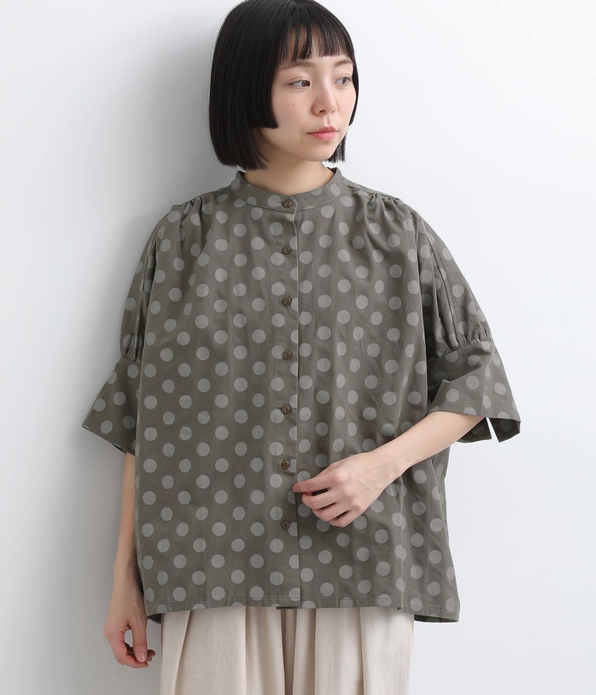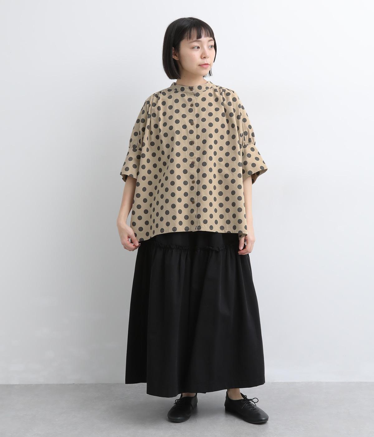 ワイドな身幅にヨークギャザー、ハリのある素材が着映えするブラウス。大きめのドット柄は可愛らしくもモードな雰囲気を運びます。ドルマン袖はスリットが入っているので、ひじも曲げやすく着心地快適です。