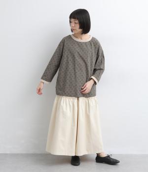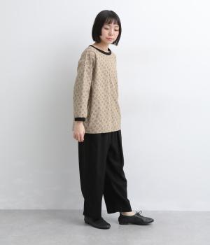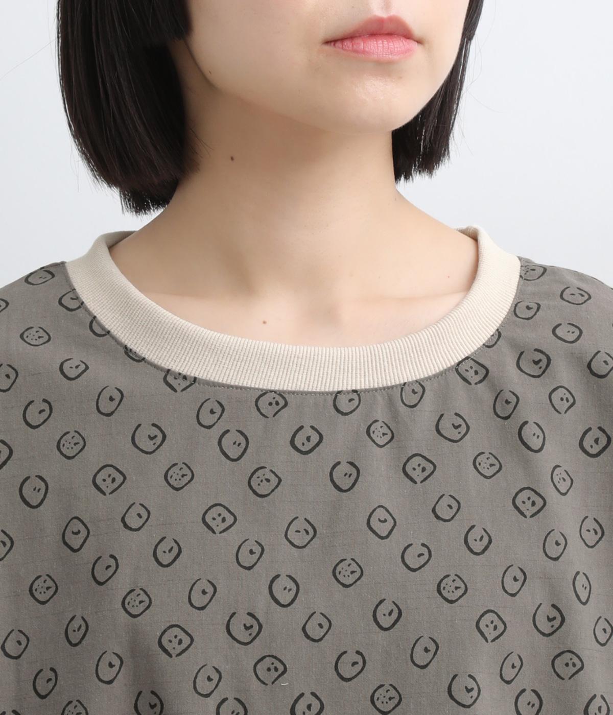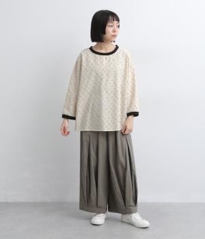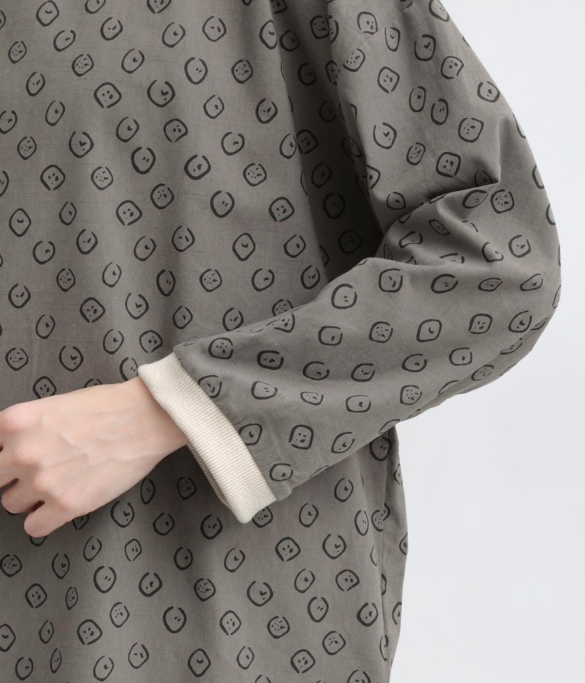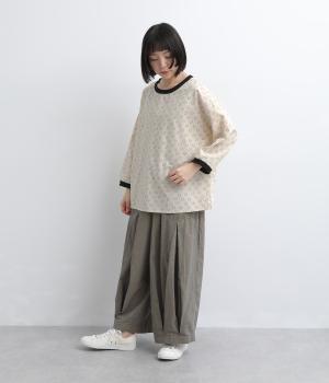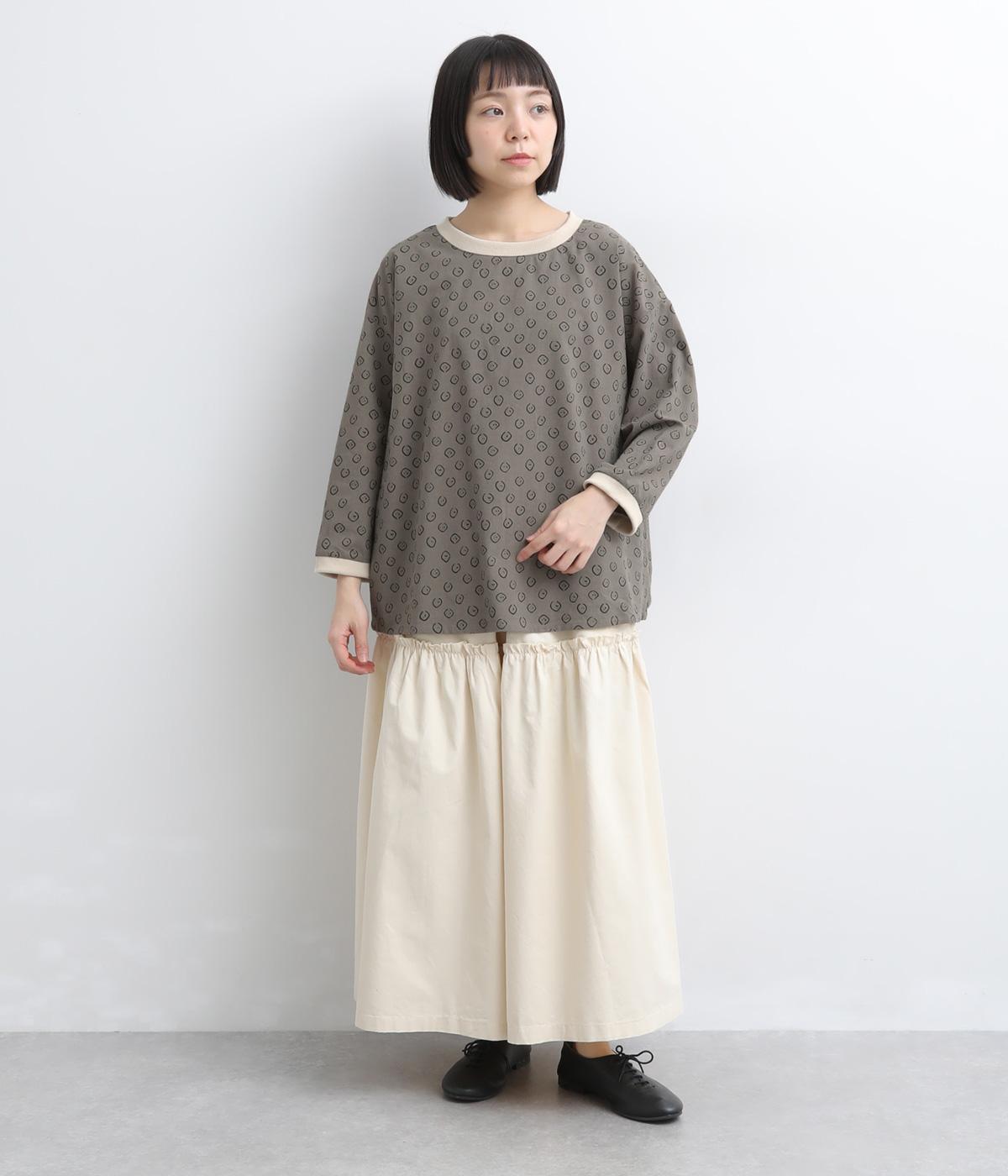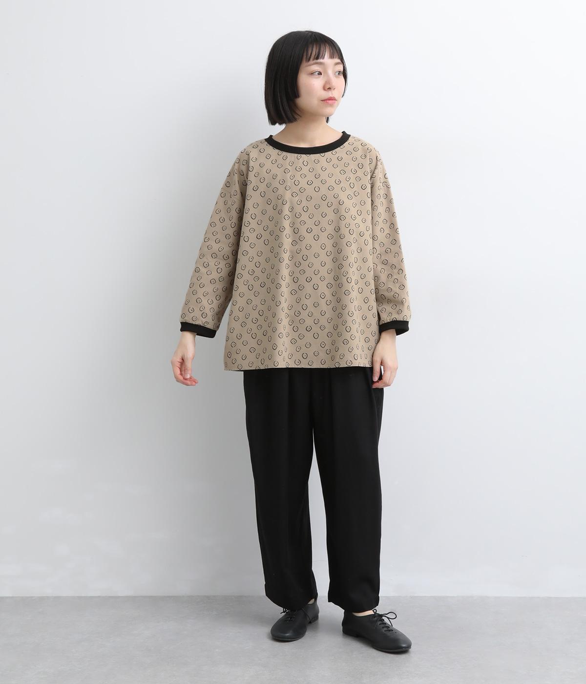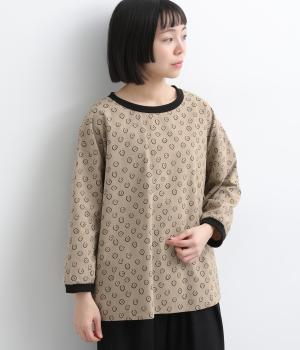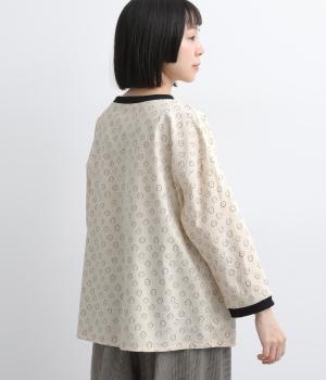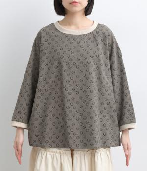 歪さが表情のある変形ドットプリントが印象的な一枚。ゆったりとしたシルエットがリラックスムードを運び、配色リブが適度にメリハリをプラス。手首がきれいに見える袖丈で季節の変わり目までロングシーズン活躍します。