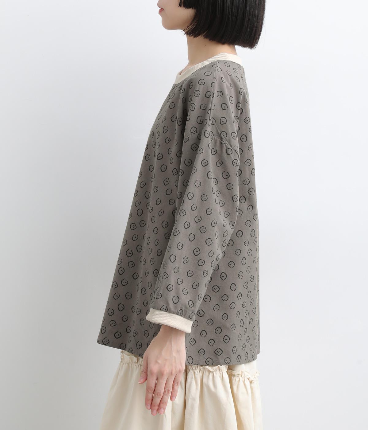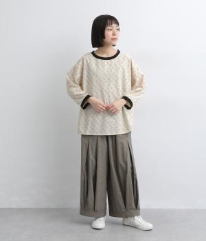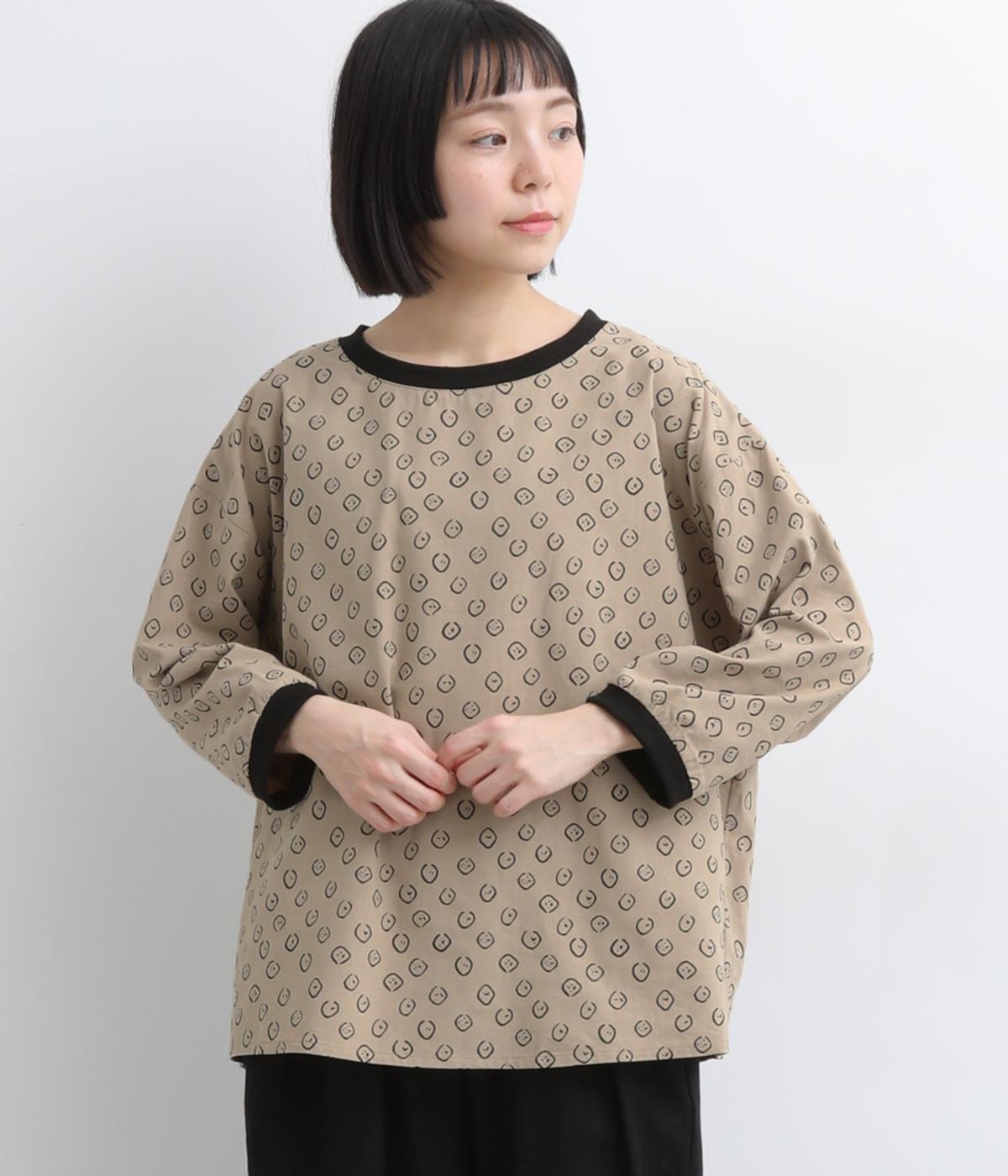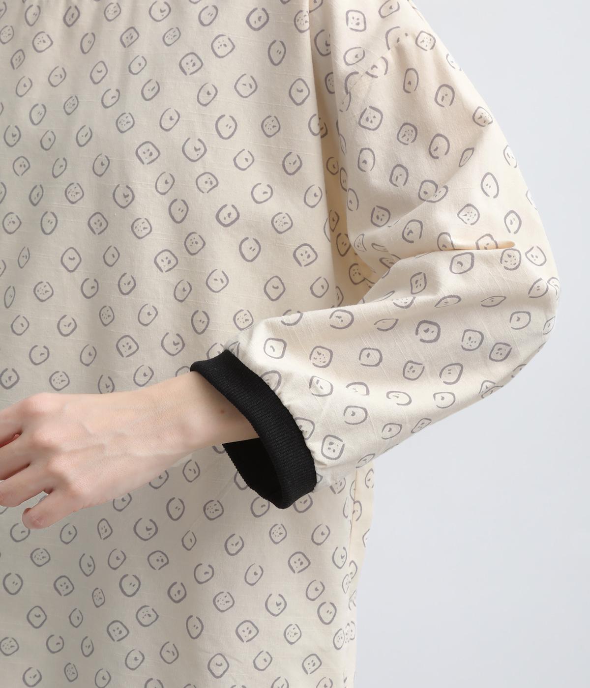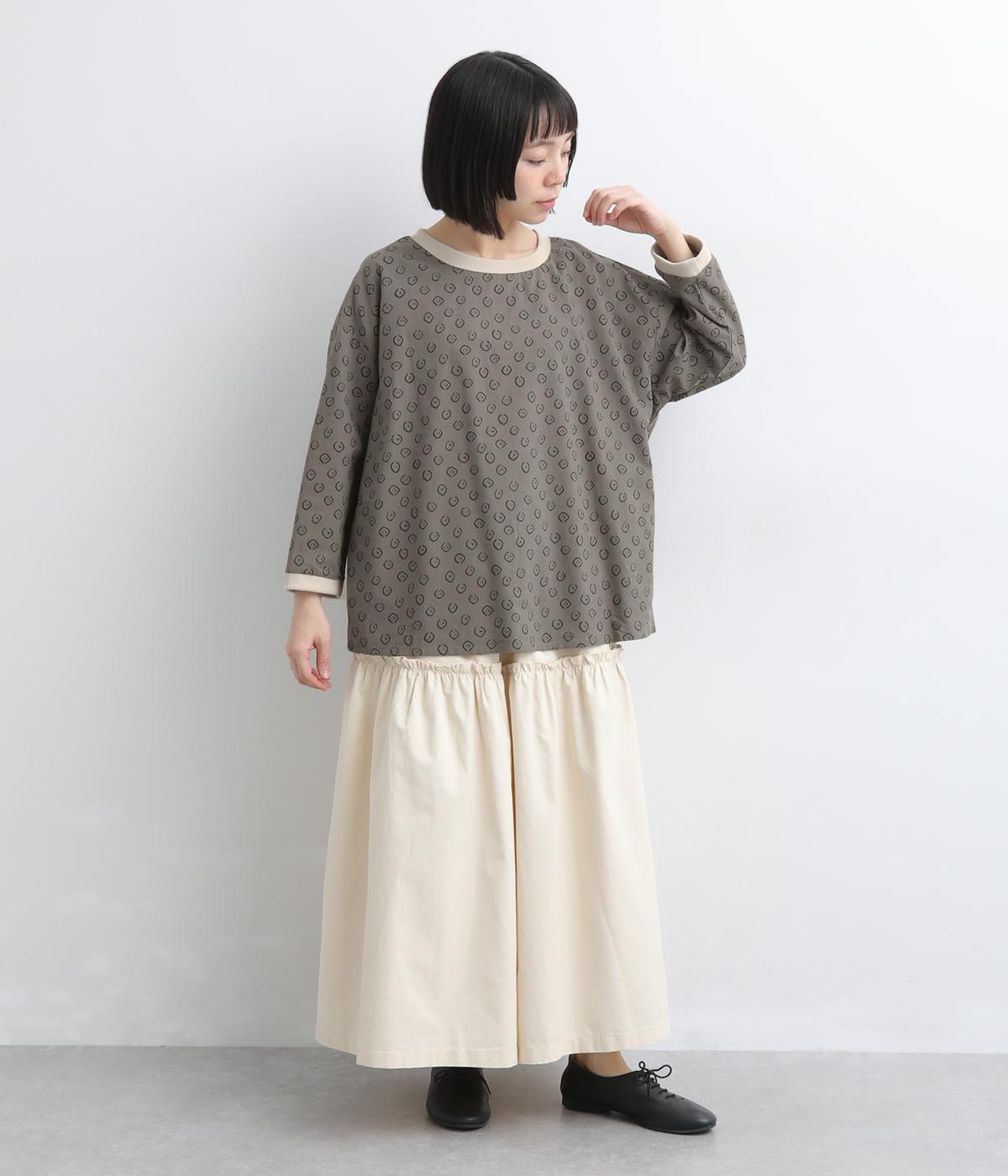 歪さが表情のある変形ドットプリントが印象的な一枚。ゆったりとしたシルエットがリラックスムードを運び、配色リブが適度にメリハリをプラス。手首がきれいに見える袖丈で季節の変わり目までロングシーズン活躍します。