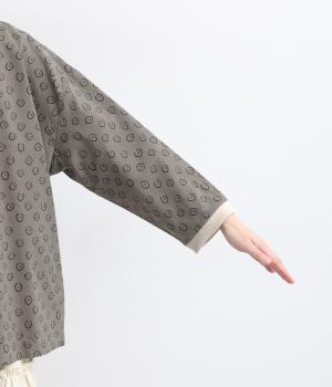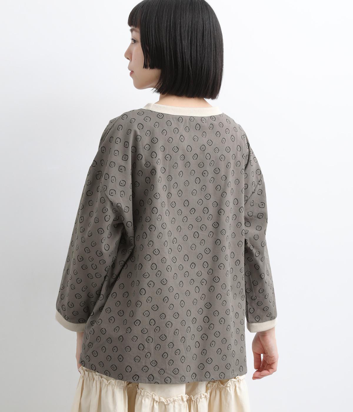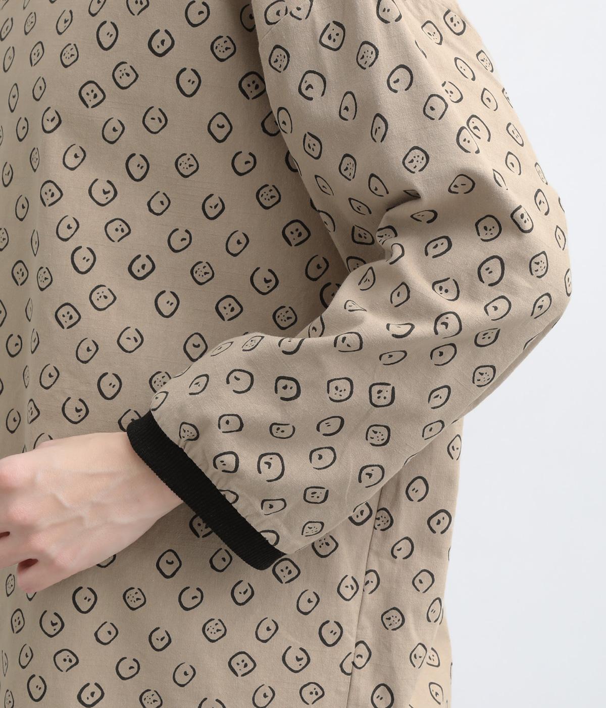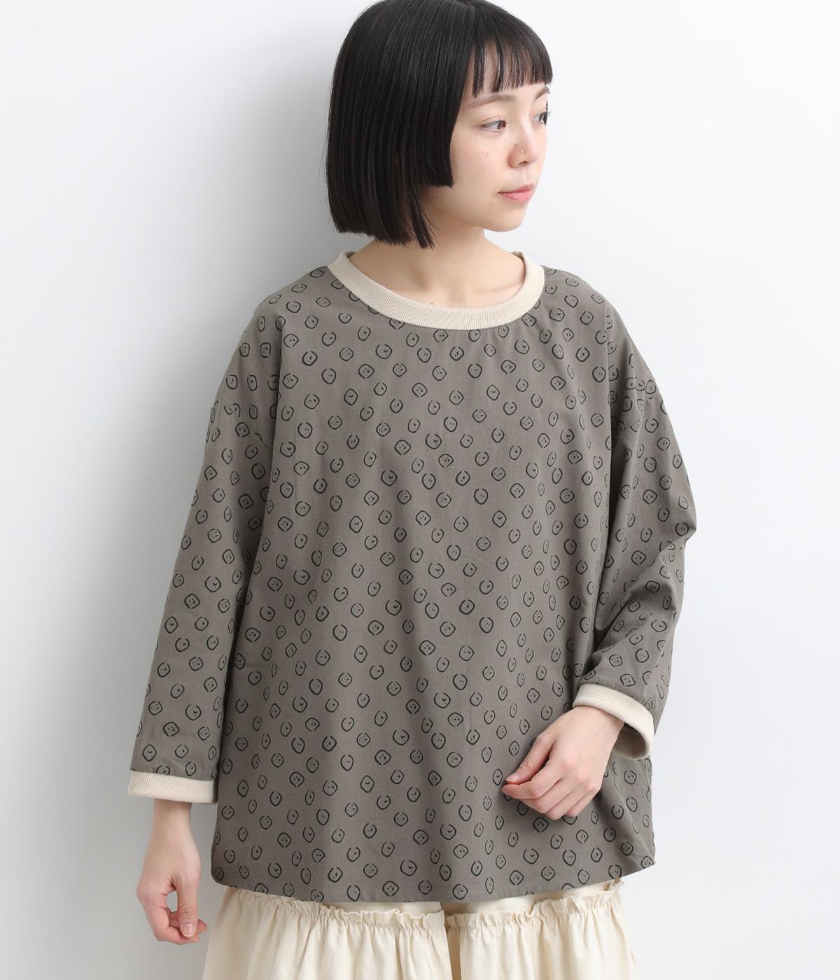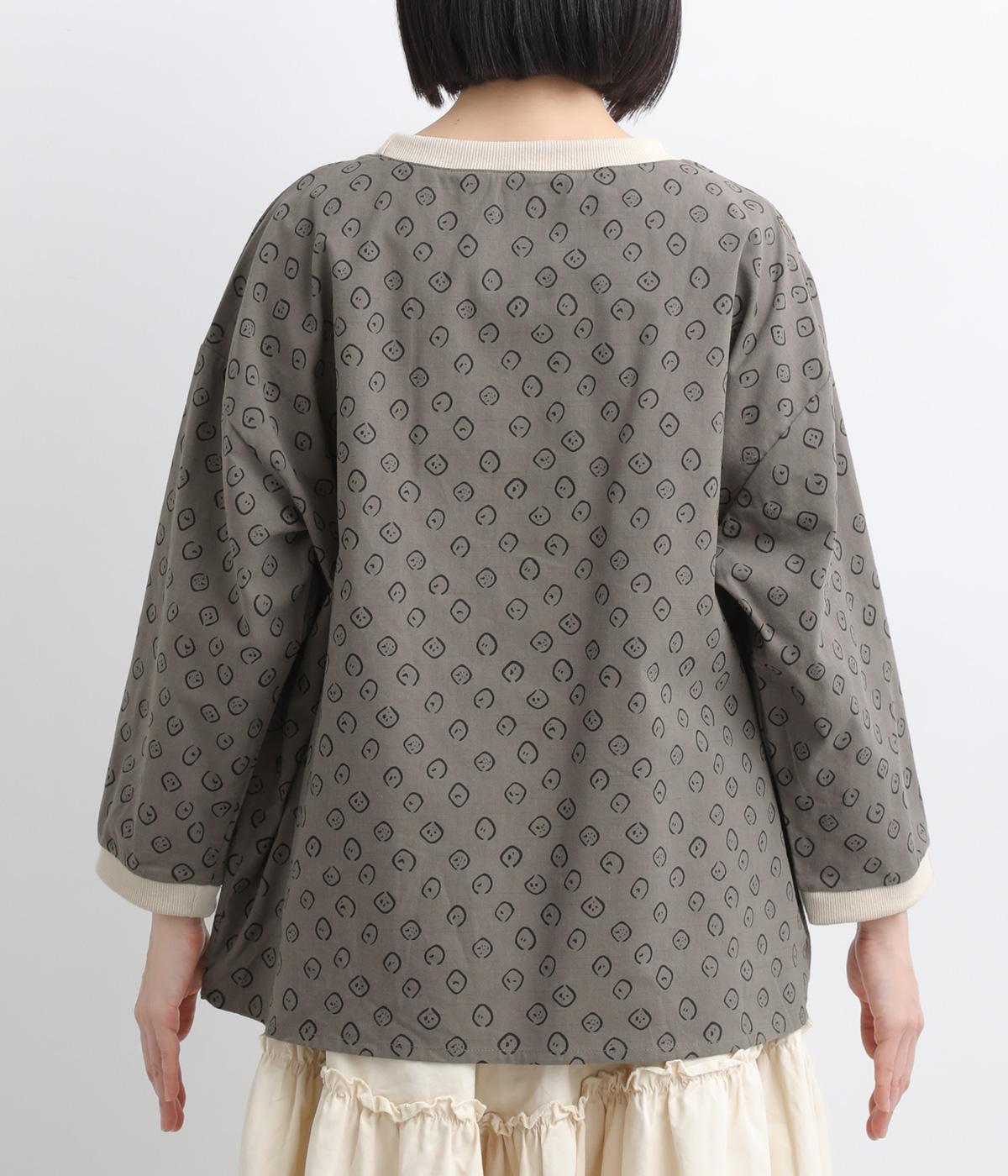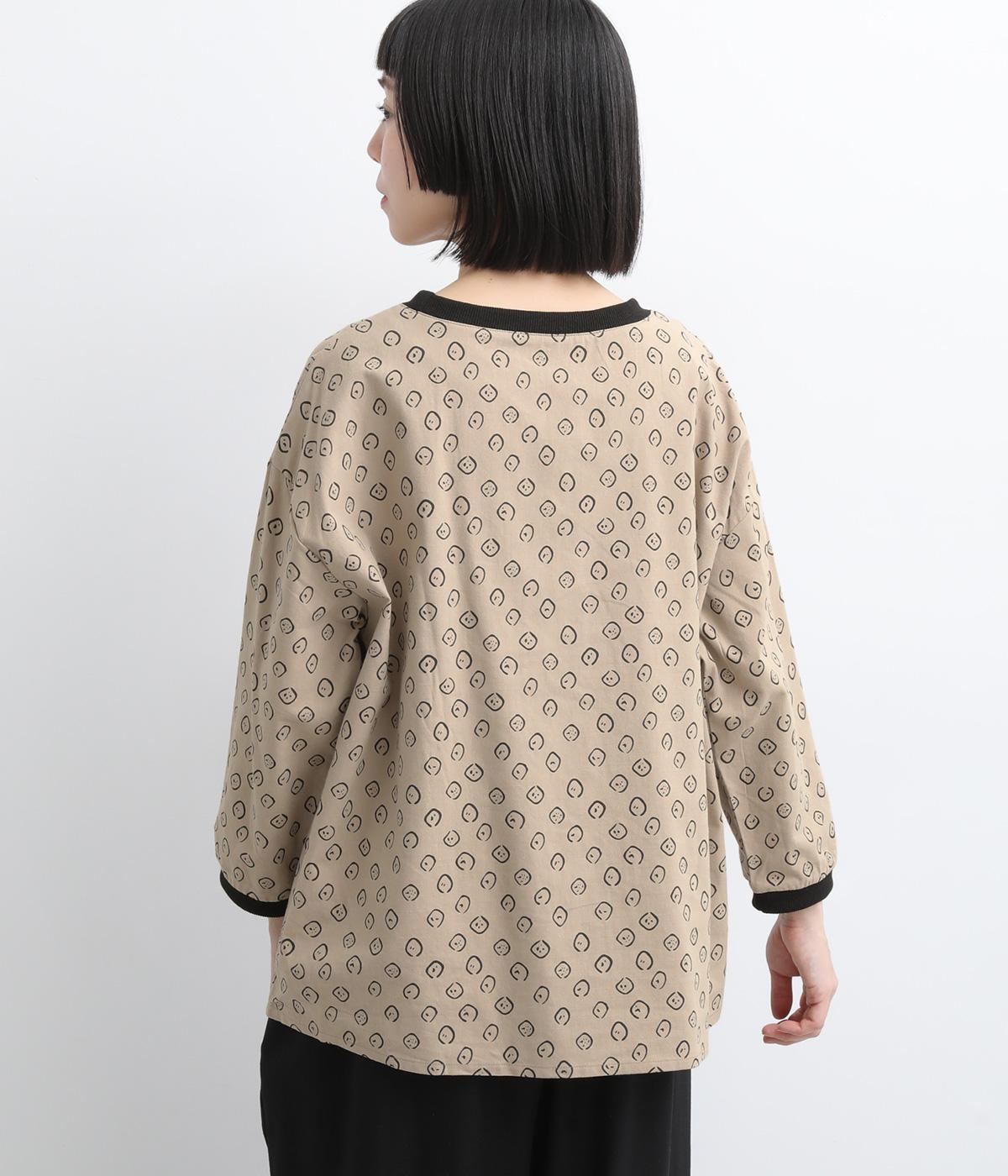 歪さが表情のある変形ドットプリントが印象的な一枚。ゆったりとしたシルエットがリラックスムードを運び、配色リブが適度にメリハリをプラス。手首がきれいに見える袖丈で季節の変わり目までロングシーズン活躍します。