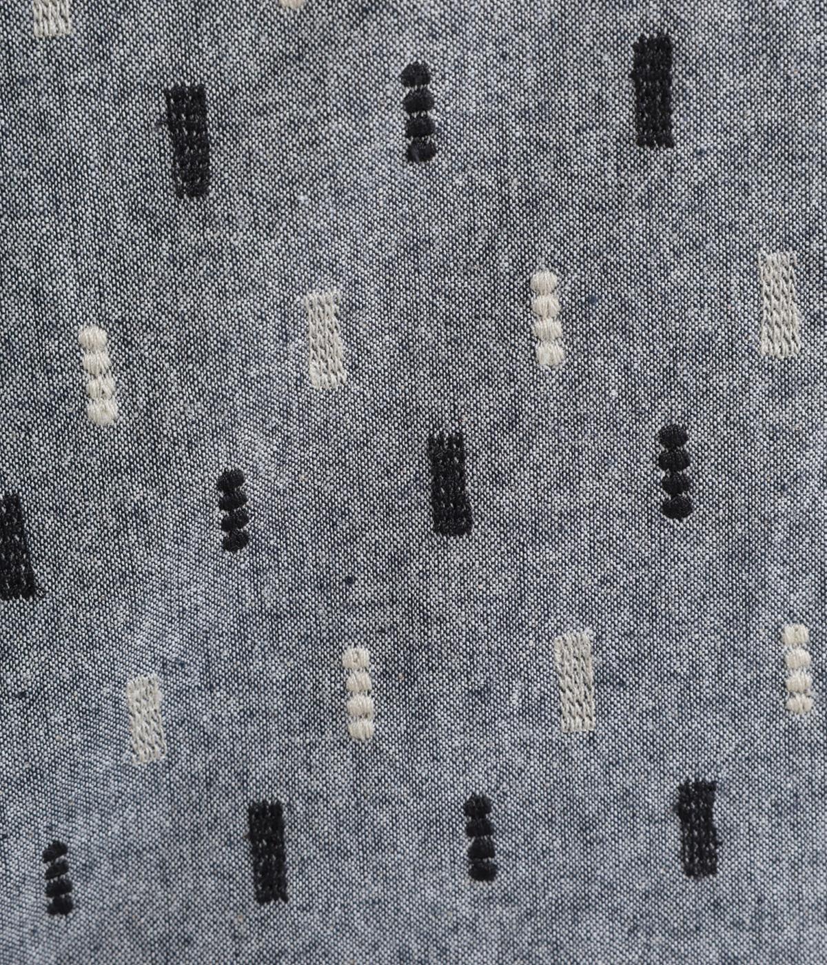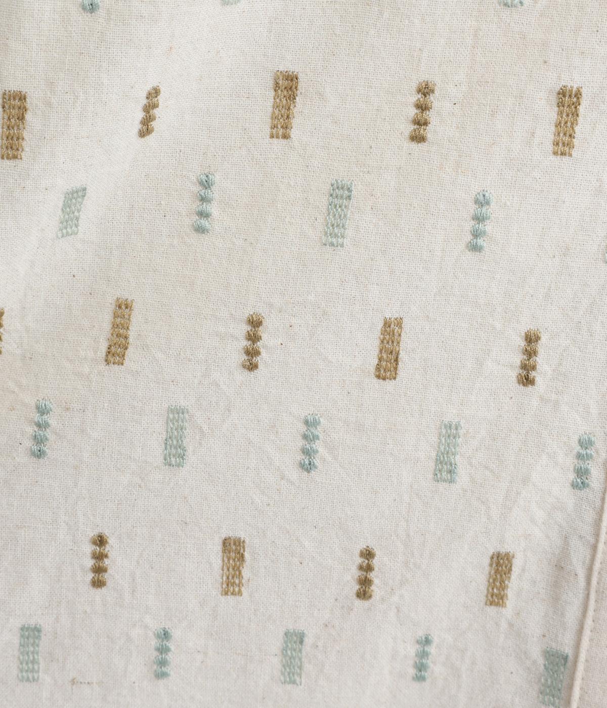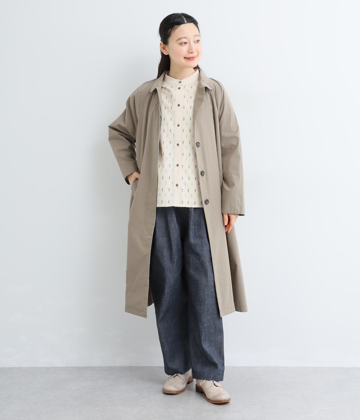 コットンダンガリーならではの、奥行きを感じる色合いが魅力の生地です。糸の表情がほのかにあらわれ、均一すぎない風合いがやさしい雰囲気を演出します。さらりとした肌ざわりと軽やかさがあり、心地よく着用できる素材感です。