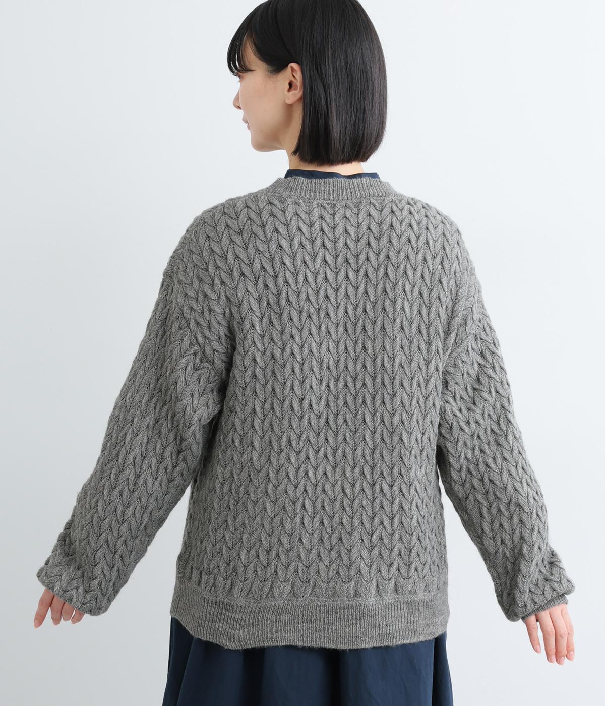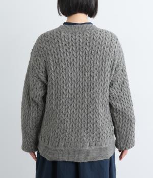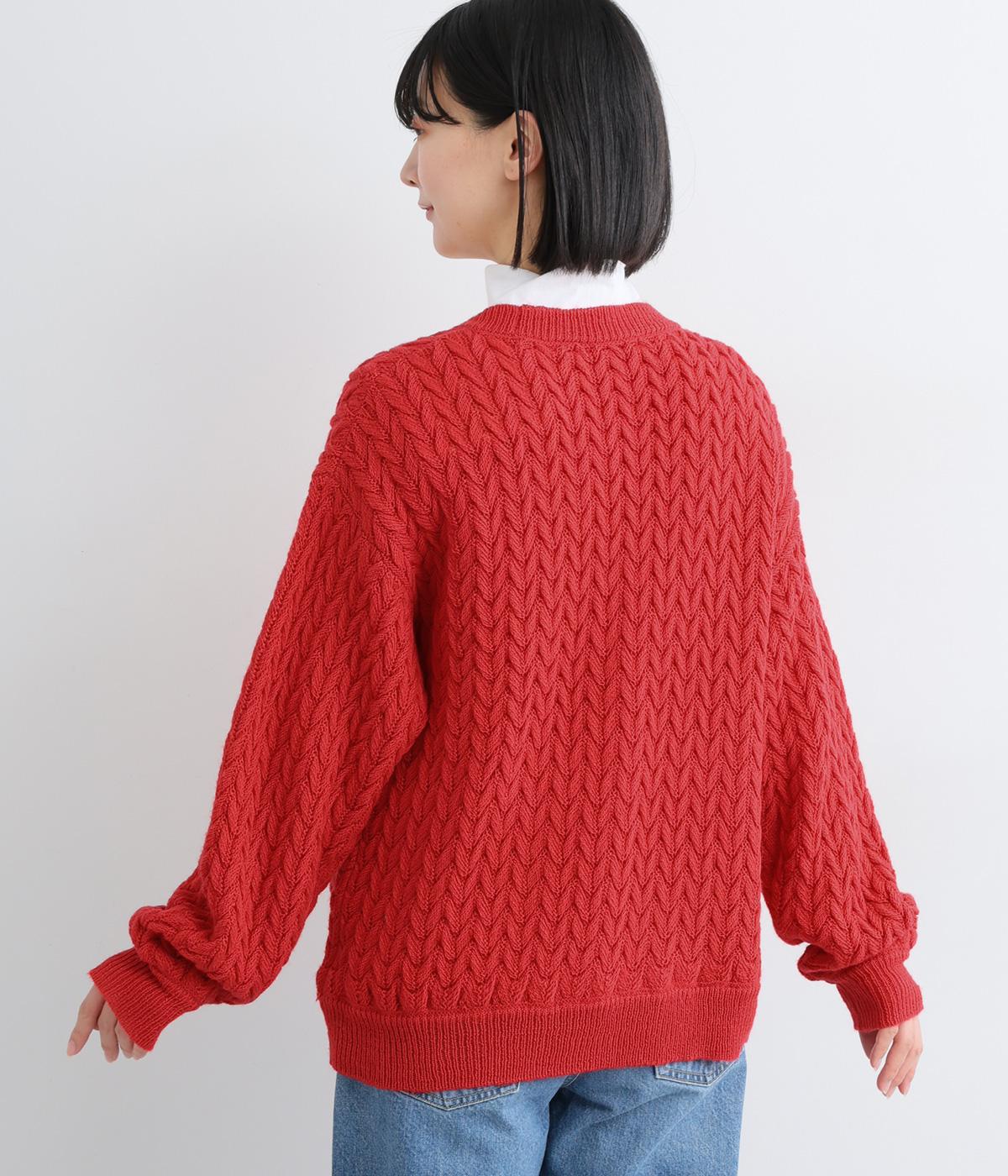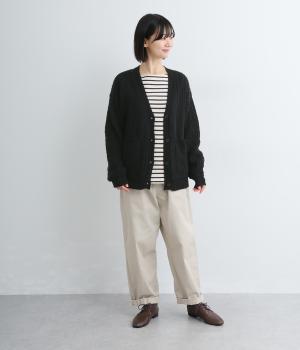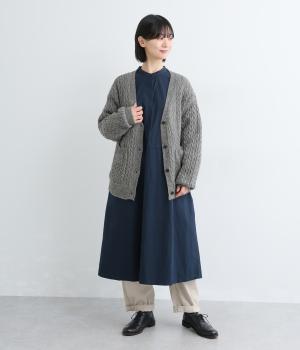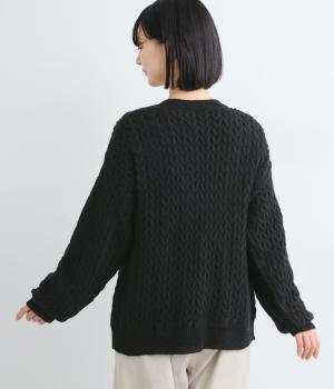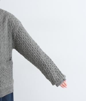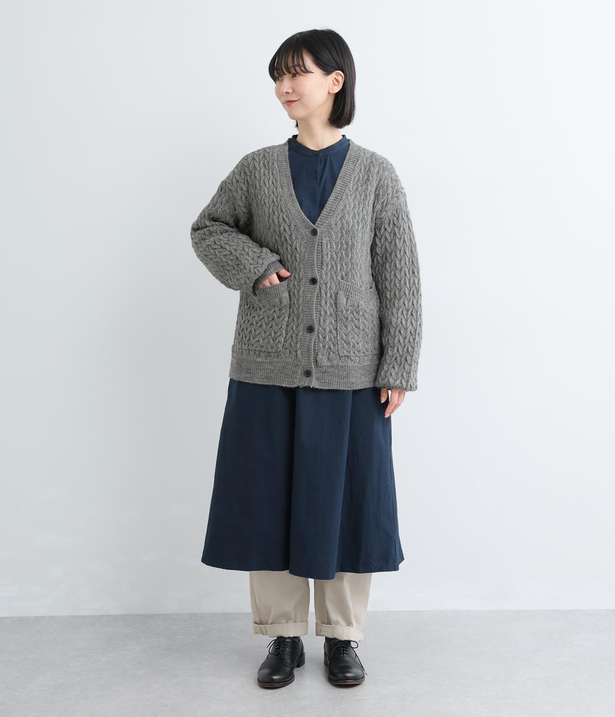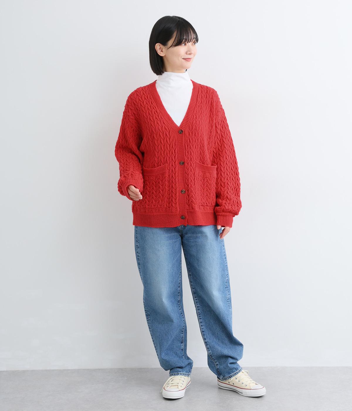 ざっくりとしたケーブル編みが魅力のニットカーディガン。深めのVネックからインナーをのぞかせたコーディネートを楽しめます。さっと手を入れやすい大きめのポケットもアクセントに。厚すぎず薄すぎない生地で、季節を問わず着まわしやすい一着です。