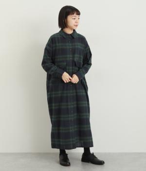 やわらかな微起毛素材に、ネイビーとレッドの深みあるチェック柄を合わせたワンピース。あたたかみと季節感が漂い、今時季の装いにそっと寄り添います。