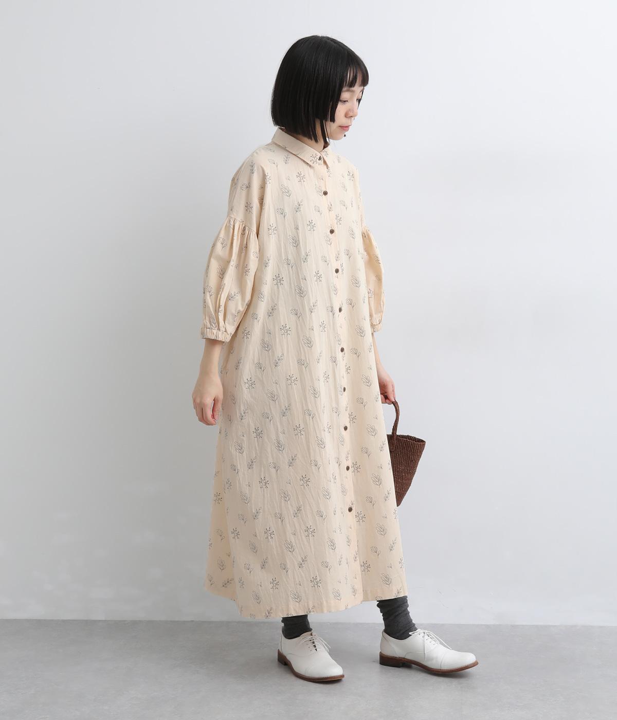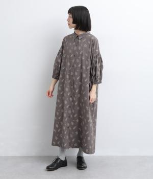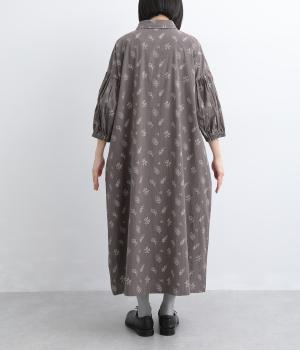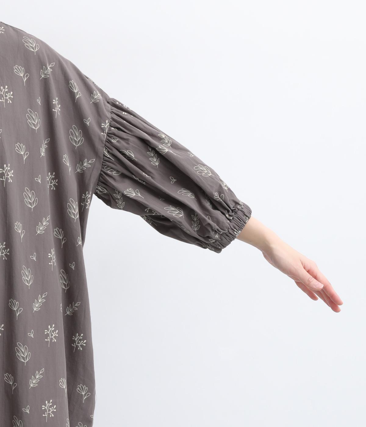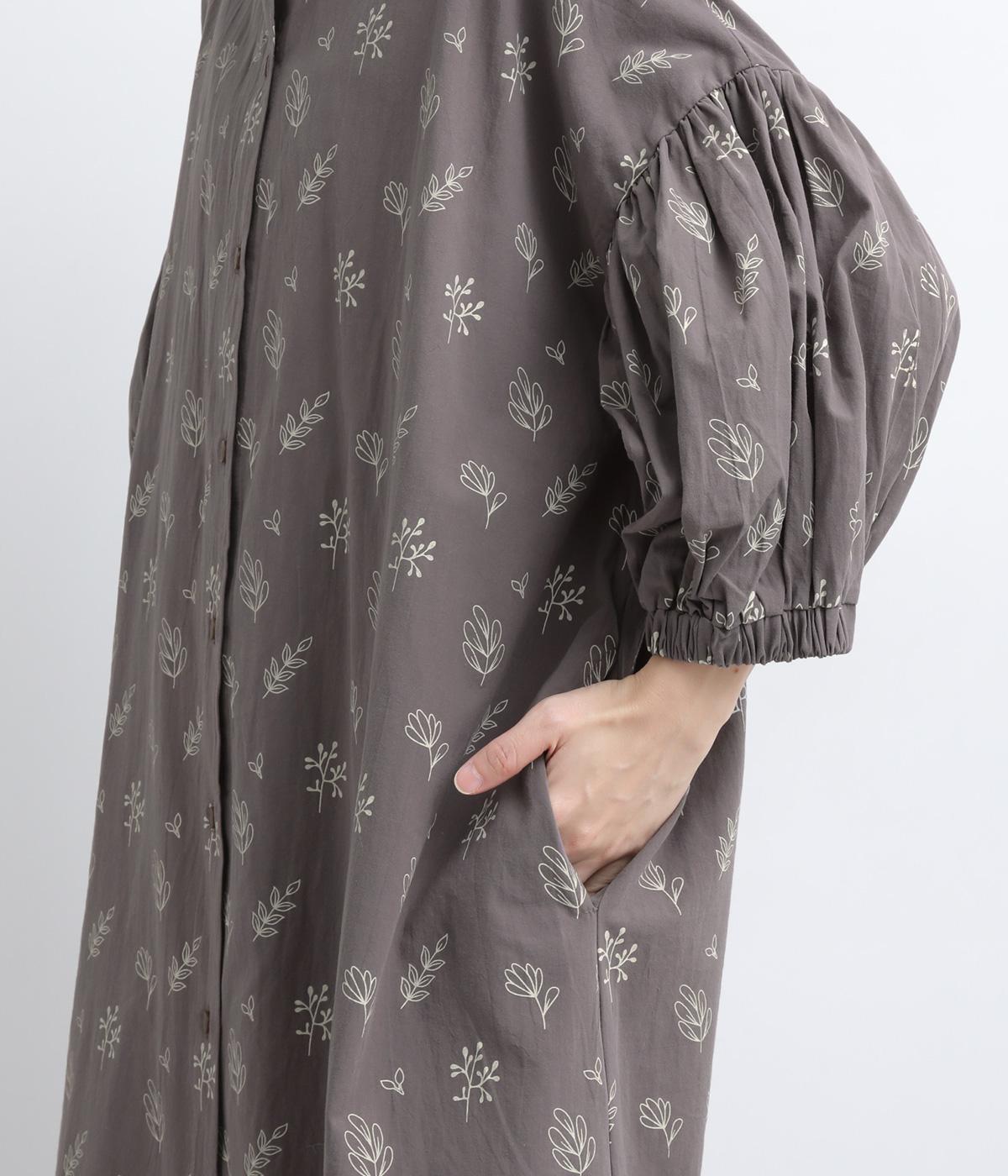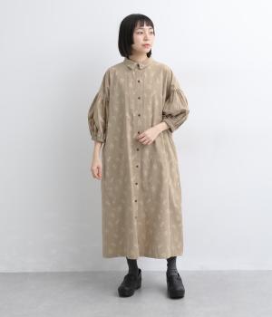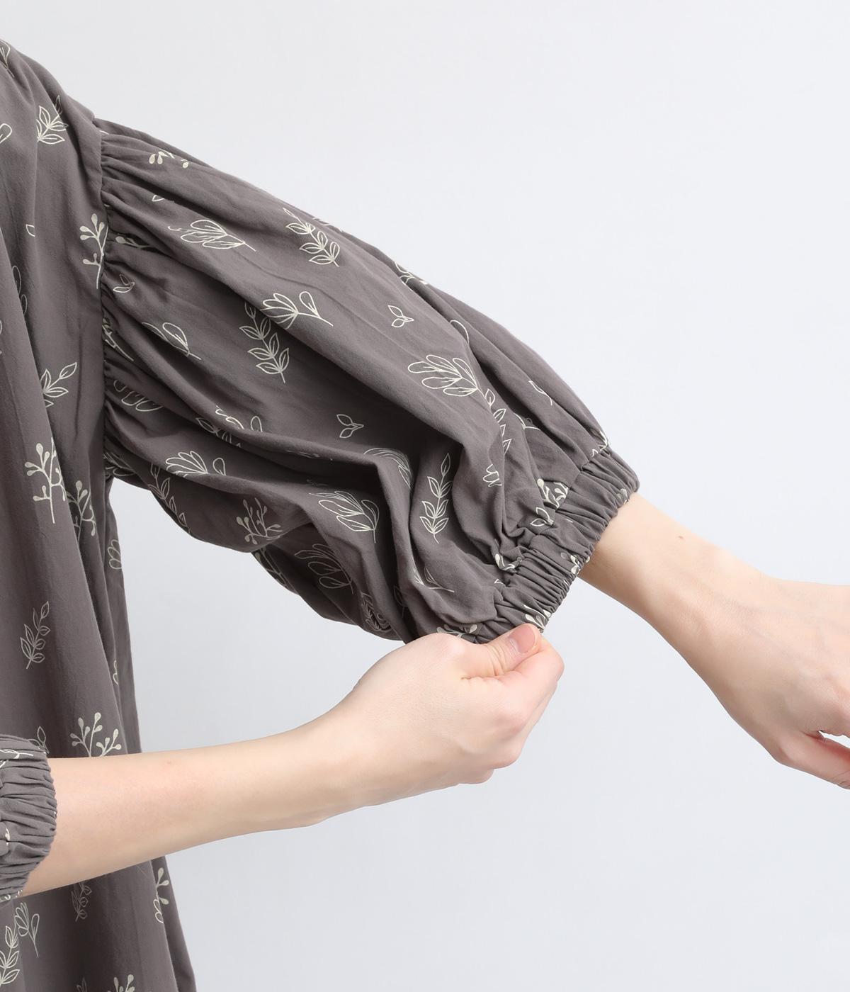 たっぷり生地を使ったボリューム袖がインパクトのあるワンピース。ゆるいタッチのリーフ柄がリラックスムードを運び、デイリーに着こなしやすい仕上がりに。ゆったりとしたシルエットの前あき仕様で、羽織りのレイヤードも◎。
