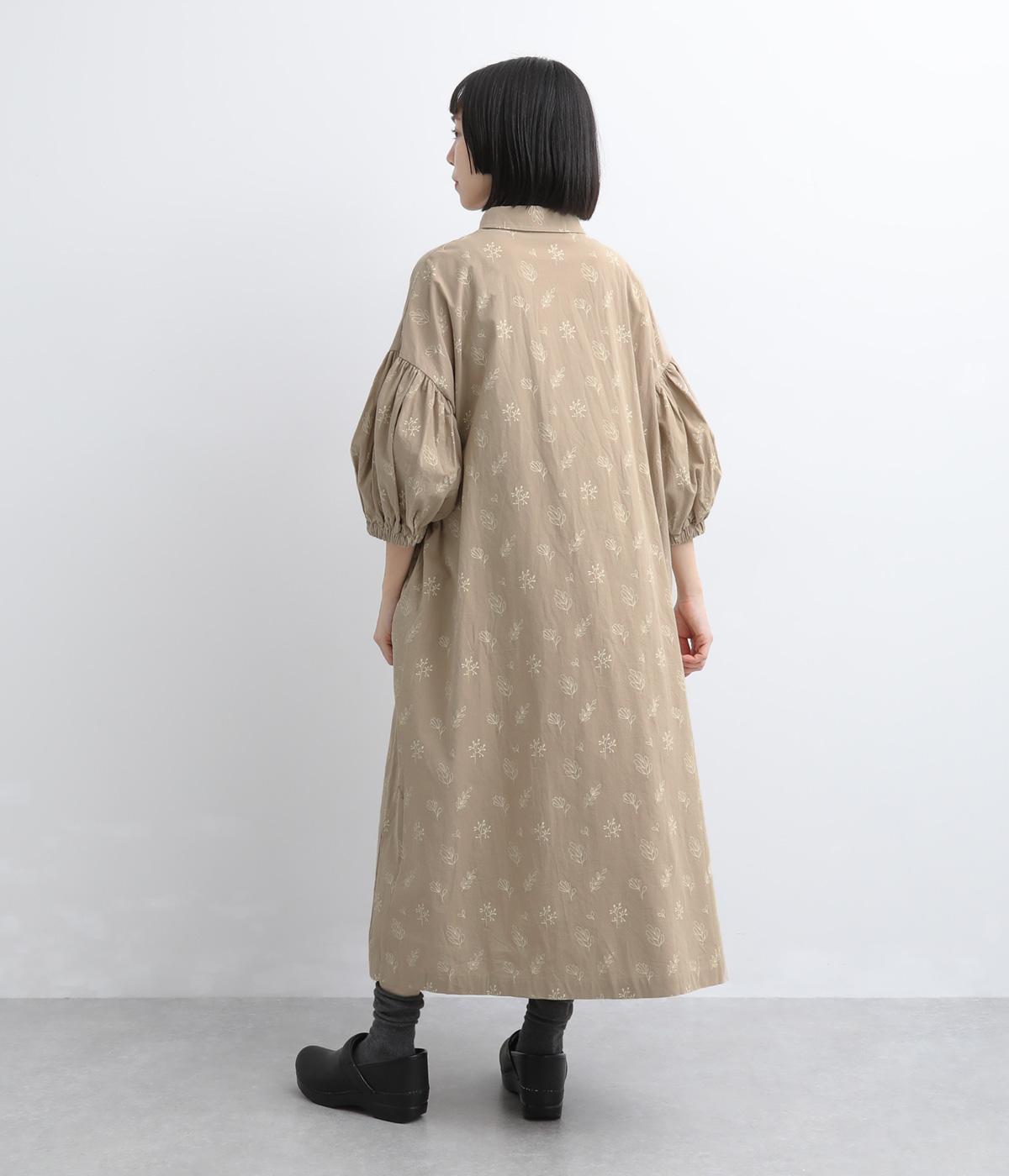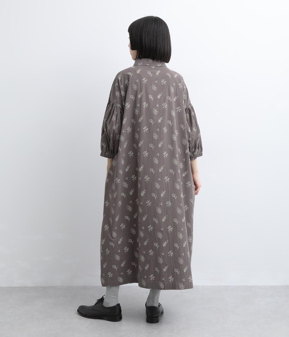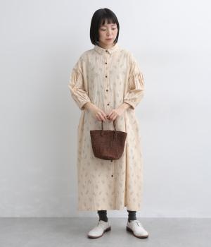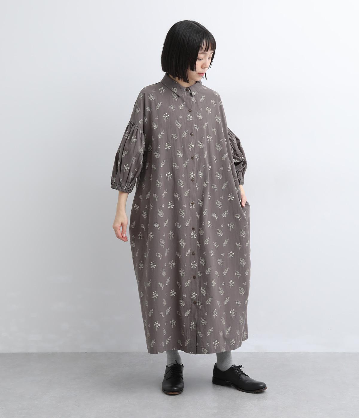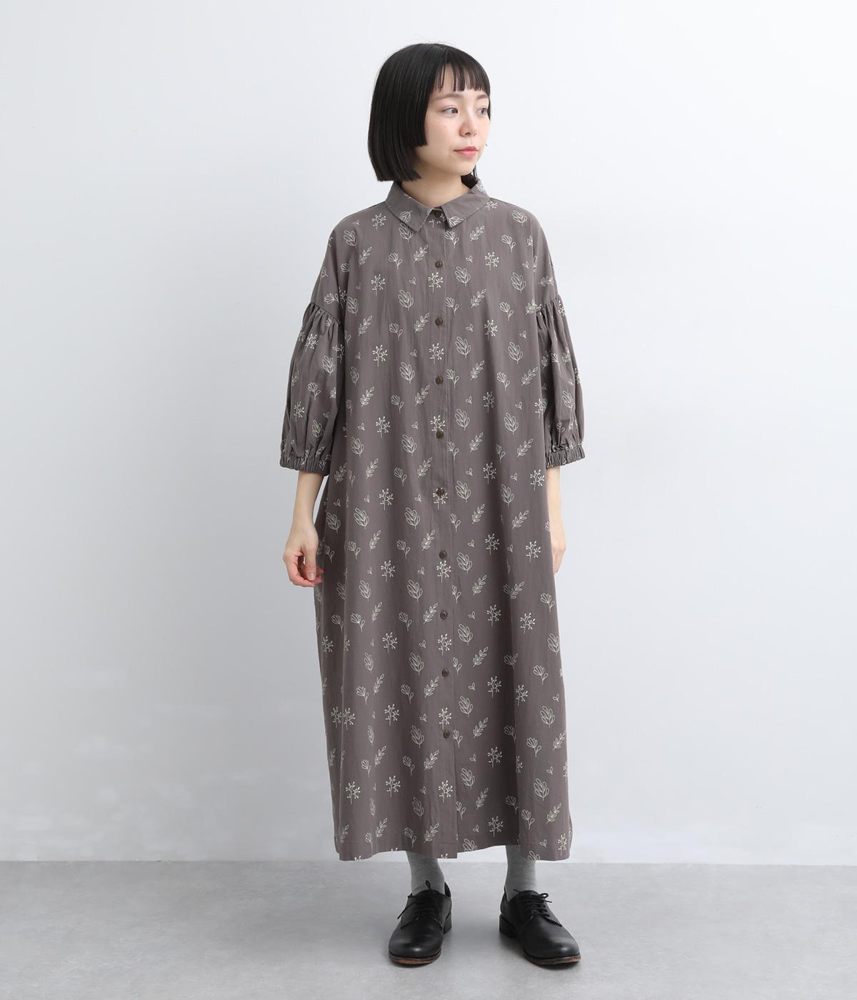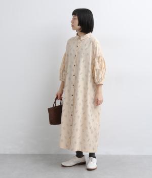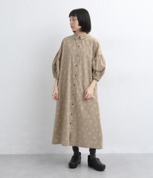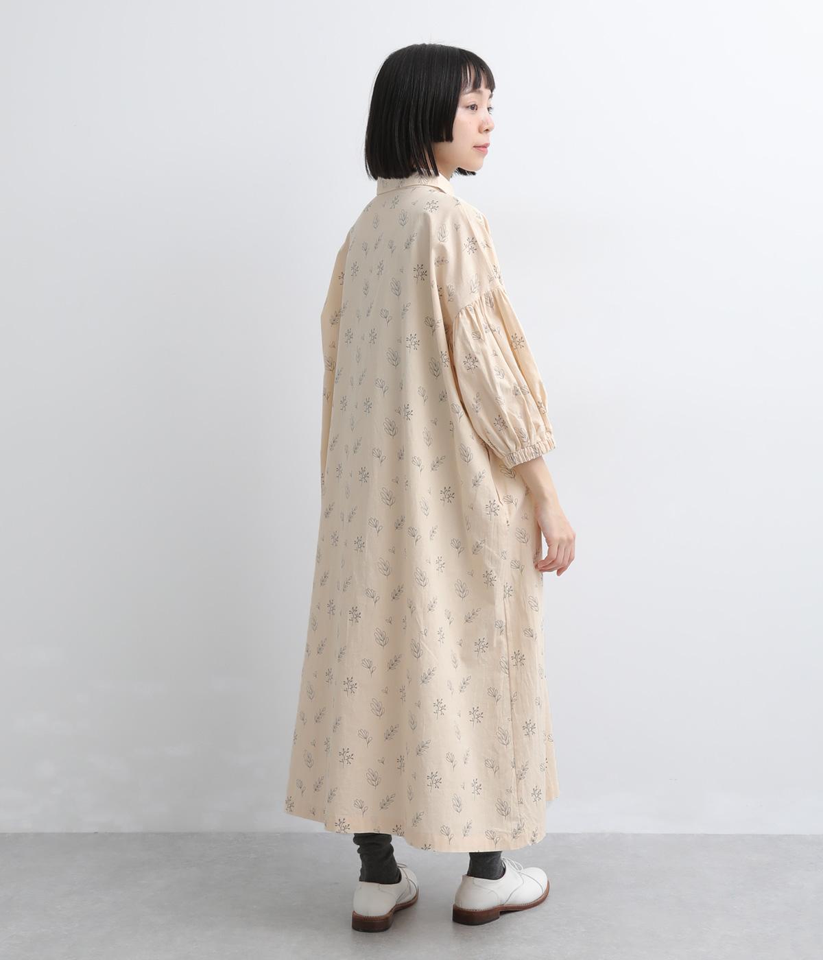 たっぷり生地を使ったボリューム袖がインパクトのあるワンピース。ゆるいタッチのリーフ柄がリラックスムードを運び、デイリーに着こなしやすい仕上がりに。ゆったりとしたシルエットの前あき仕様で、羽織りのレイヤードも◎。