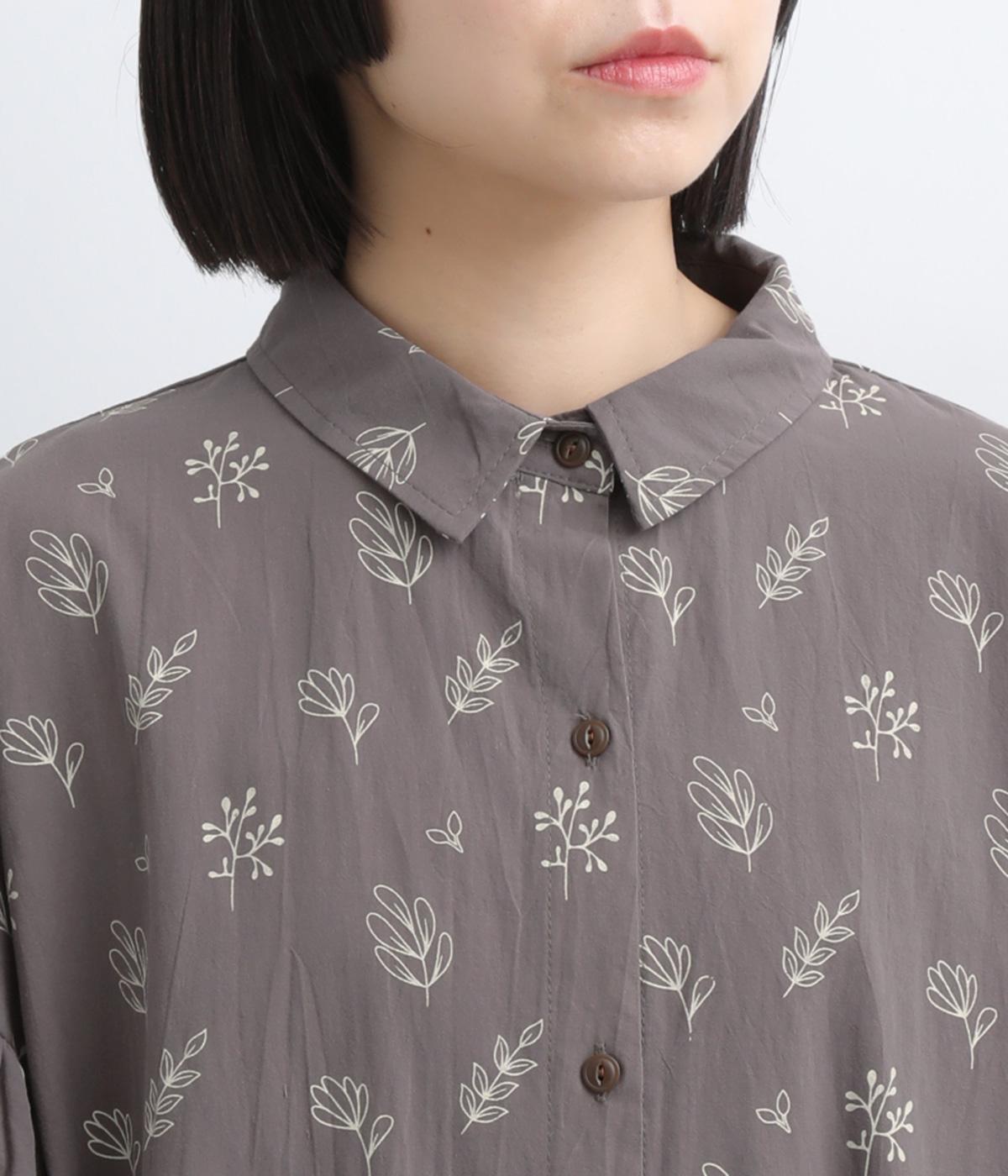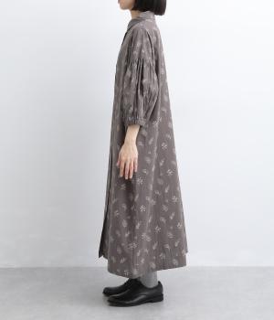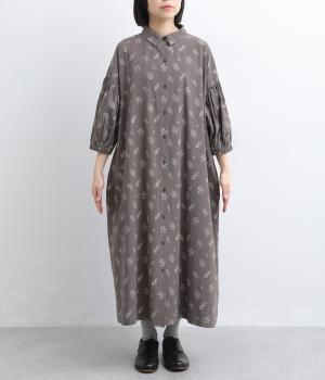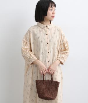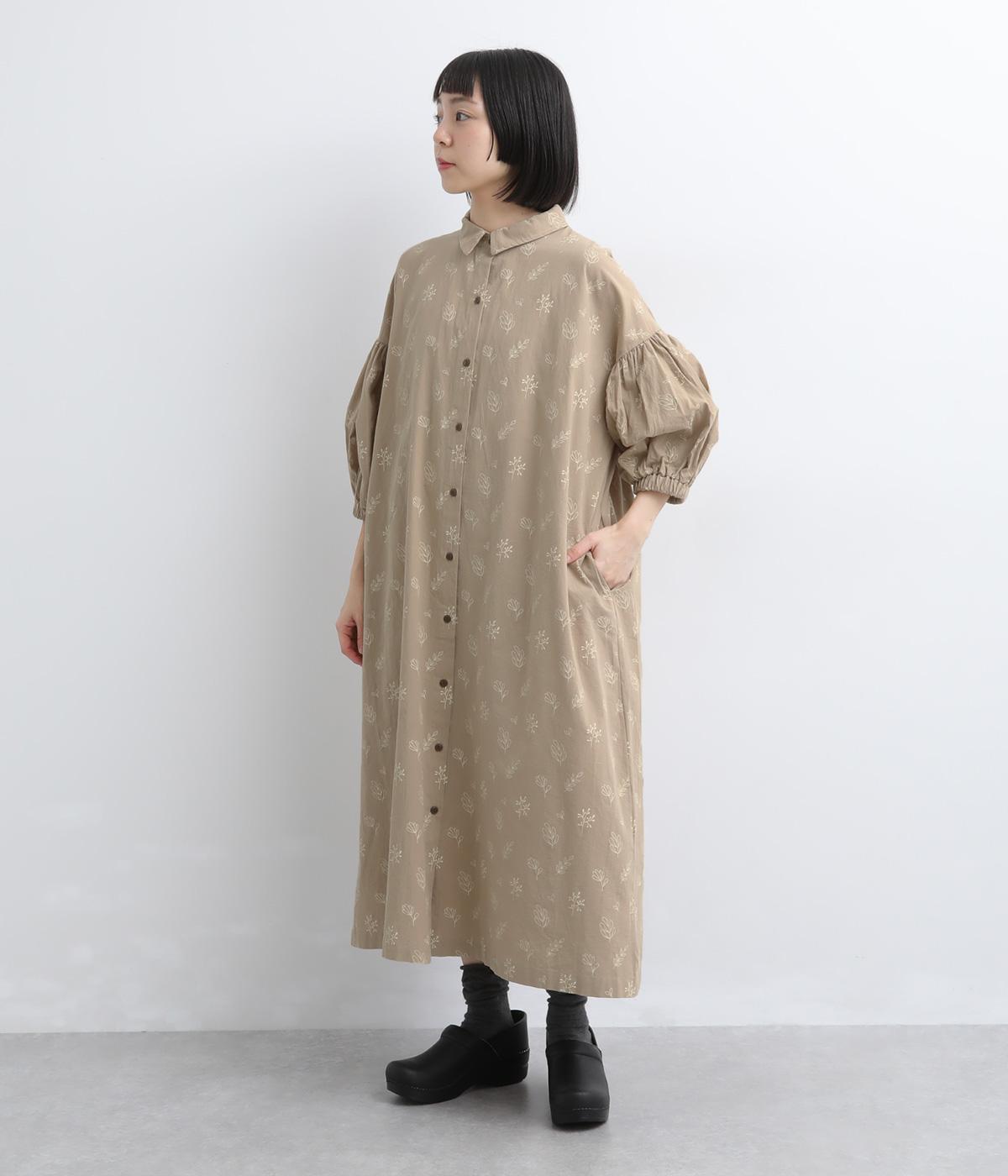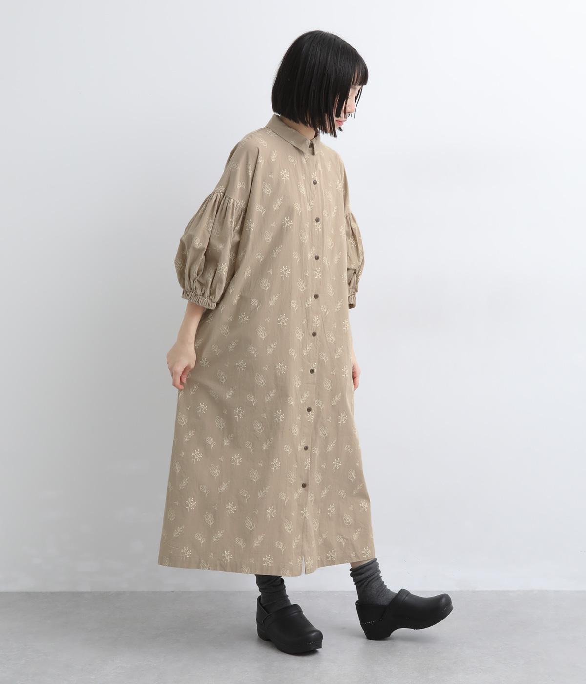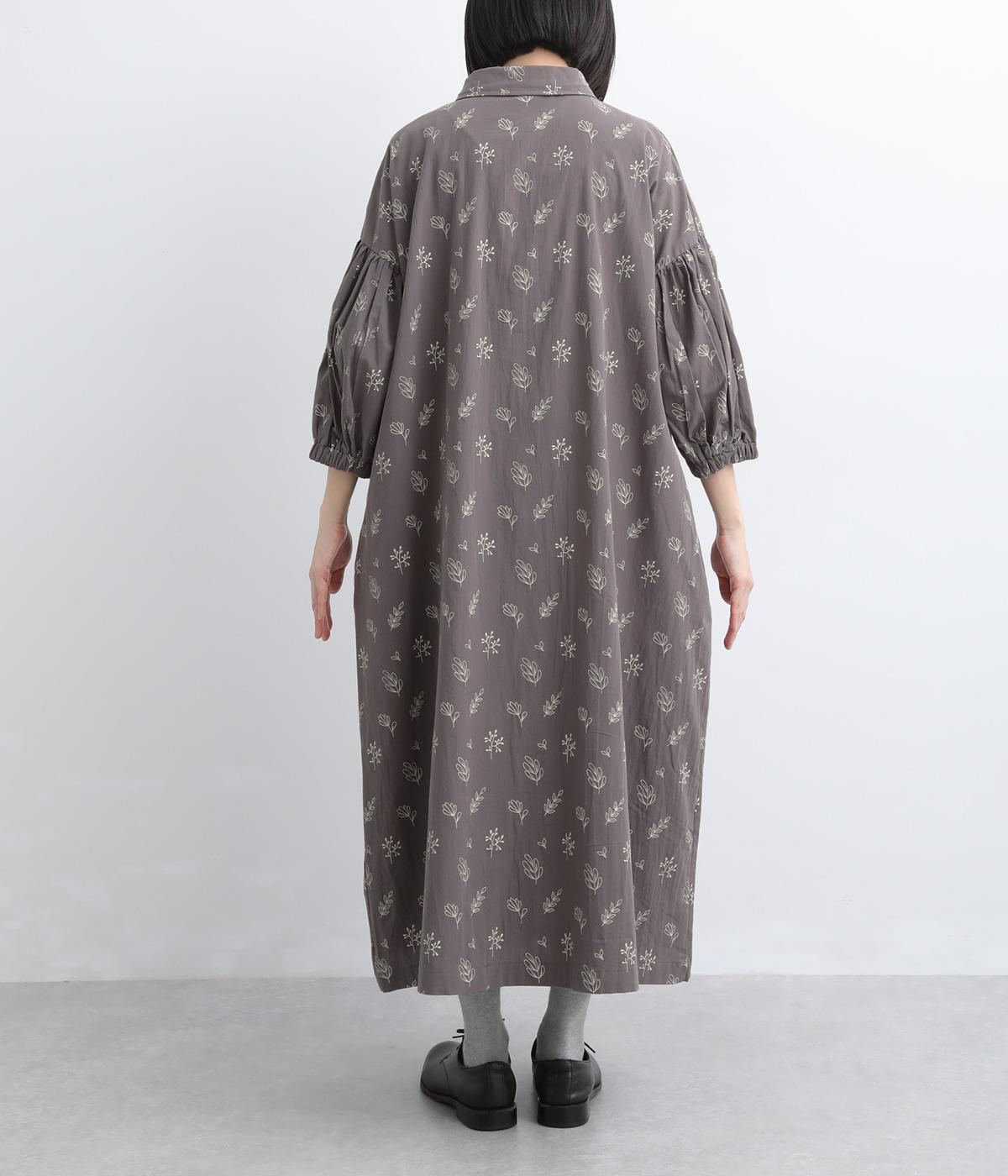 たっぷり生地を使ったボリューム袖がインパクトのあるワンピース。ゆるいタッチのリーフ柄がリラックスムードを運び、デイリーに着こなしやすい仕上がりに。ゆったりとしたシルエットの前あき仕様で、羽織りのレイヤードも◎。