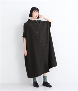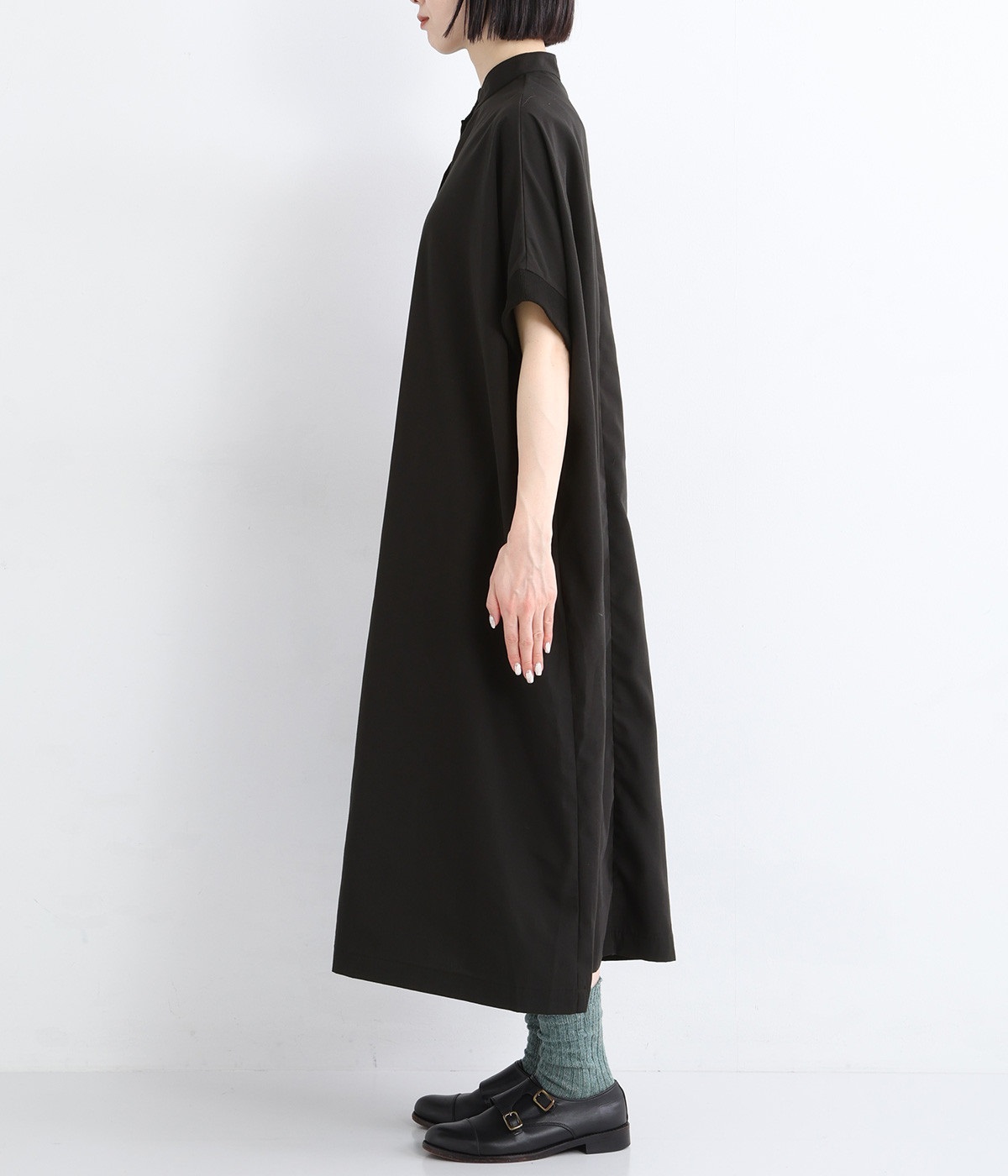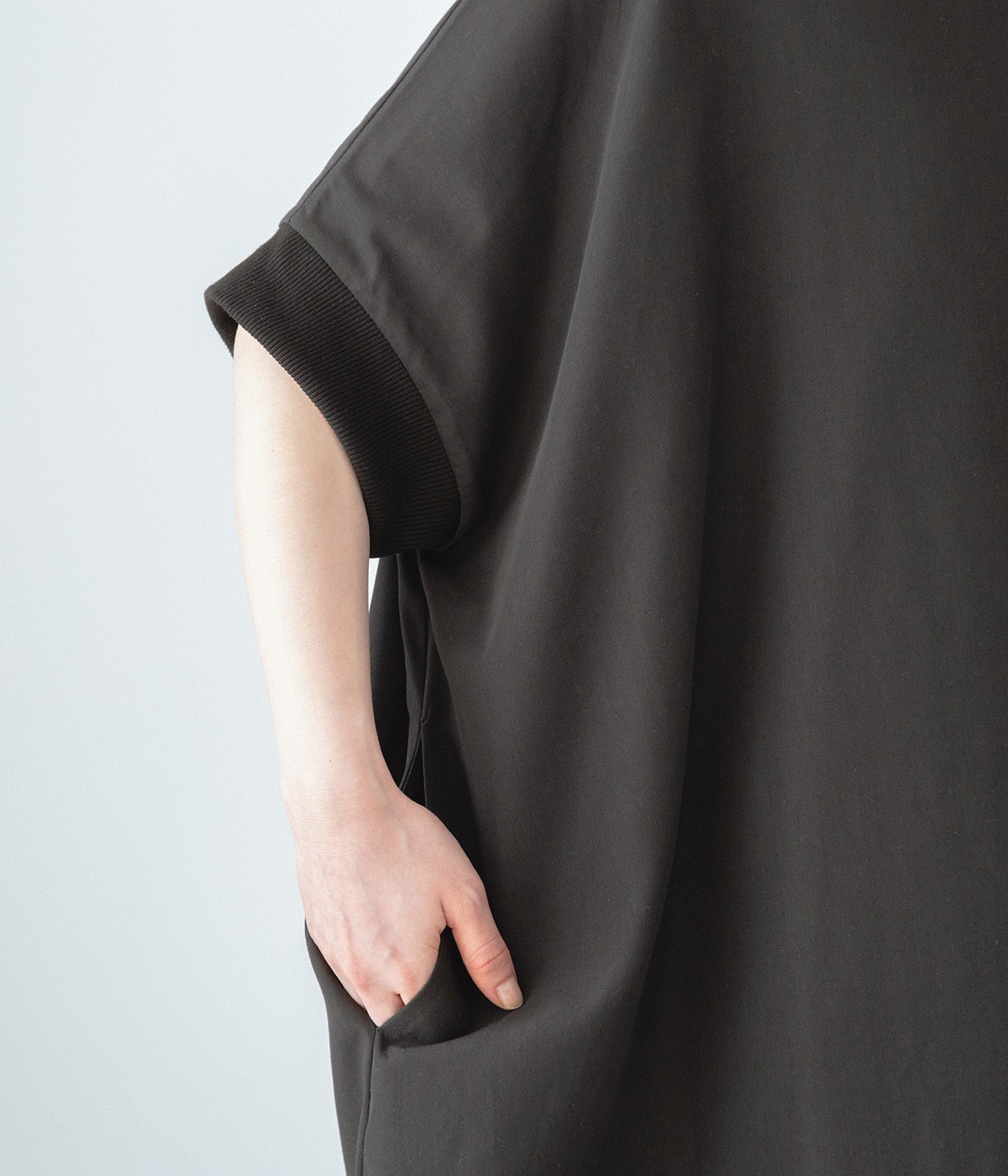 ゆるりと気軽に着られるワイドなシルエットが魅力的なドルマンワンピース。 ハリと落ち感を兼ね備えた万能素材が扱いやすく、忙しい朝につい手が伸びるアイテムです。