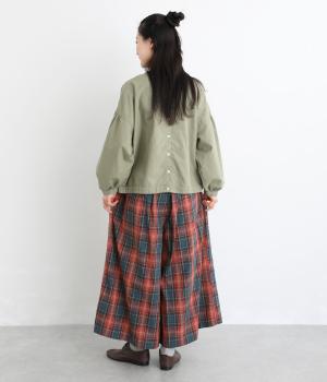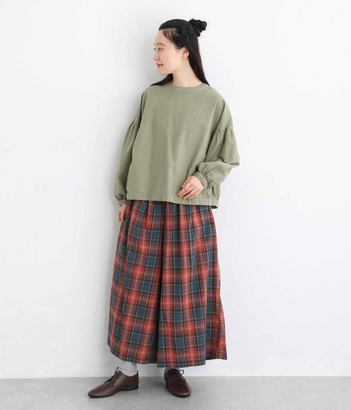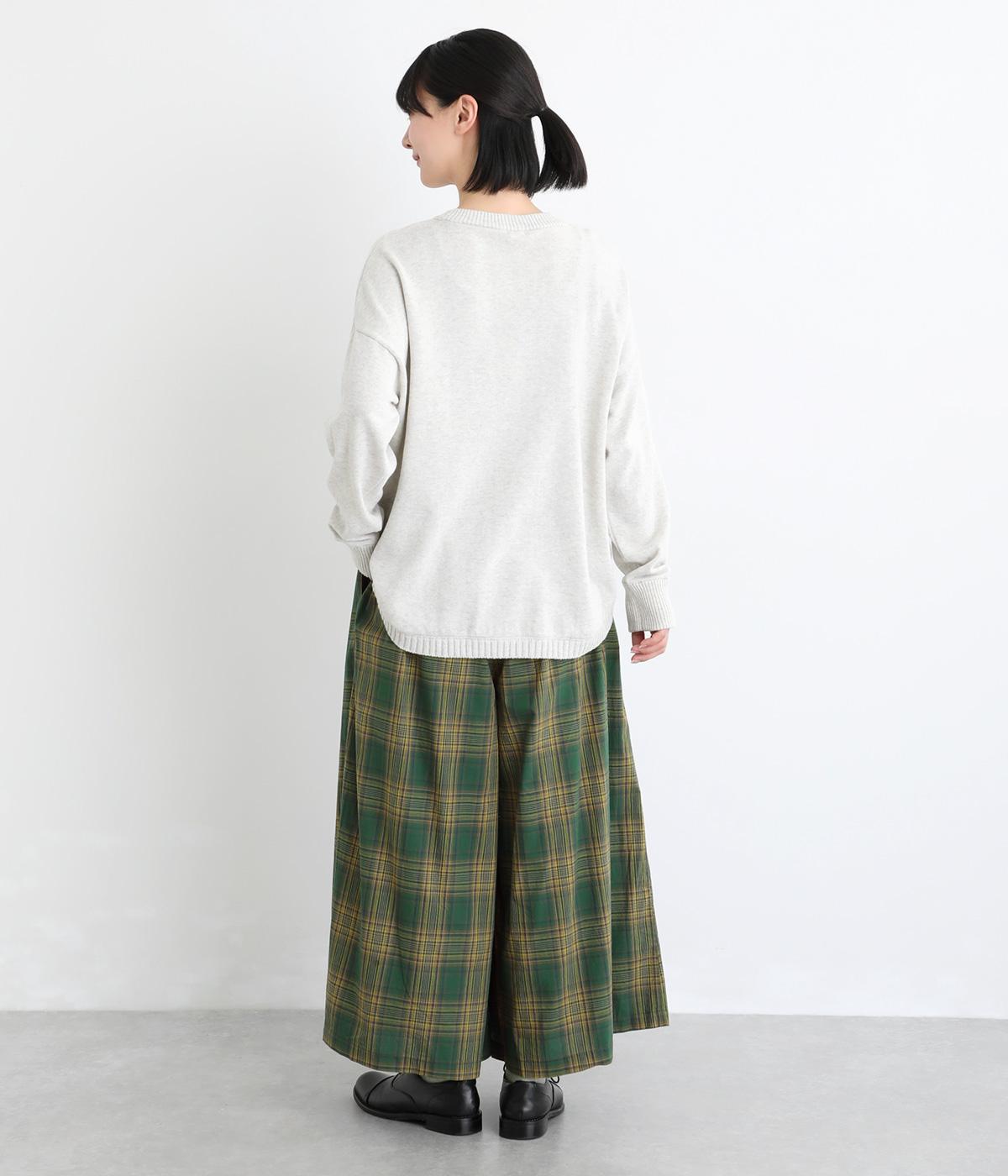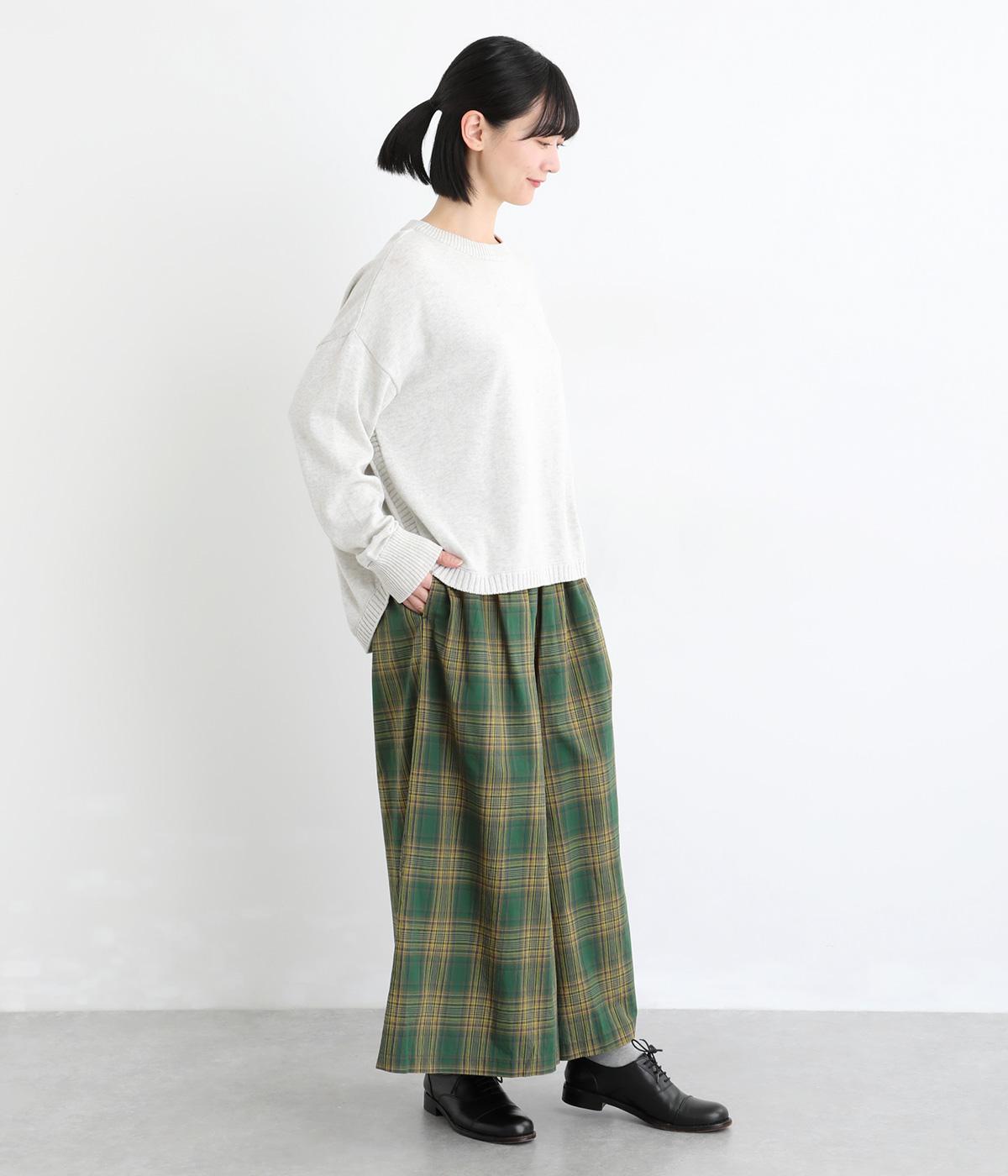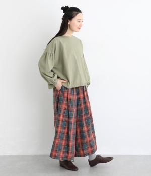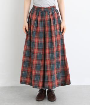 ボリュームたっぷりのワイドシルエットで、スカートのように見えるパンツ仕様です。たっぷりと入ったギャザーが生む丸みが、女性らしい印象を演出。深みのあるチェック柄がコーディネートのアクセントとなり、シンプルなトップスとも好相性です。裏地つきなので安心して着用できます。