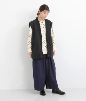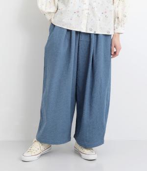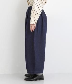 ニュアンスのある表情で、カジュアルにもきれいめにも着こなせるパンツです。脚のラインを拾いにくいワイドシルエットを、すっきりとした丈感で仕上げました。フロントにほどこしたボタン付きのミニポケットがさりげないアクセントになっています。