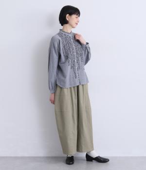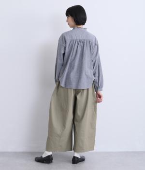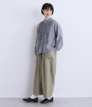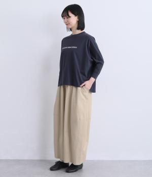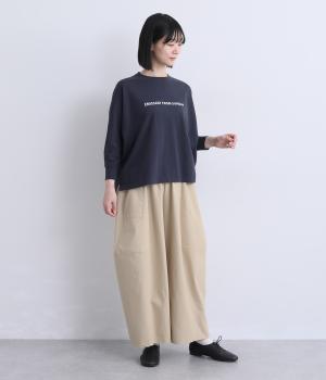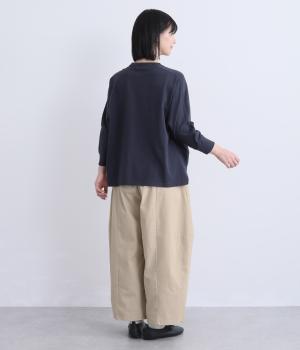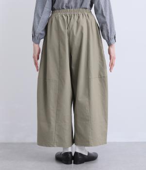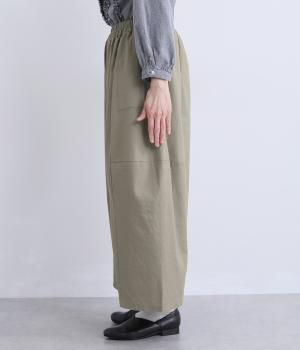 タテヨコに切り替えを入れてふっくらとした立体感を設けました。脚のラインを拾いにくいゆったりシルエットが心地よく、ストレッチもきいたノンストレスな一本。ウエストはオールゴム入りでお腹まわりのフィット感も◎。