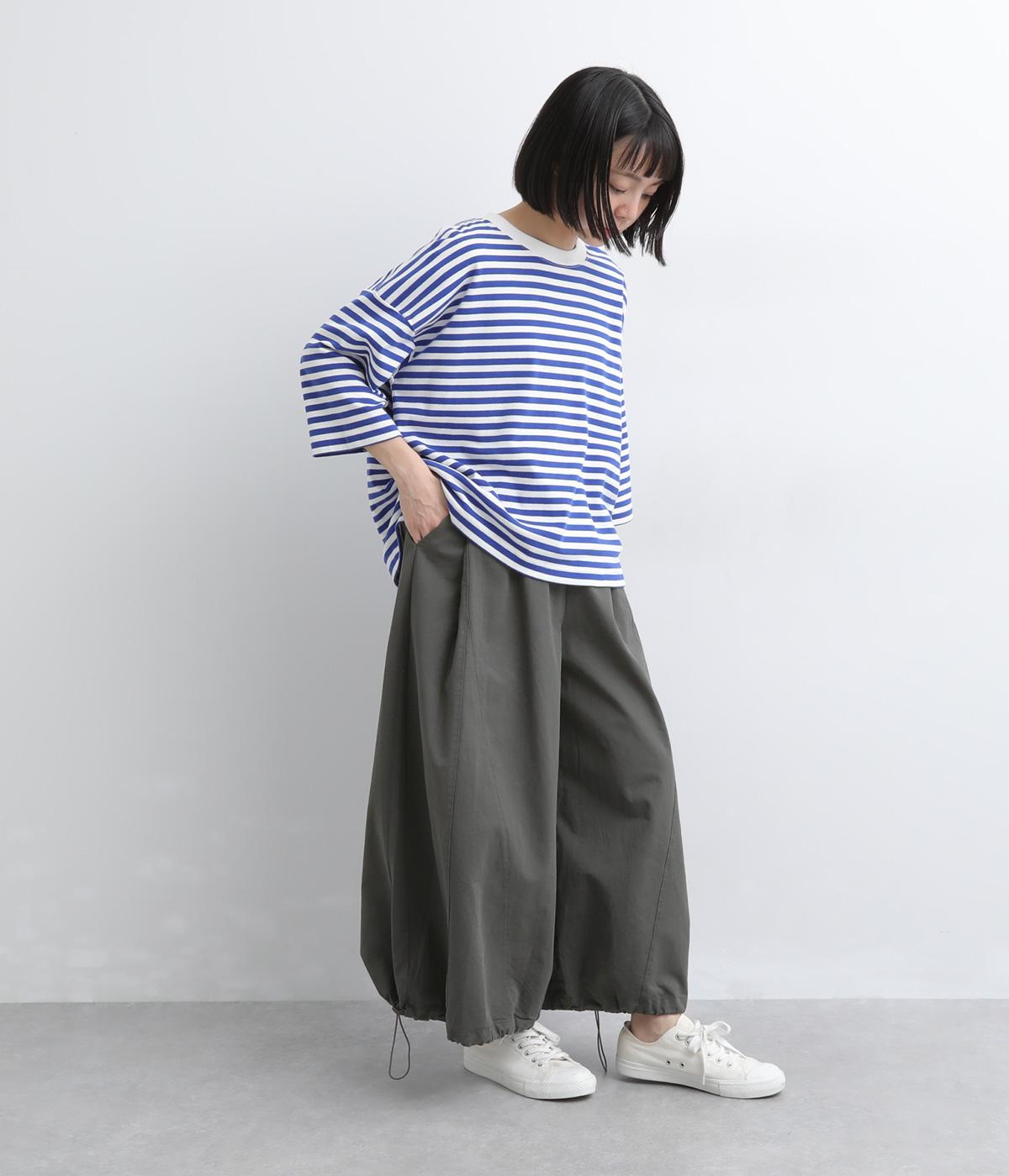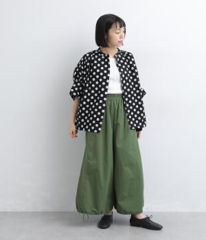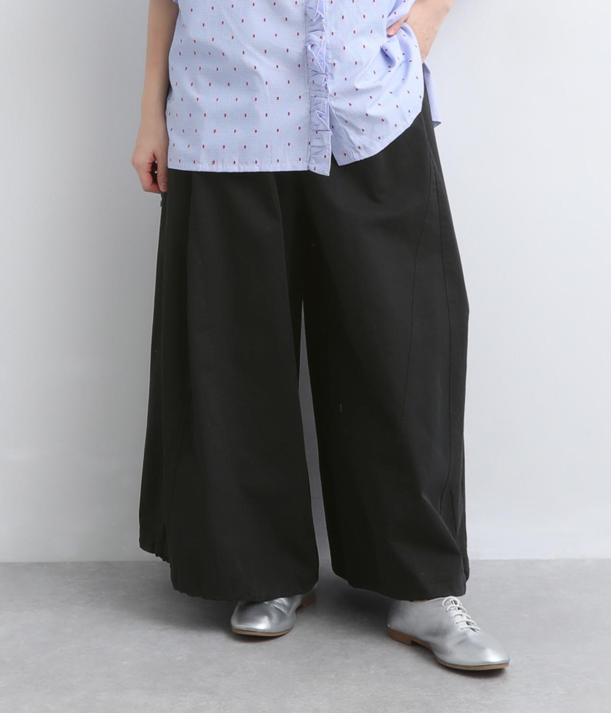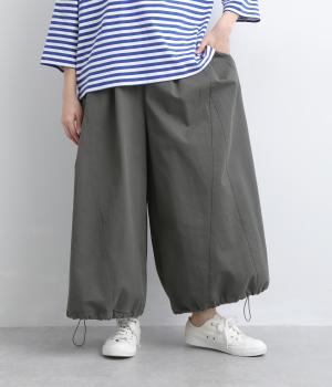 切り替えを入れてたっぷり広げたビッグシルエットが特徴的なパンツ。ふっくらときれいなラインを描き、カジュアルながらも大人顔をキープ。ウエストがフィット感抜群な太めの総ゴム仕様になっています。