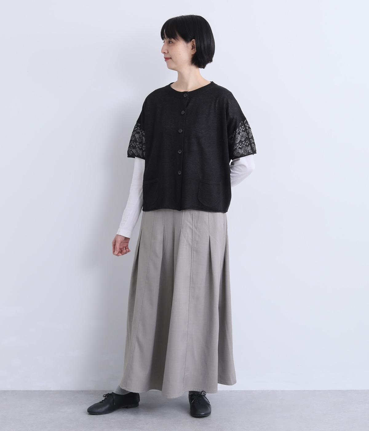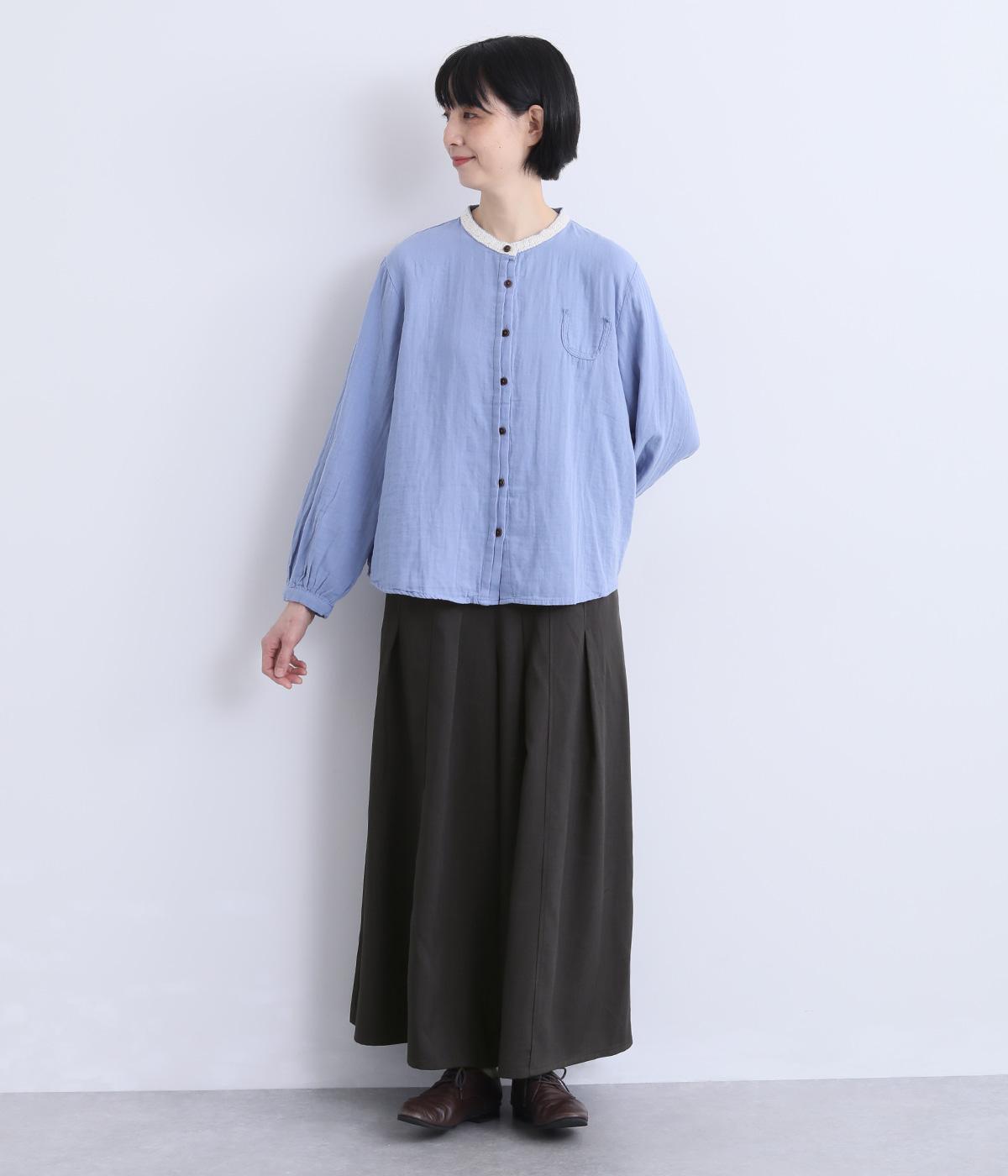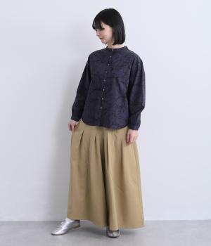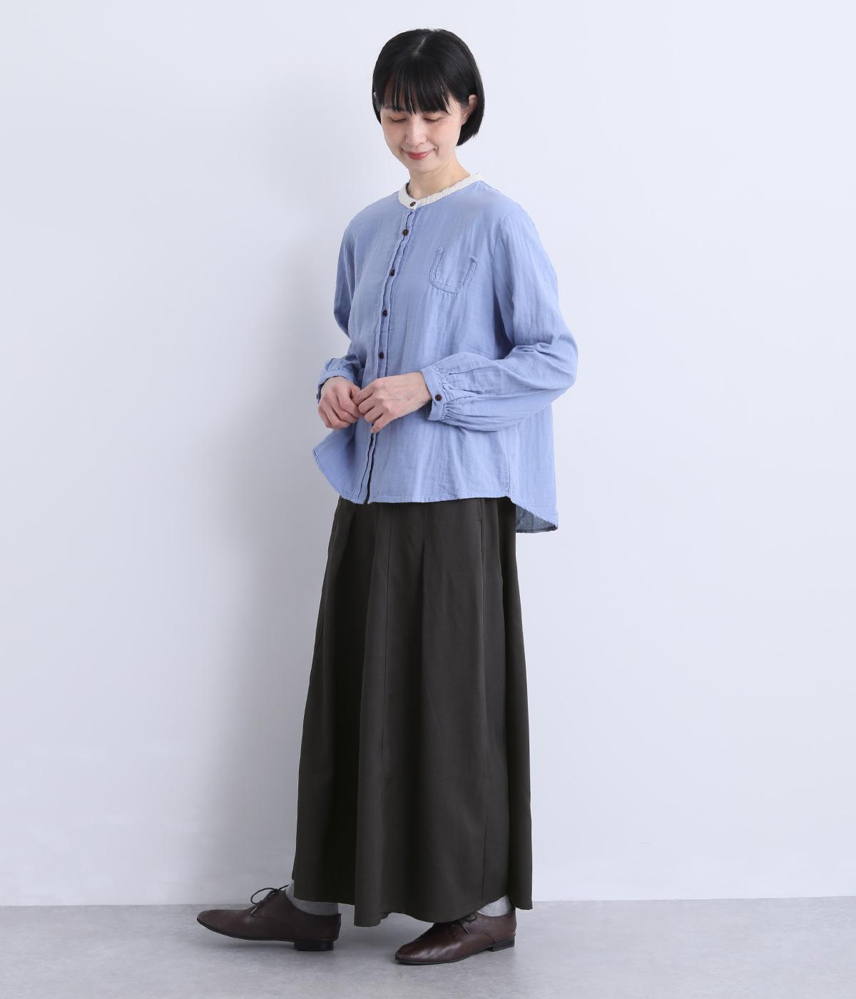 ややドライな肌触りにすっきりとした落ち感が心地よさを運ぶシャークスキン生地を使用。ほのかな光沢がありきちんと感を演出してくれます。